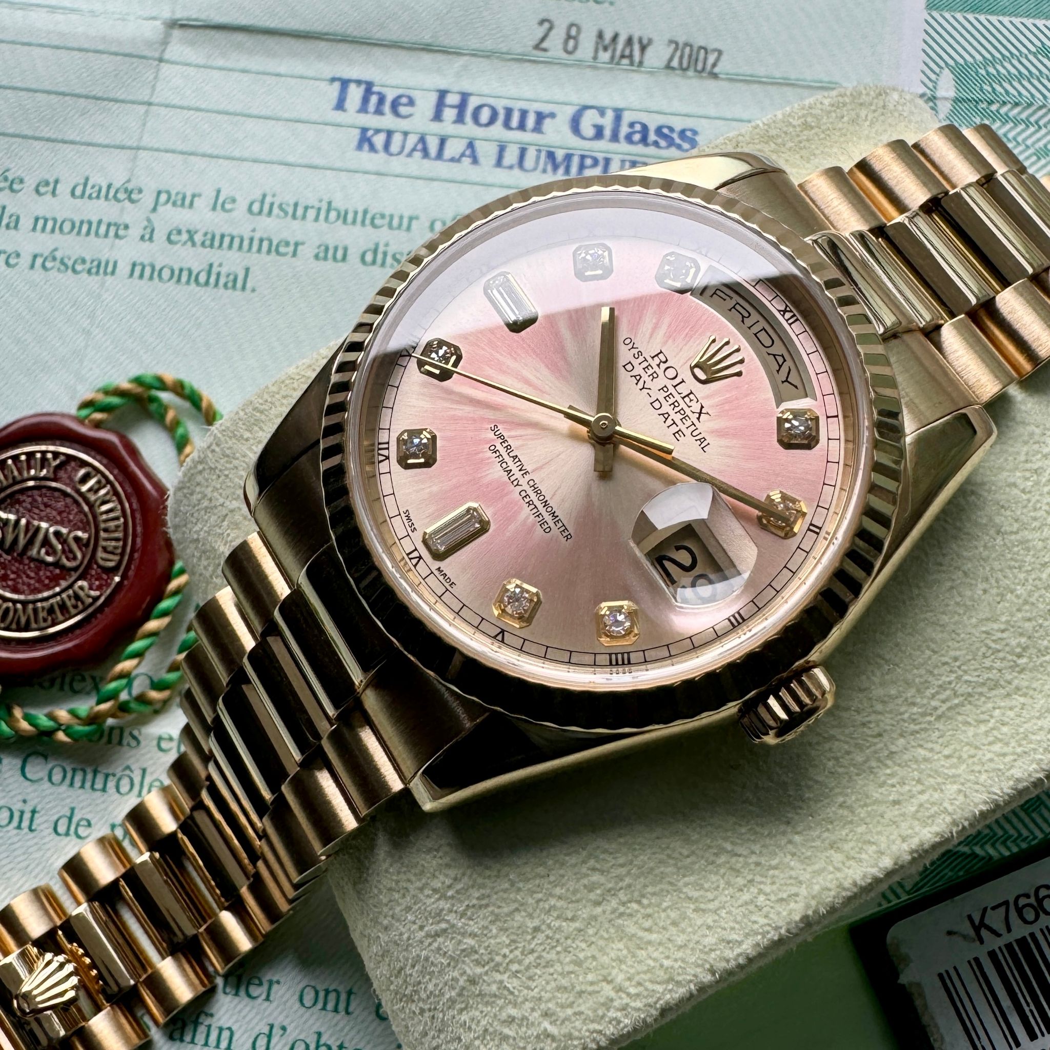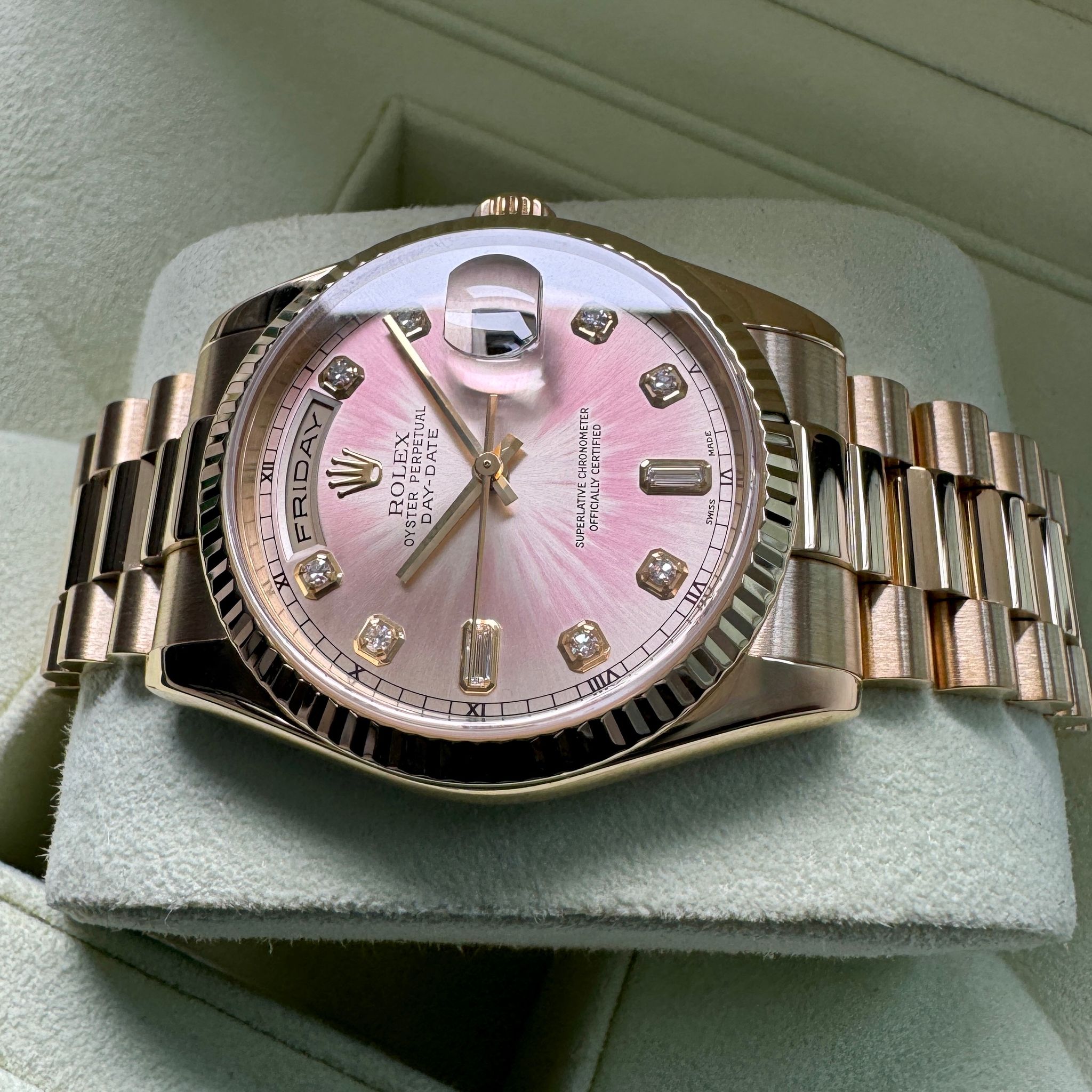 Rolex - 36mm Rolex President Gold 118238 Box Papers - Tropical Pink Diamond Dial