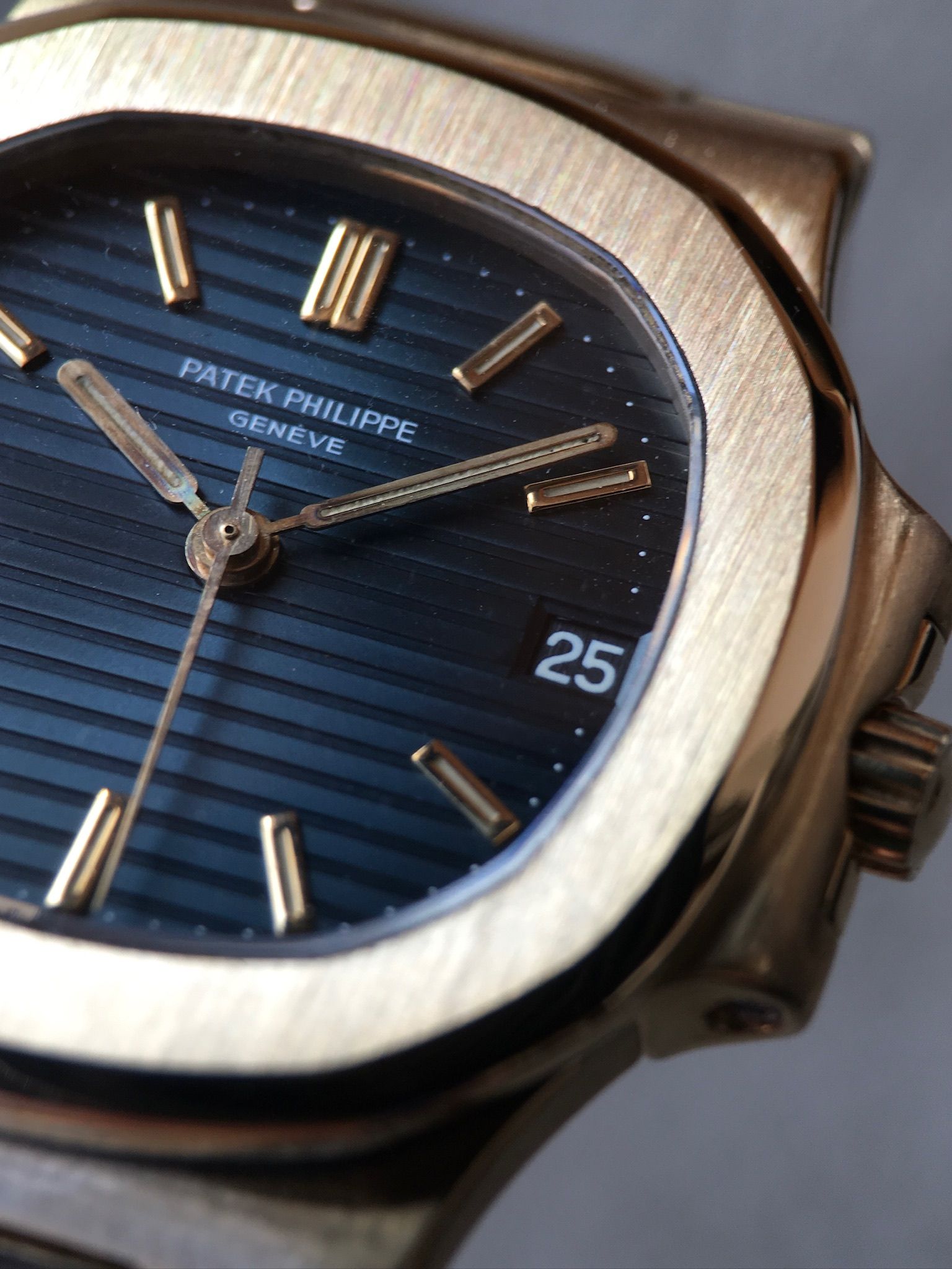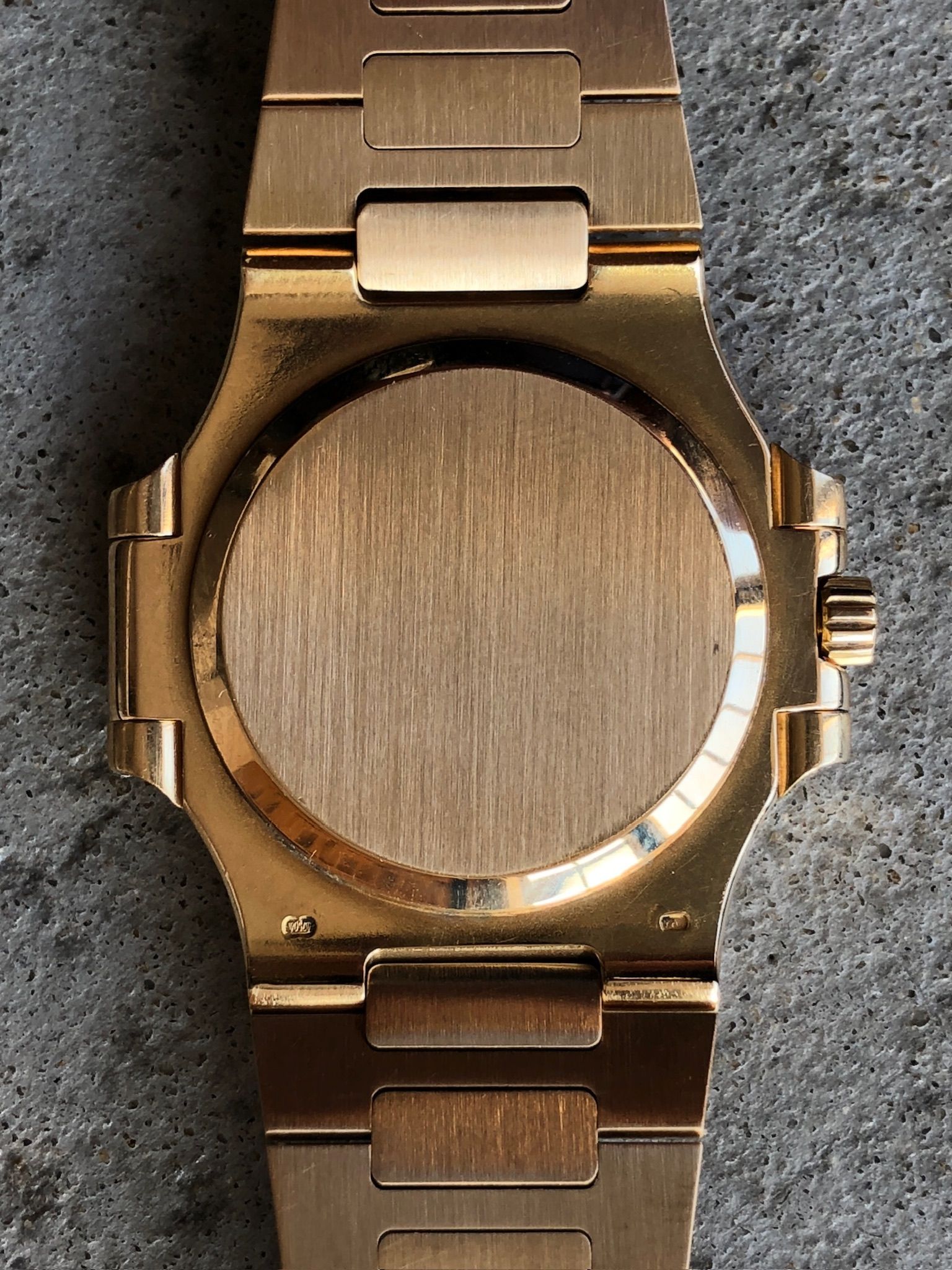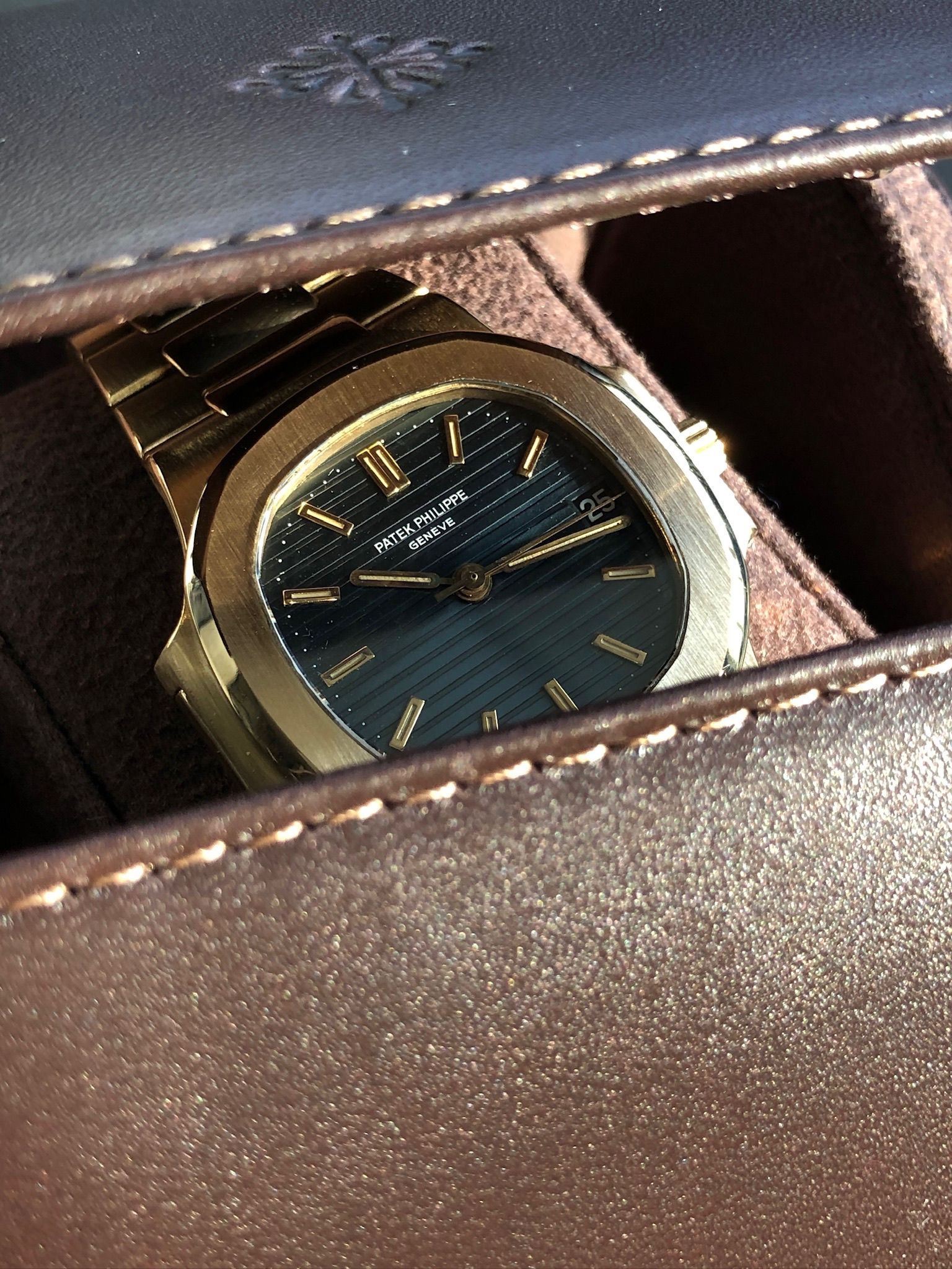 For the most delicate of us this 37.5mm timepiece is the alternative to its « Jumbo » sister the Nautilus ref.3700 (42mm). A true unisex watch! You have been warned, Madame will most likely borrow it more often that you would like. The watch proposed here is part of the second series with a white date disc, manufactured in 1983 and sold in june 1983.