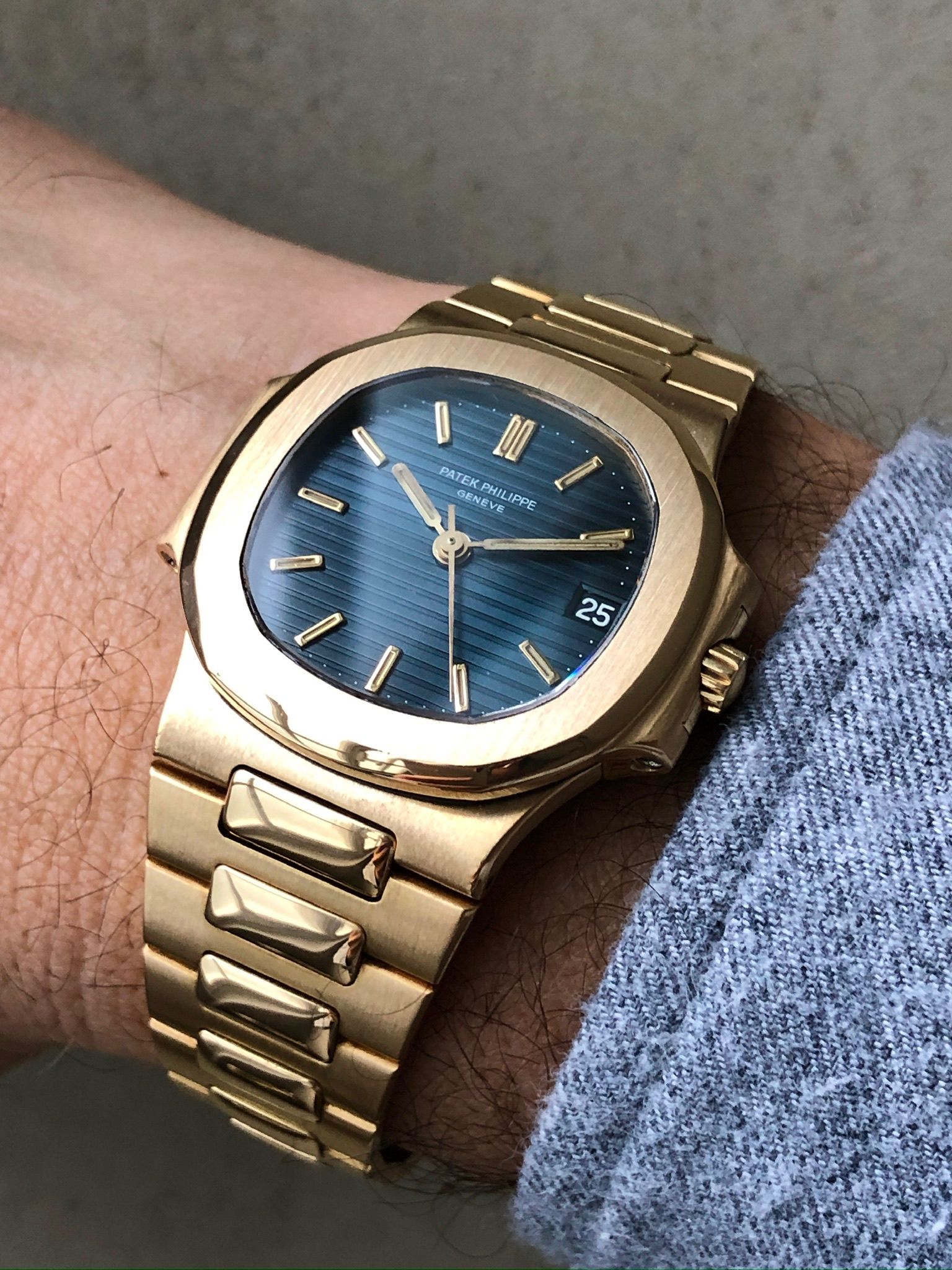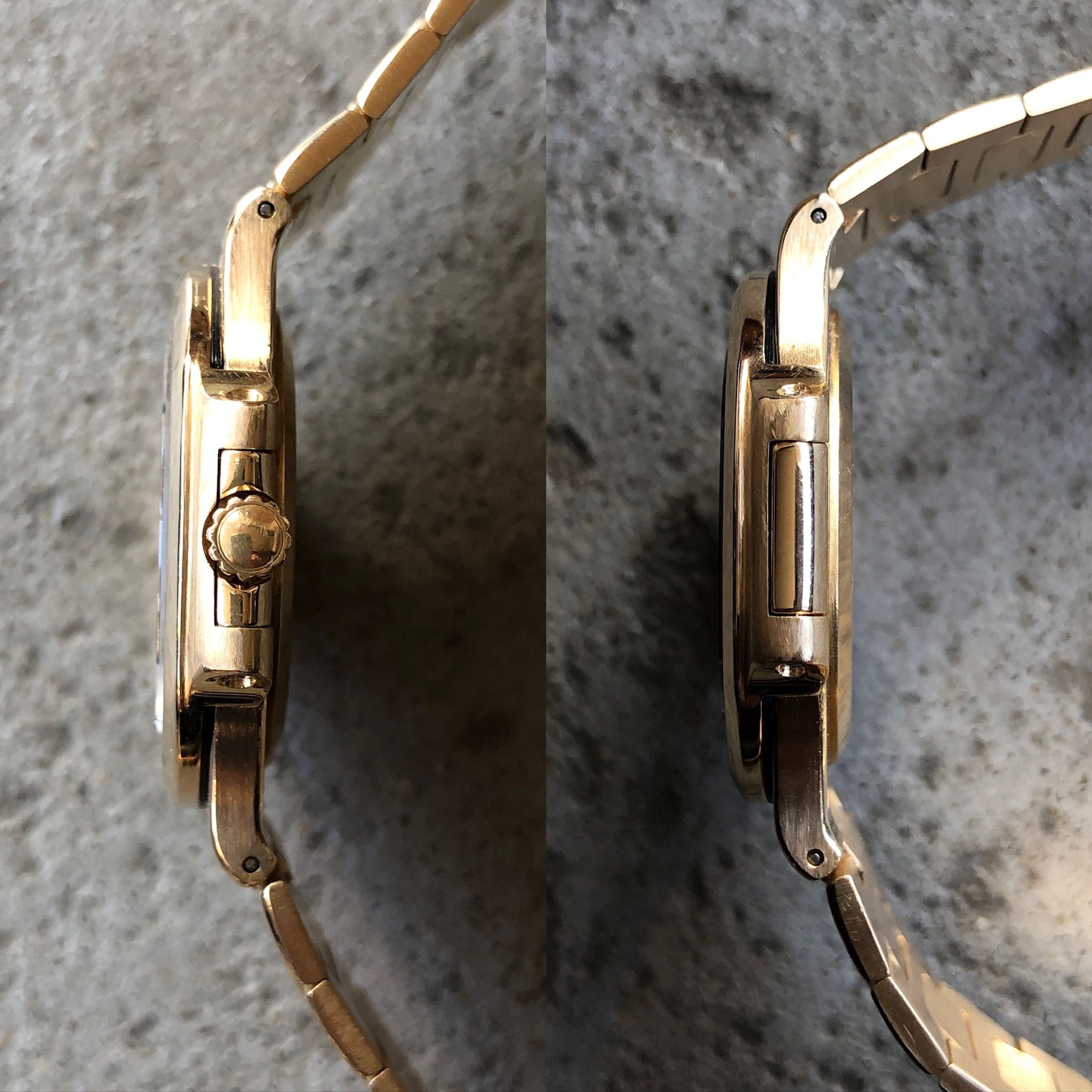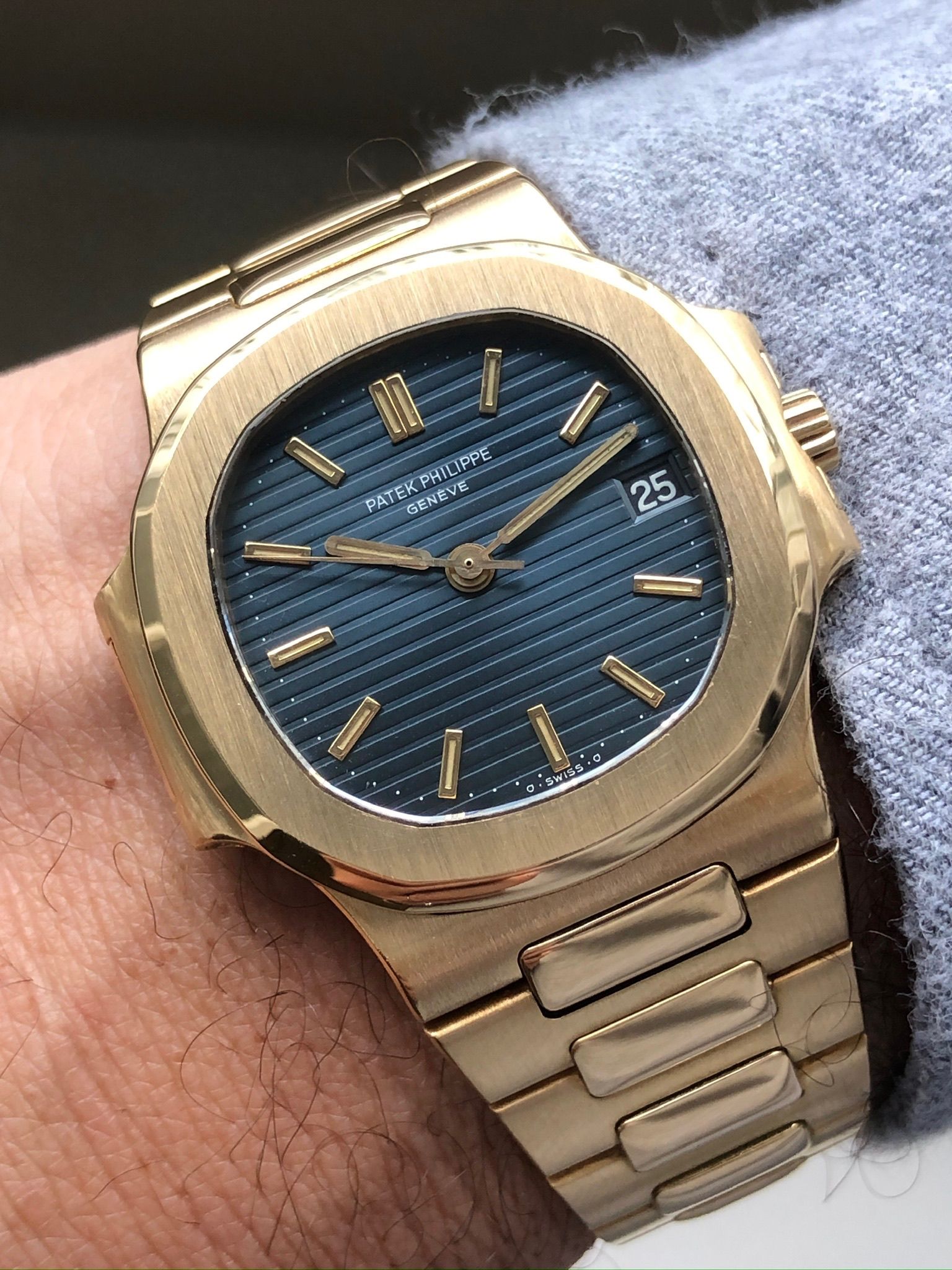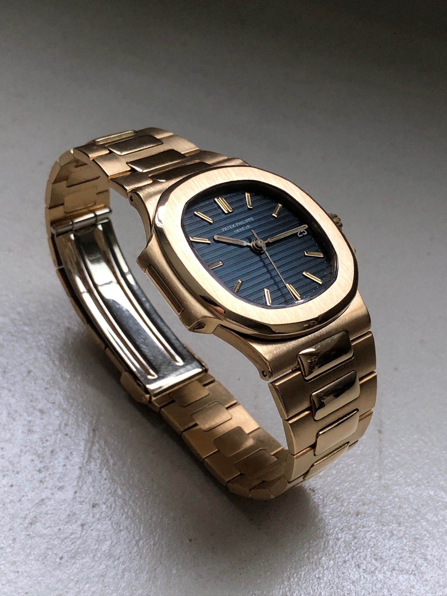 For the most delicate of us this 37.5mm timepiece is the alternative to its « Jumbo » sister the Nautilus ref.3700 (42mm). A true unisex watch! You have been warned, Madame will most likely borrow it more often that you would like. The watch proposed here is part of the second series with a white date disc, manufactured in 1983 and sold in june 1983.