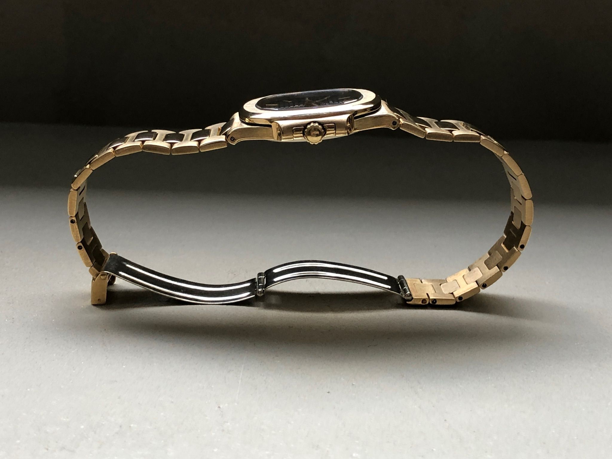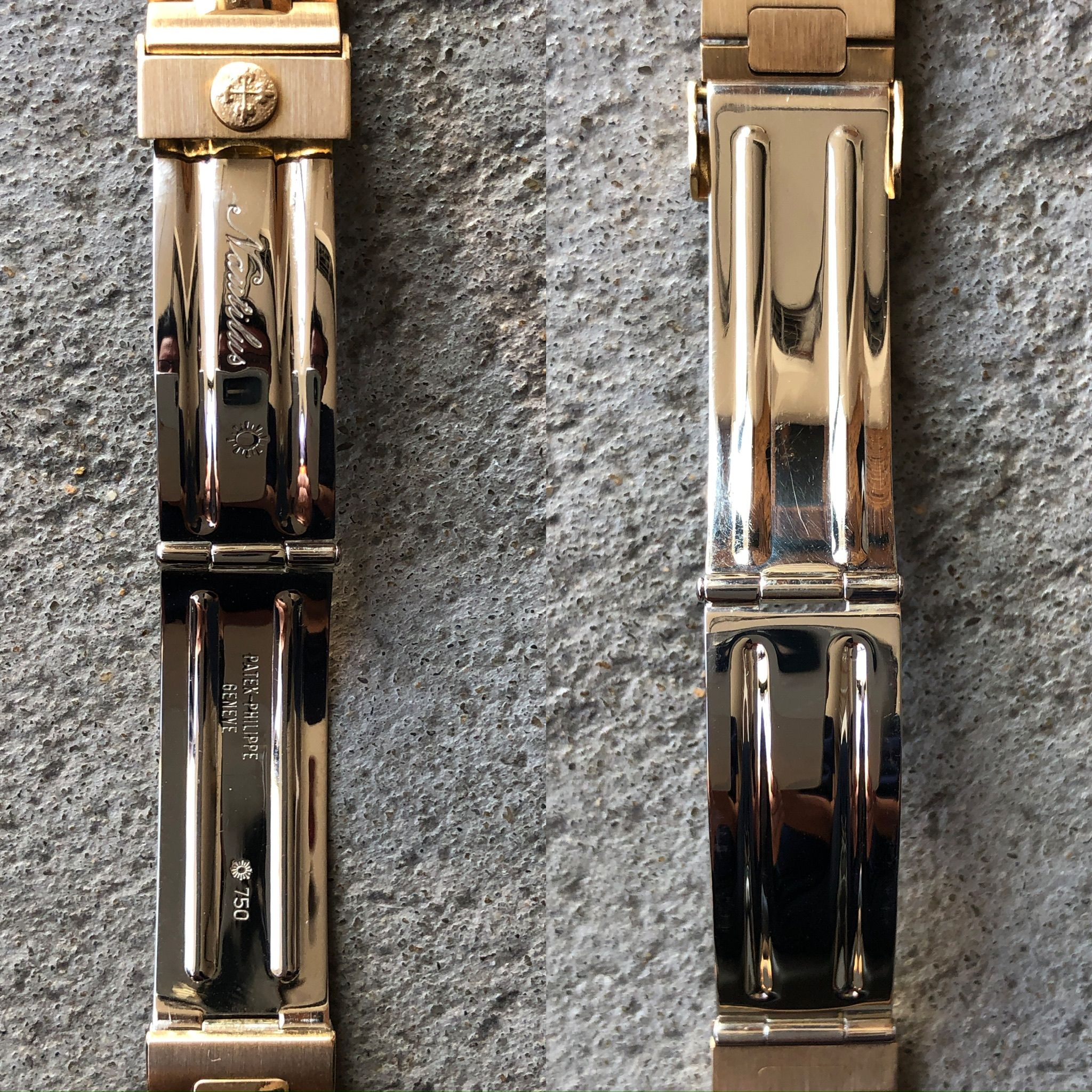 Bracelet: the bracelet is extremely tight and it proudly stands-up. 22 links. Nautilus engraved on the clasp.