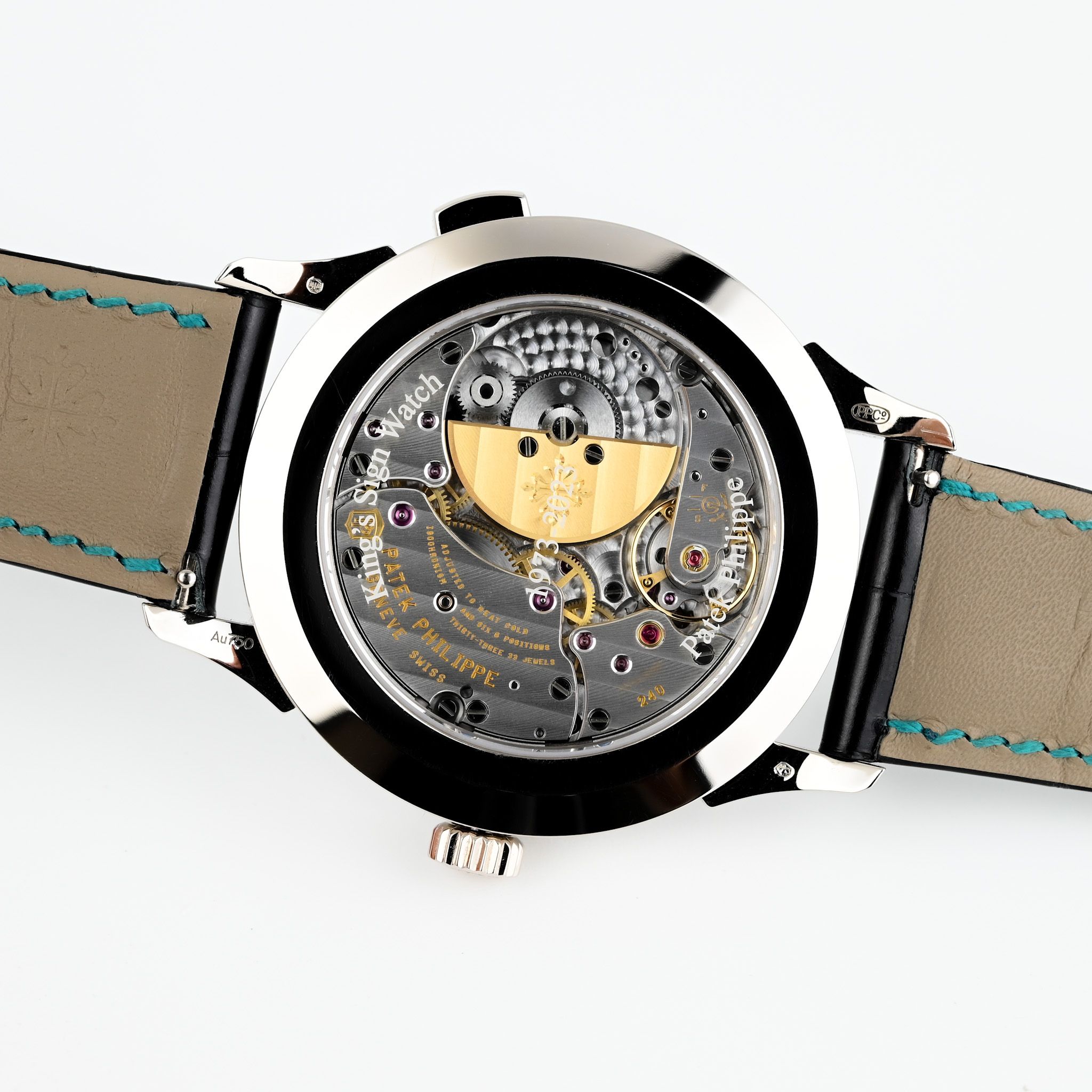On the back, the transparent caseback bears the inscription “King's Sign Watch 1973-2023 Patek Philippe” and reveals the 240 HU (HU “world time”) movement. This ultra-thin self-winding mechanical caliber is equipped with a micro-rotor and a patented Spiromax®️ balance-spring. It has a power reserve of at least 48 hours.