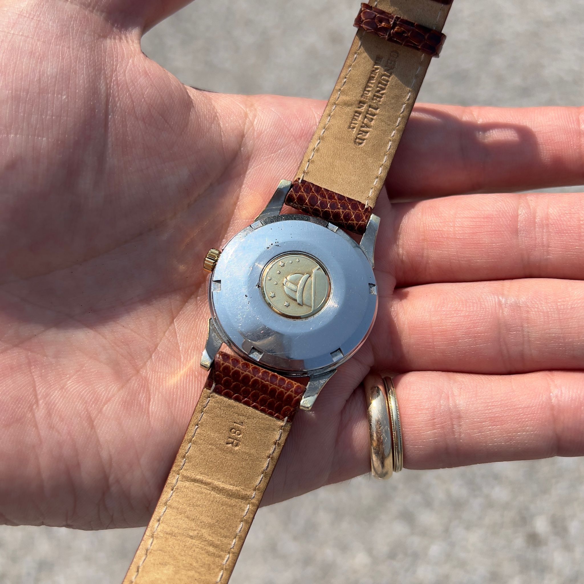Inside is an Omega Cal 551 automatic movement now fully serviced, with a serial indicating production in the 1958-60 timeframe.
