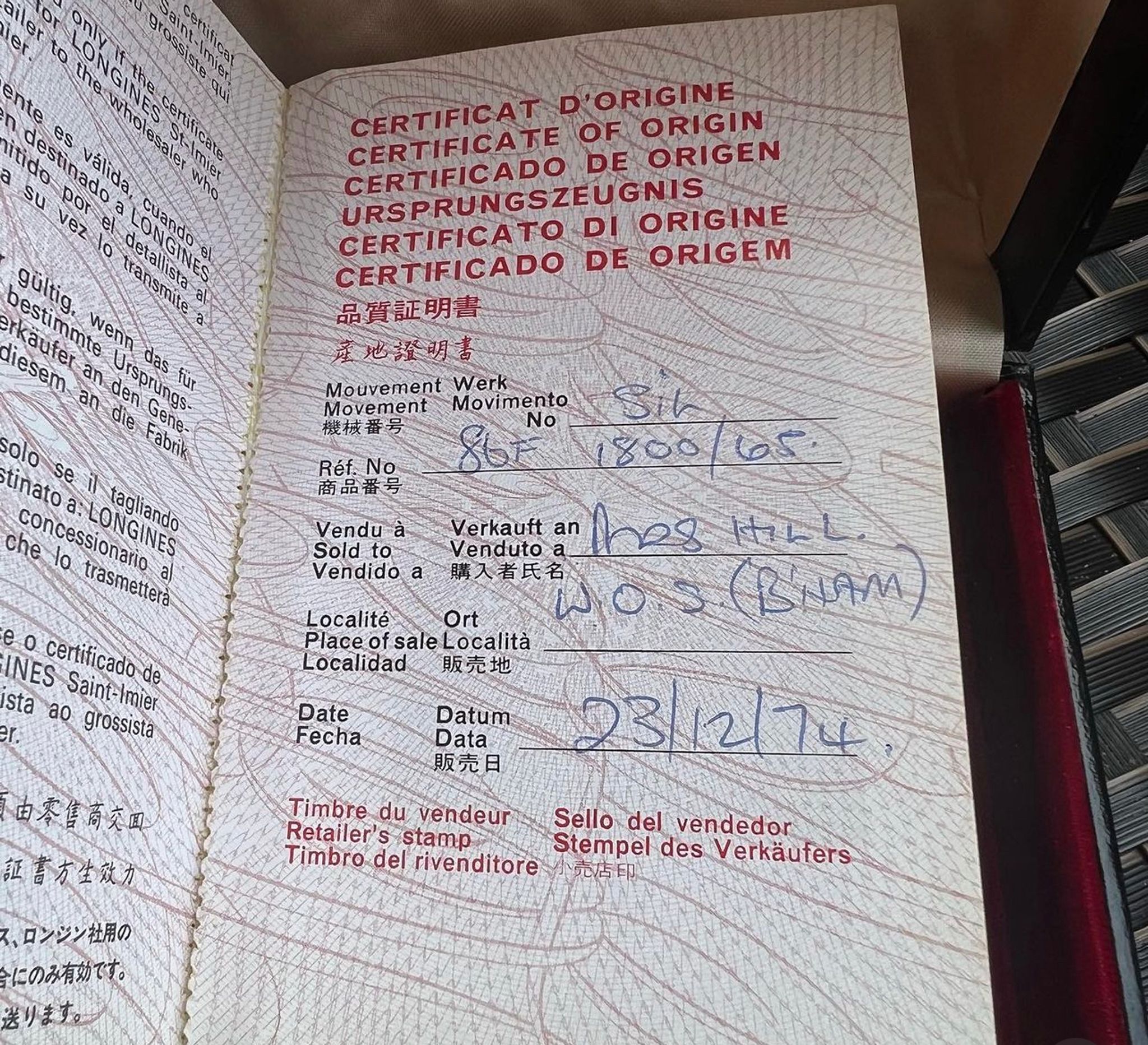 These British marks are backed up by the booklet, indicating it was sold in Birmingham in 1974, just 2 days before Christmas!