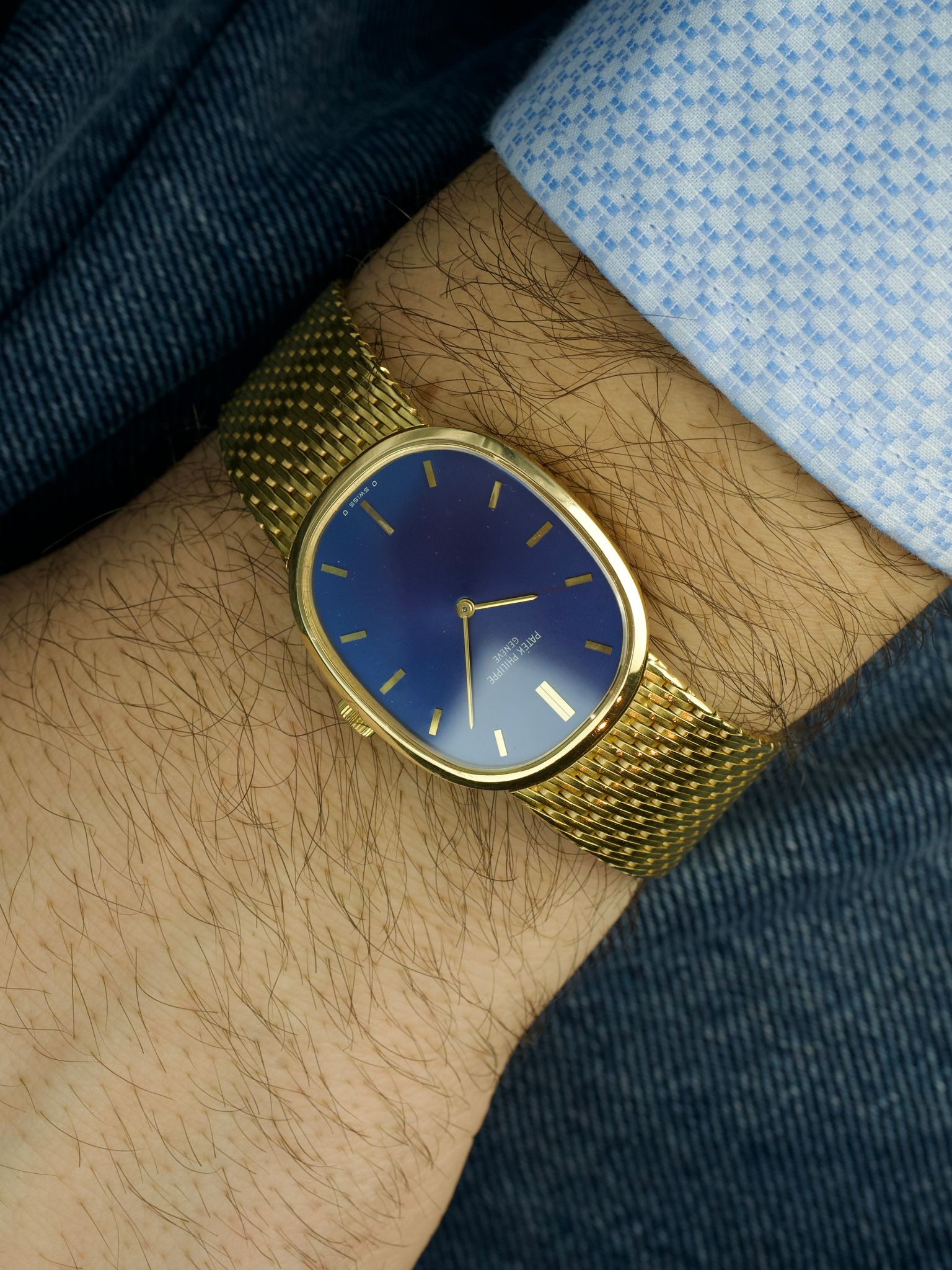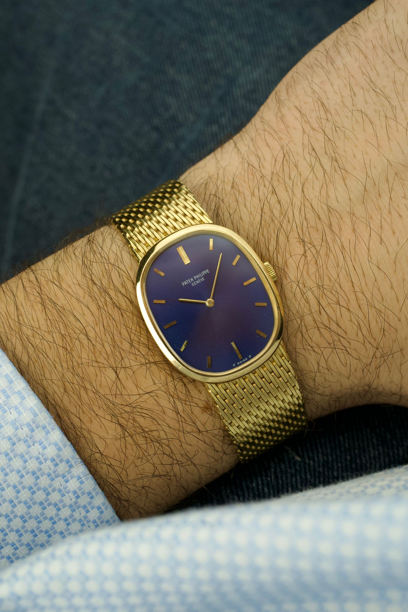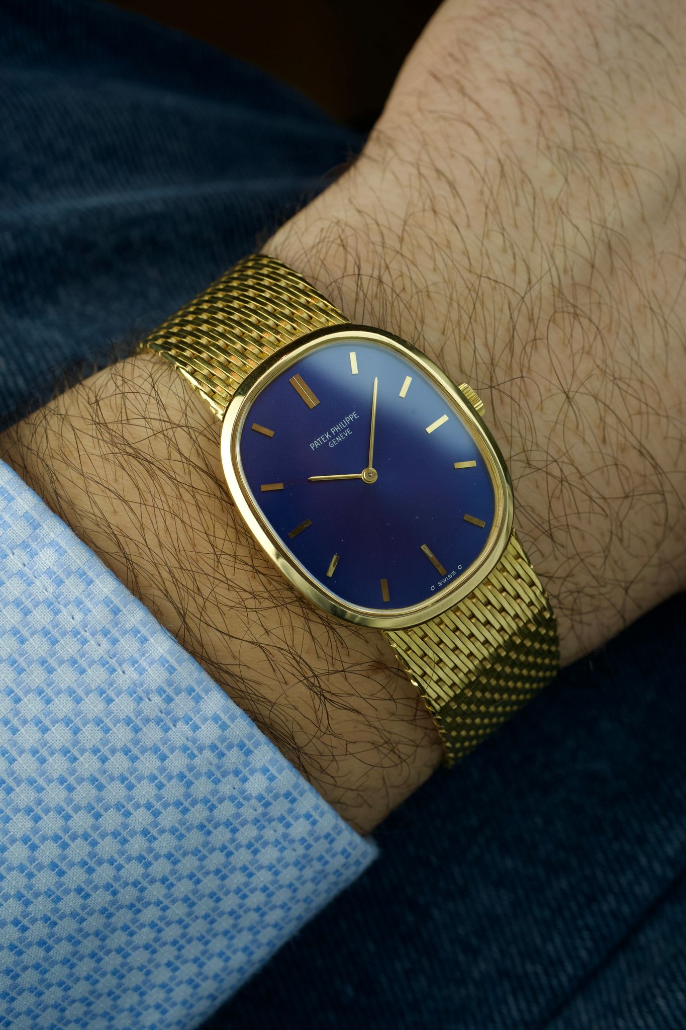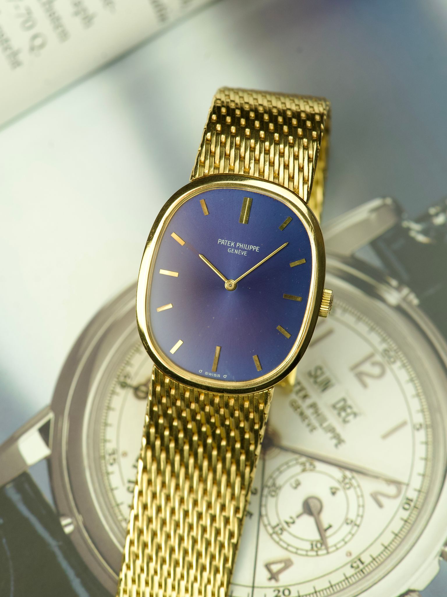 Patek Philippe - 80s Patek Philippe Ellipse 3748 Blue Sunburst 18 Carat Yellow Gold