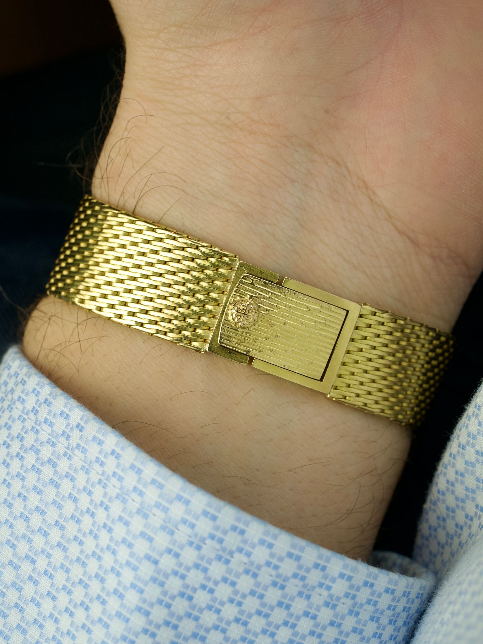 This Patek watch features a very rare and all original Patek 18 carat gold bracelet. The watch fits, thanks to the extension system in the clasp, up to a 18.5 cm wrist.