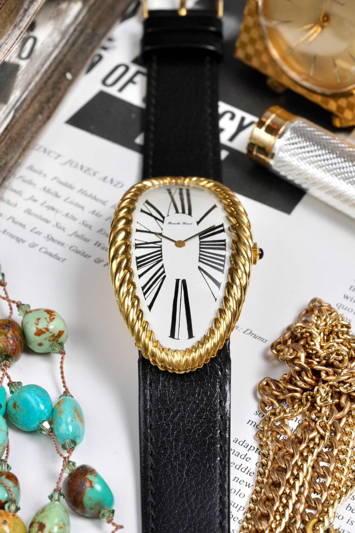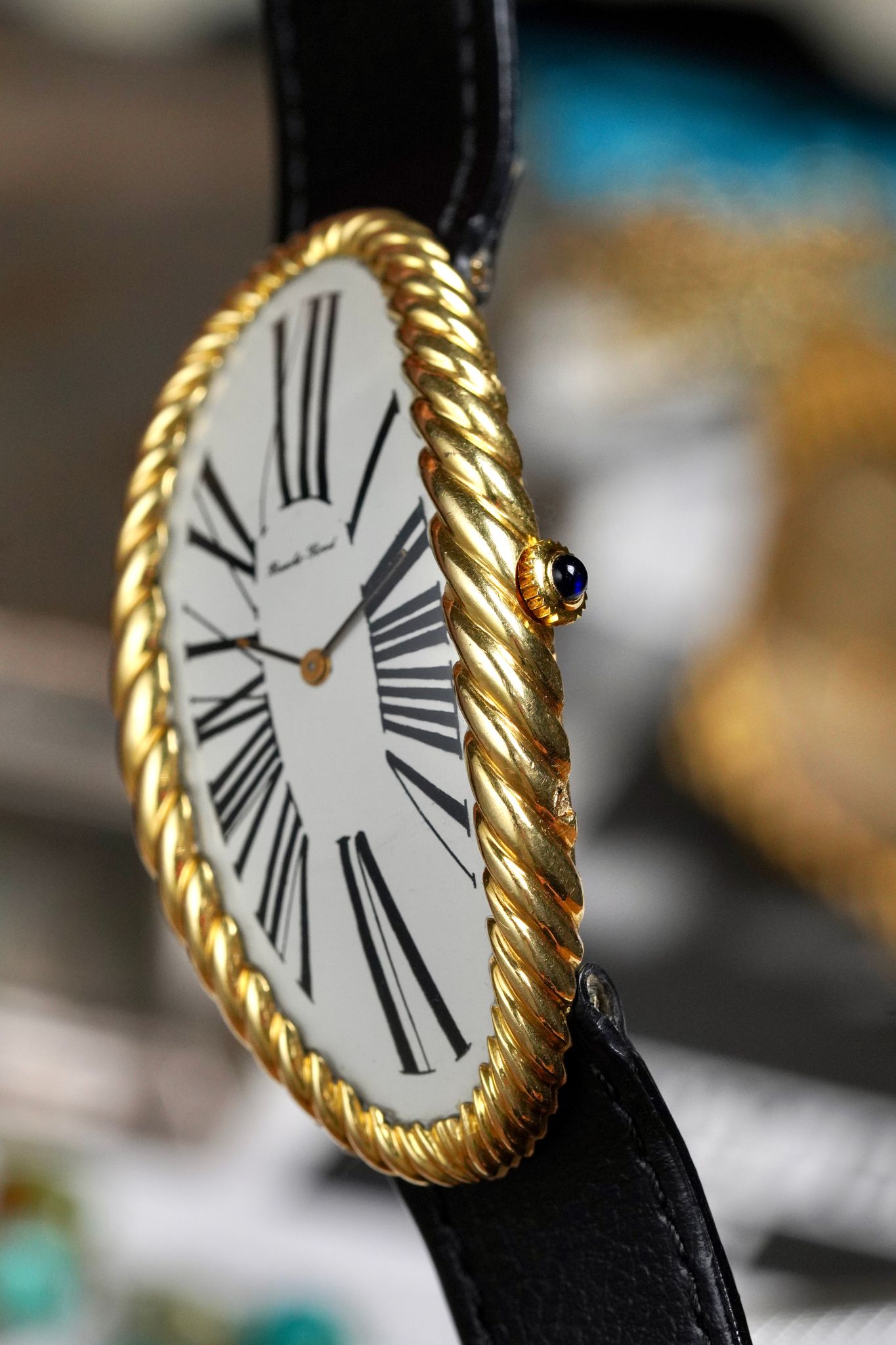 The Maxi Oval is one of the most bold and controversial statements of wristwatch design. What with its extremely hyperbolic case length and its contoured Roman numeral dial, these traits combined with its ribbed bezel amplifies an already conspicuous watch through the roof.
