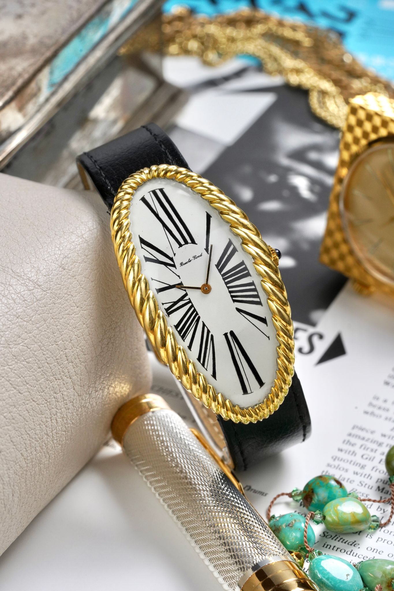 Bueche Girod is a brand steeped in mystery, emerging as a house of great opulence and excess in the post war era. The brand were known to share case manufacturing, designs and movements with Cartier. In fact, this reference's cousin, the Maxi Oval with a smooth bezel, is a one to one with the Cartier variant.