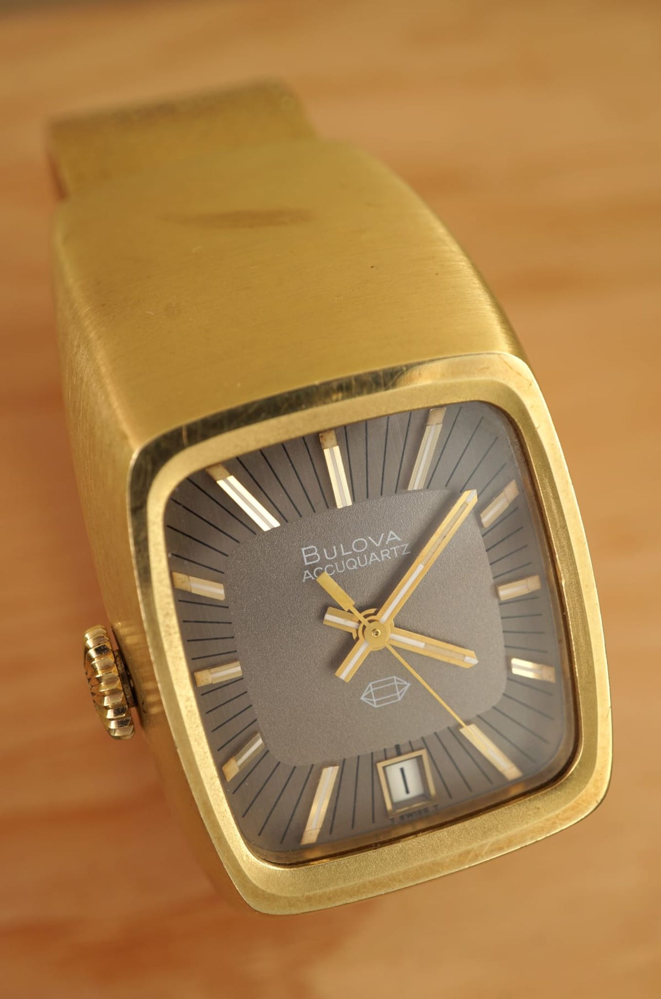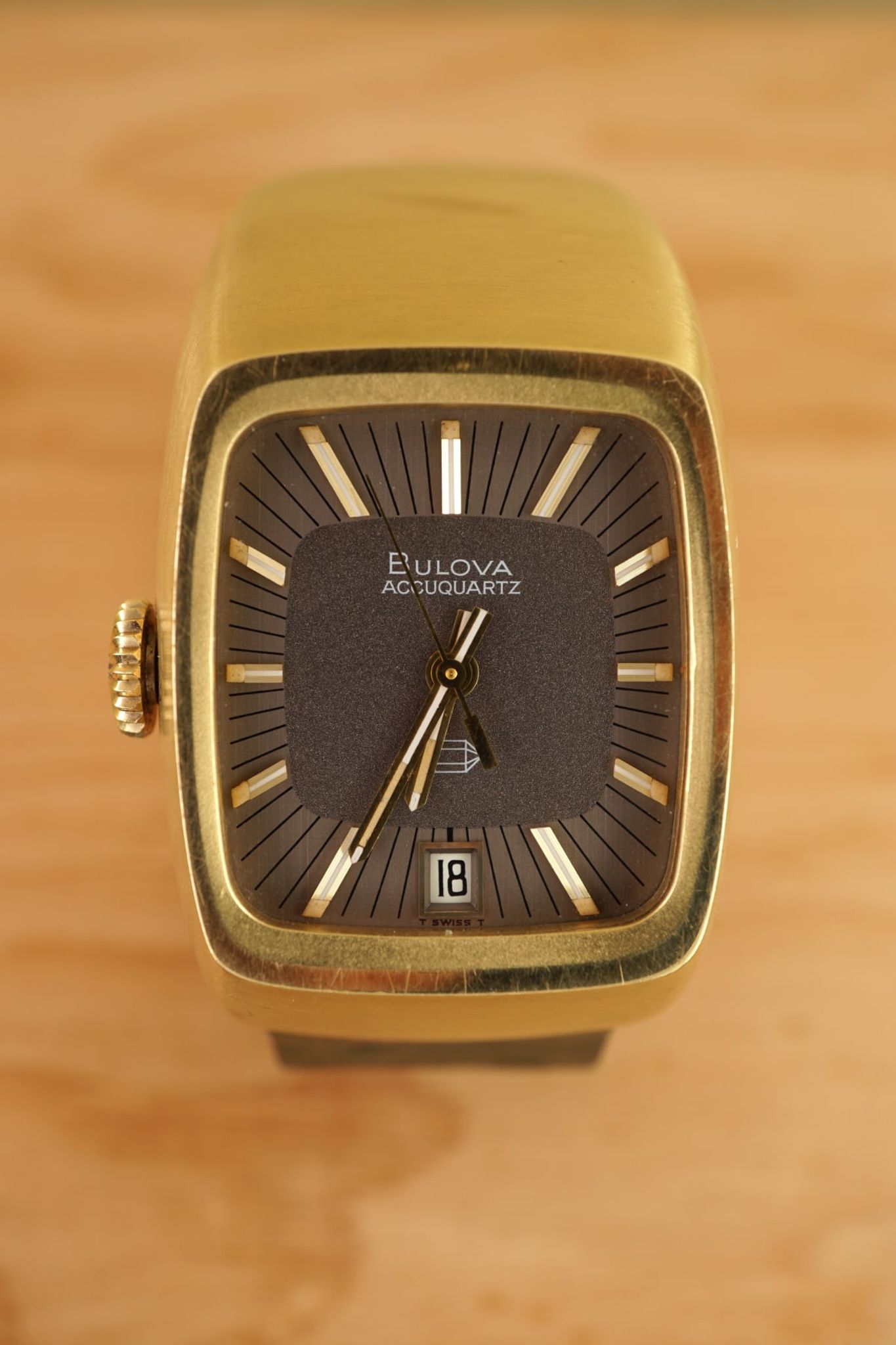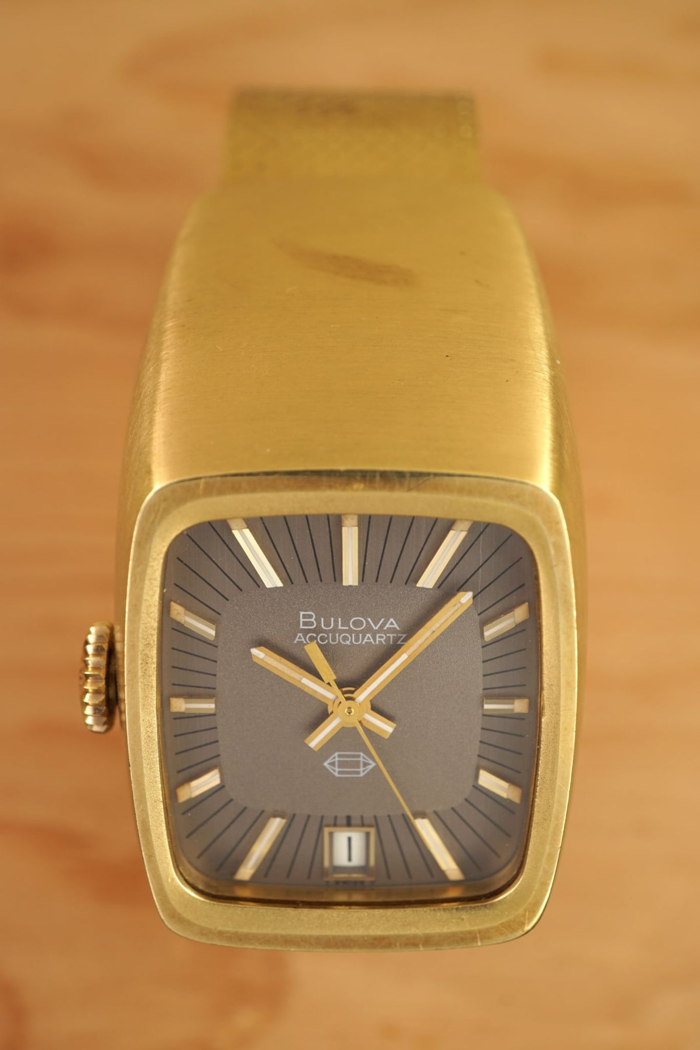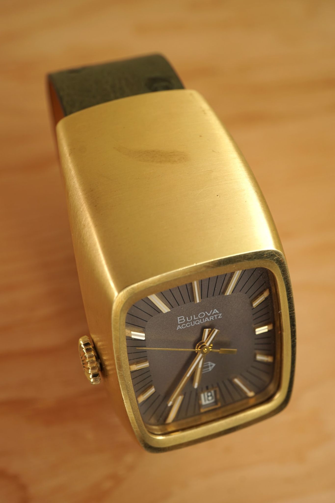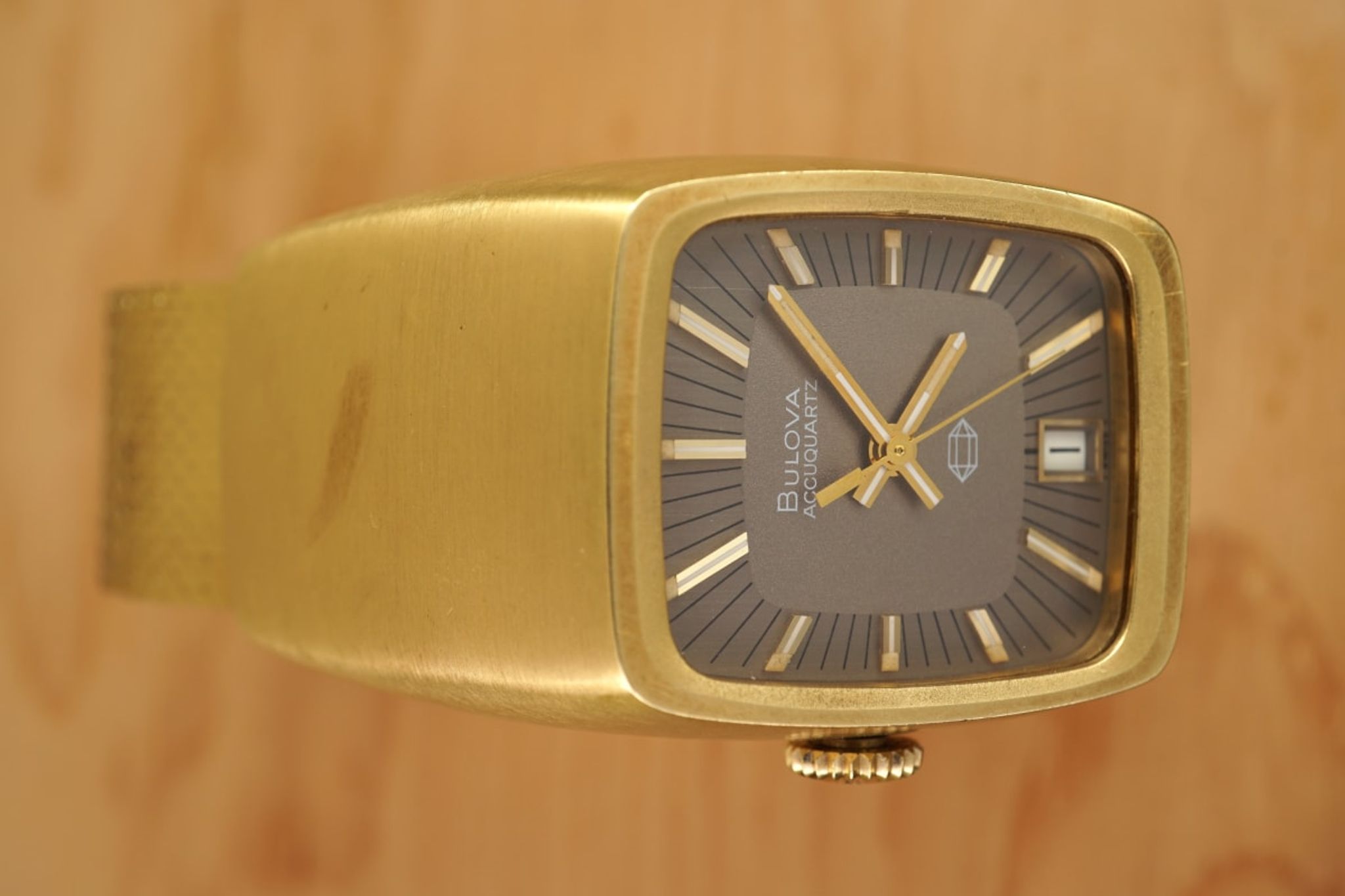 Another interesting horological aspect: it is the first quartz-watch (1970, Bulova-code N0) from the brand that invented the first electronic (!not electric) watch ten years before -- the Bulova Accutron (1961) -- and it is one in a line that shows the progress of miniaturisation with the AccuQuartz becoming smaller in 1972.