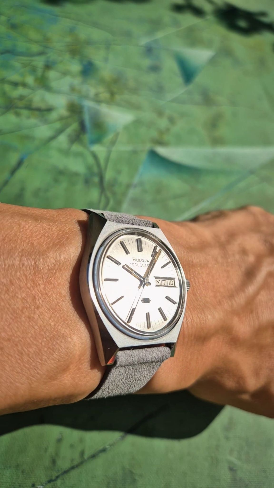 Indeed one of the most beautiful Bulovas in my opinion and one of the most interesting and controversial -- igniting the legal fight with C.E.H and Beta21. Indeed, the principle is quite the same: a tuningfork is running the hands steady (sweeping seconds) and it is stepped by a quartz-crystal.