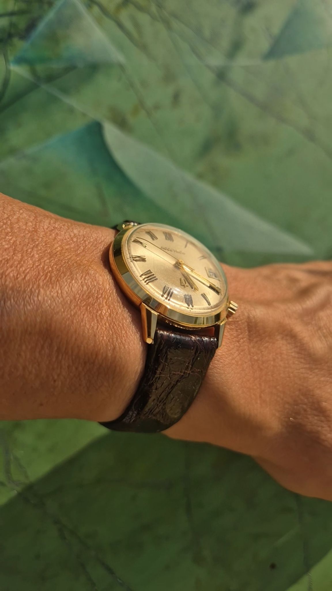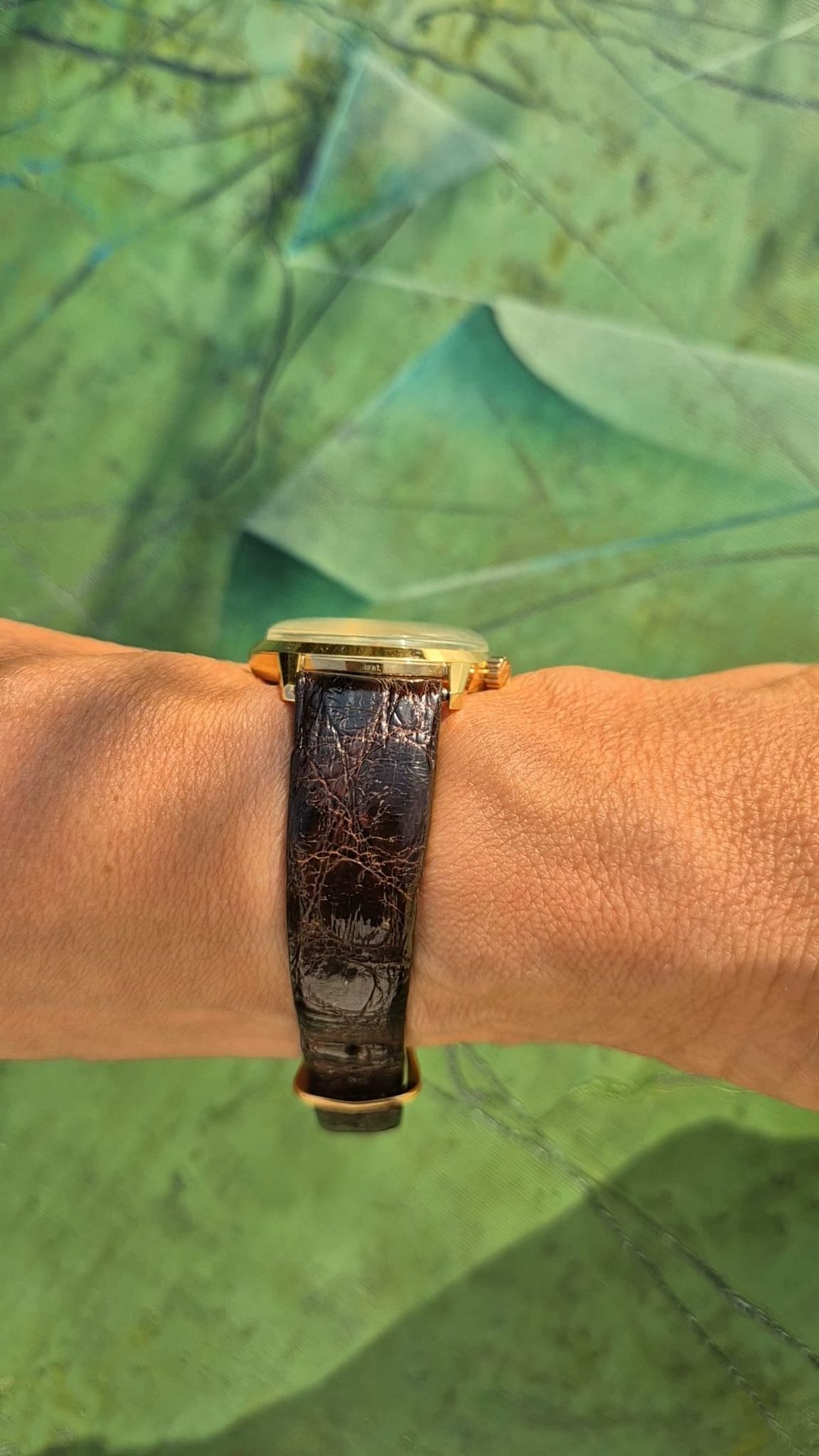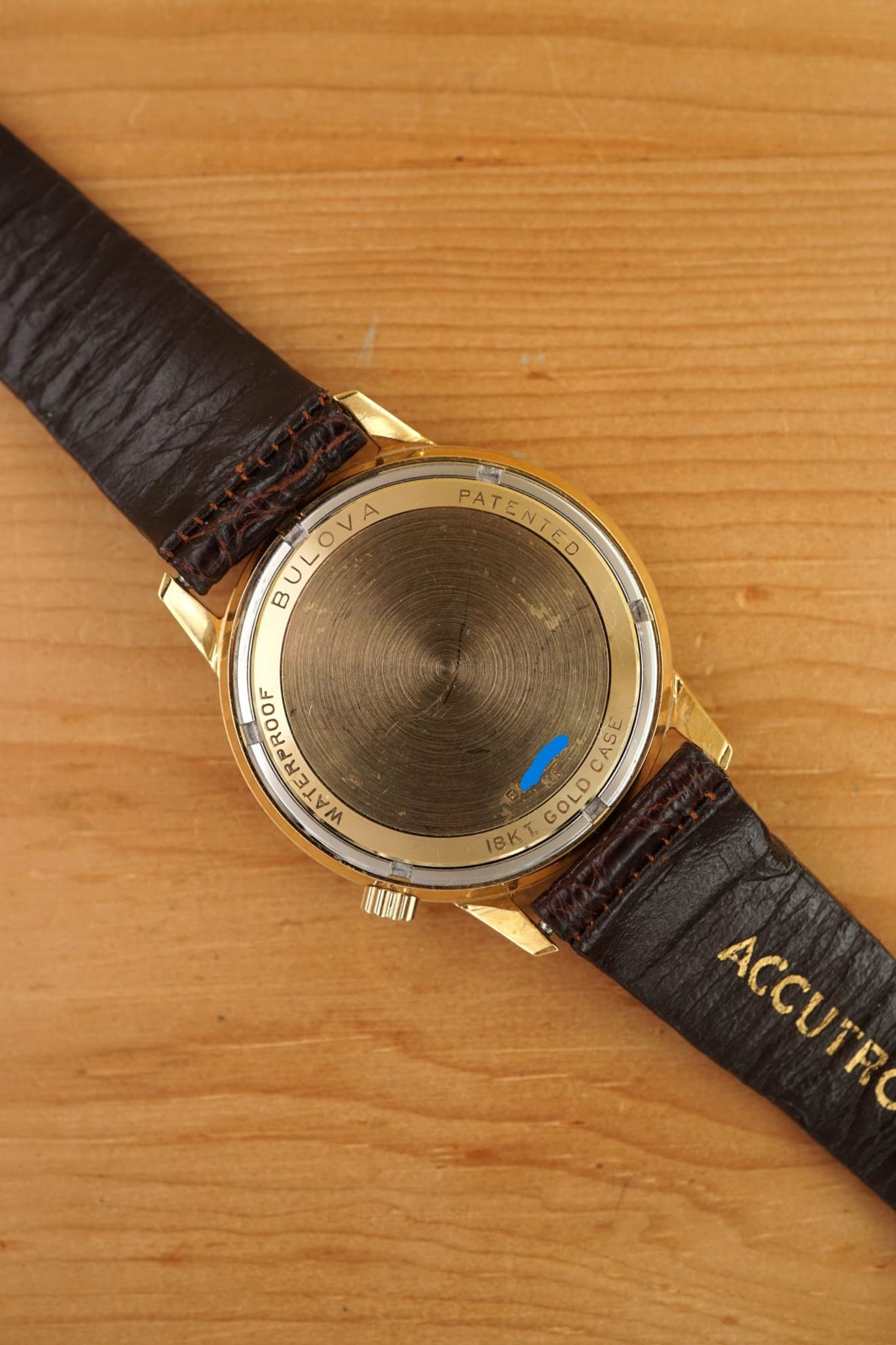 Made in 1965 (M5) and in heavy (18K) immaculate condition -- unpolished and with its original strap (Accutron) and original Bulova 18K-buckle. Yes, Accutrons in 18K are remarkably rare: most were made in steel or goldplated cases and just some in 14K gold (US-market) and much fewer in 18K solid gold. And even more important: a lot of these were smelted in the last 60+ years, making them rare and endangered artefacts & horological milestones, that are even more sough-after.