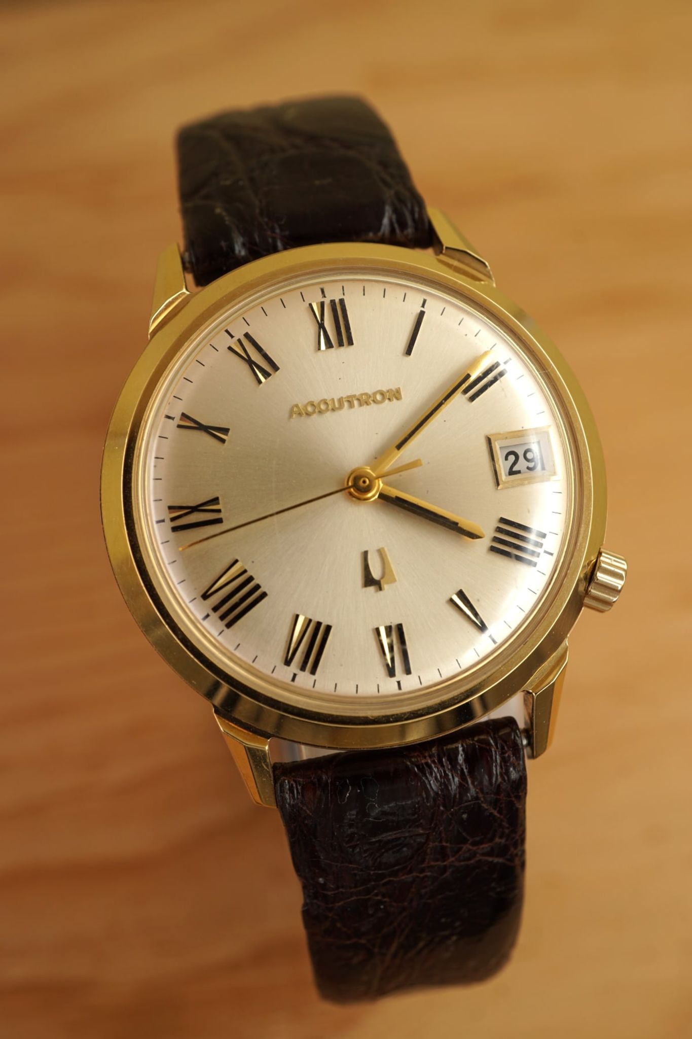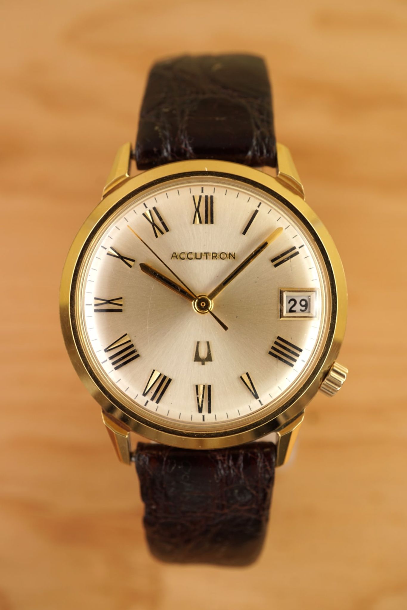 We are proud to offer Raised Roman Indexes: Accutron, Electronic in Gold.