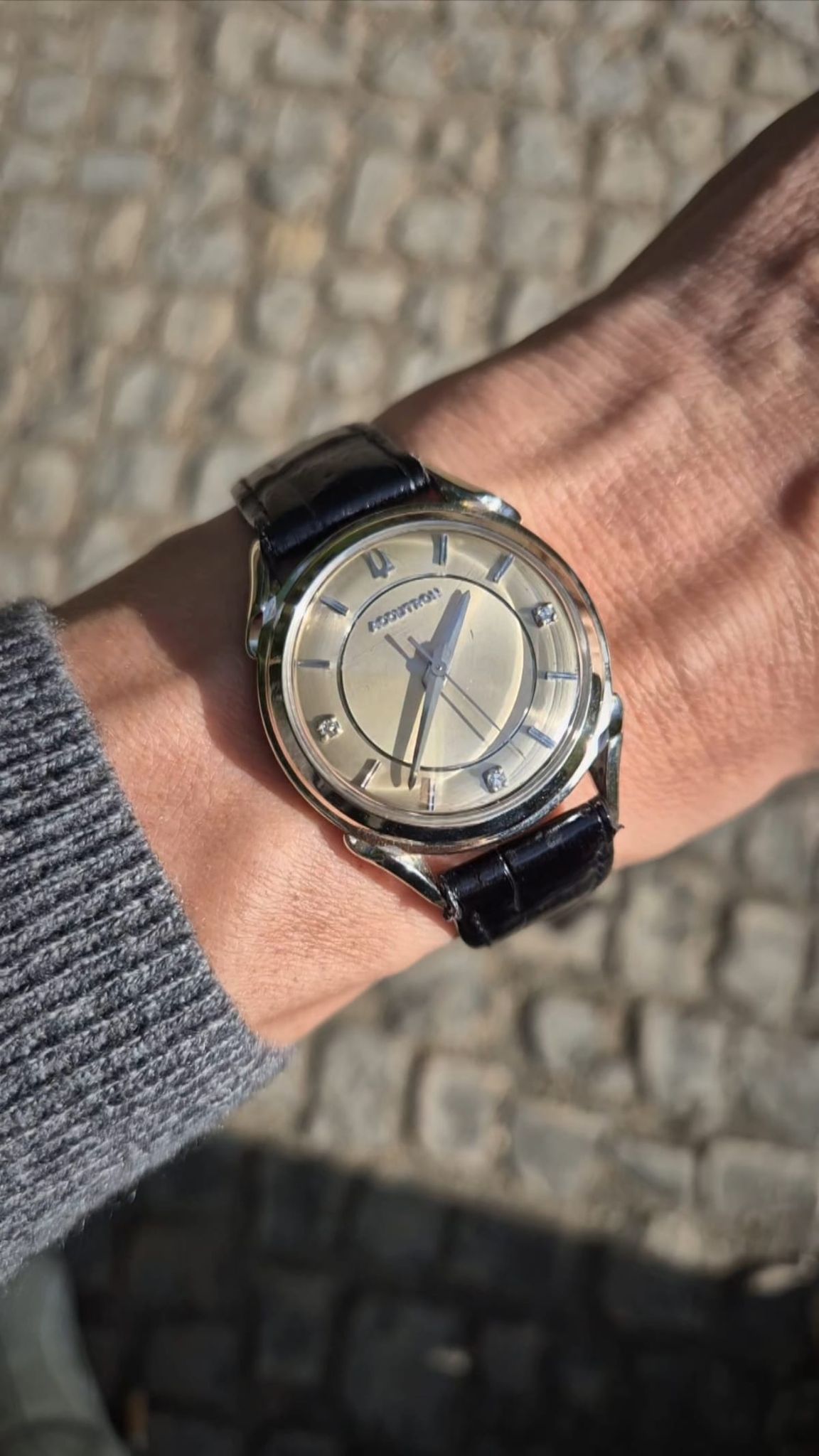 The M1-stamp indicates it was created in 1961. The movement was serviced right now and is in excellent and precisely running condition.