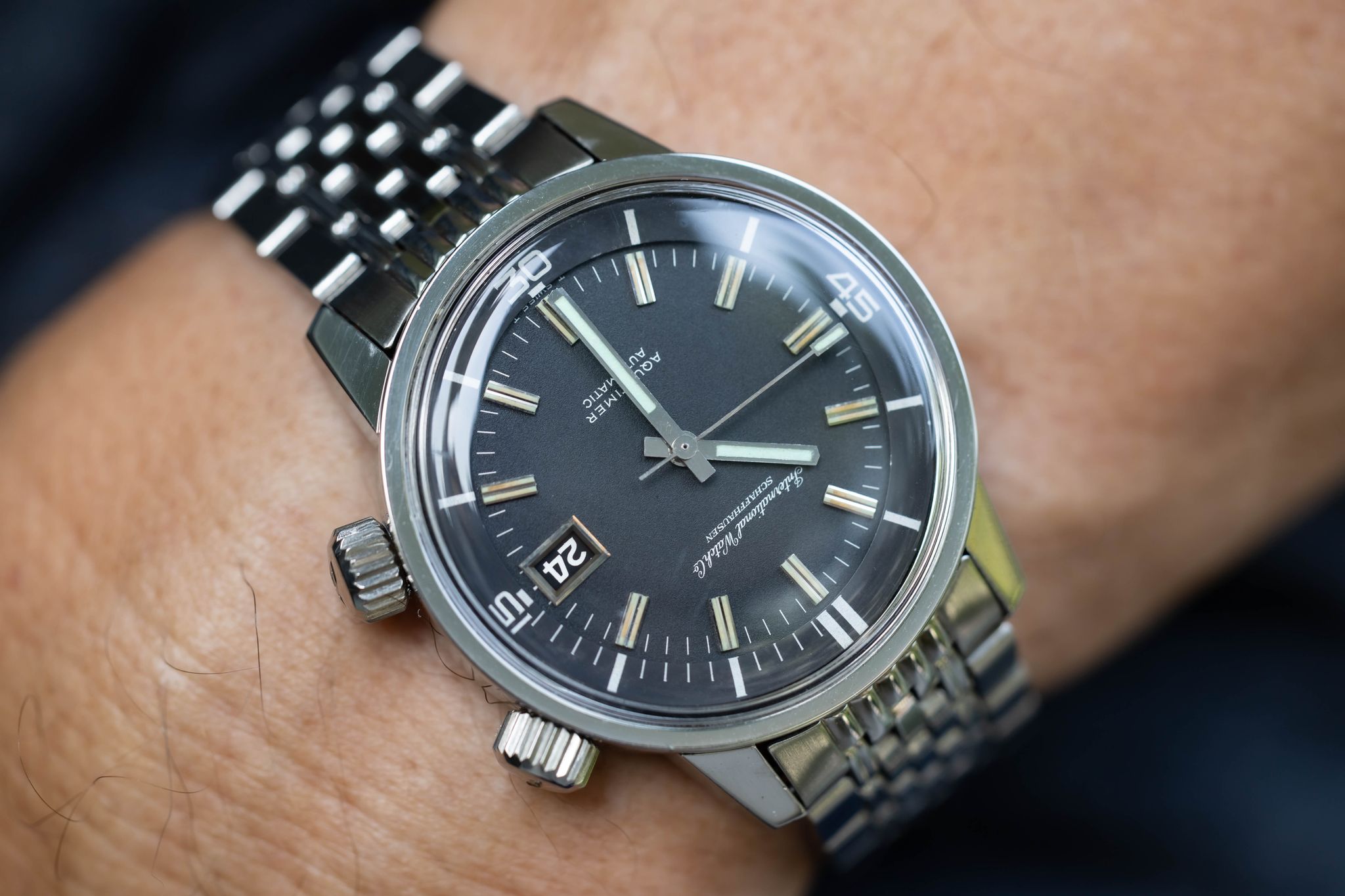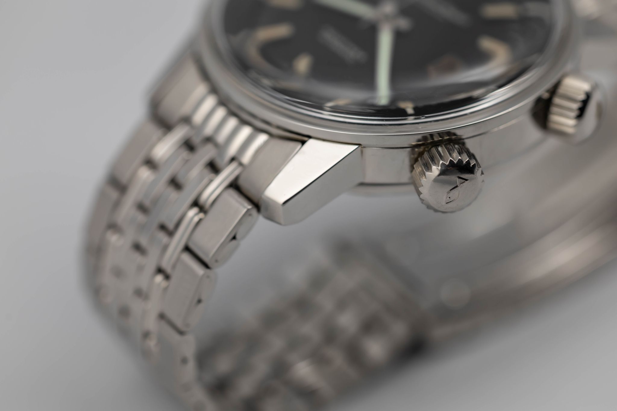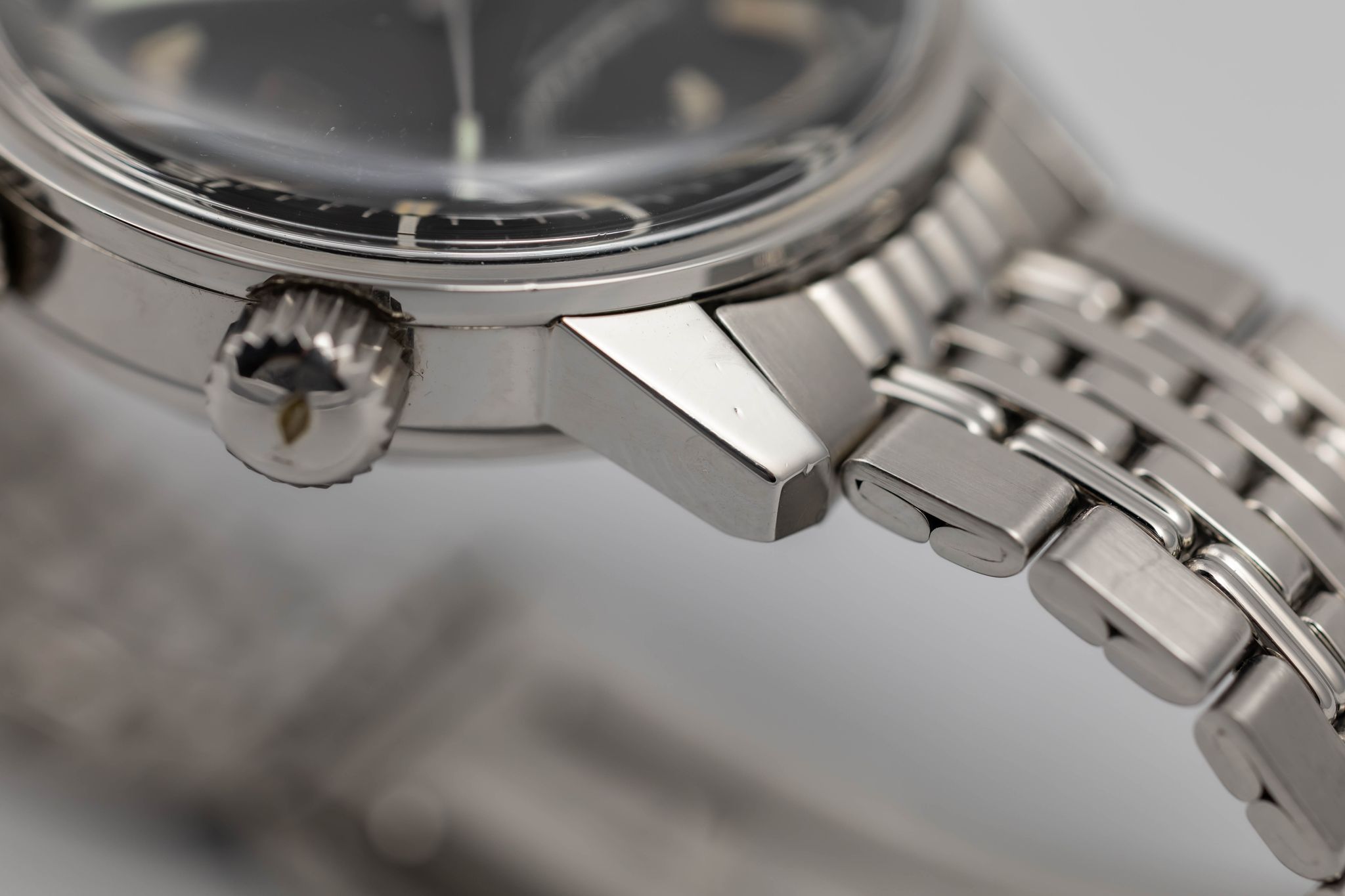 What sets this particular Aquatimer apart is its pristine condition. The case remains immaculate, showing no signs of wear, preserving the watch's original elegance and functionality. The dial is in superb condition, with the original tritium lume retaining its brilliance, free from any fading or age-related deterioration. Adding to the rarity and desirability of this piece, it includes its original IWC-Gay Freres bracelet, also in outstanding condition and dated to 1969. The bracelet's unique double branding highlights the collaboration between IWC and Gay Freres, two names synonymous with excellence in watchmaking. The IWC Aquatimer 812AD is one of the most coveted models in IWC's illustrious history, with only 2,000 units produced, including the 1812 variant.