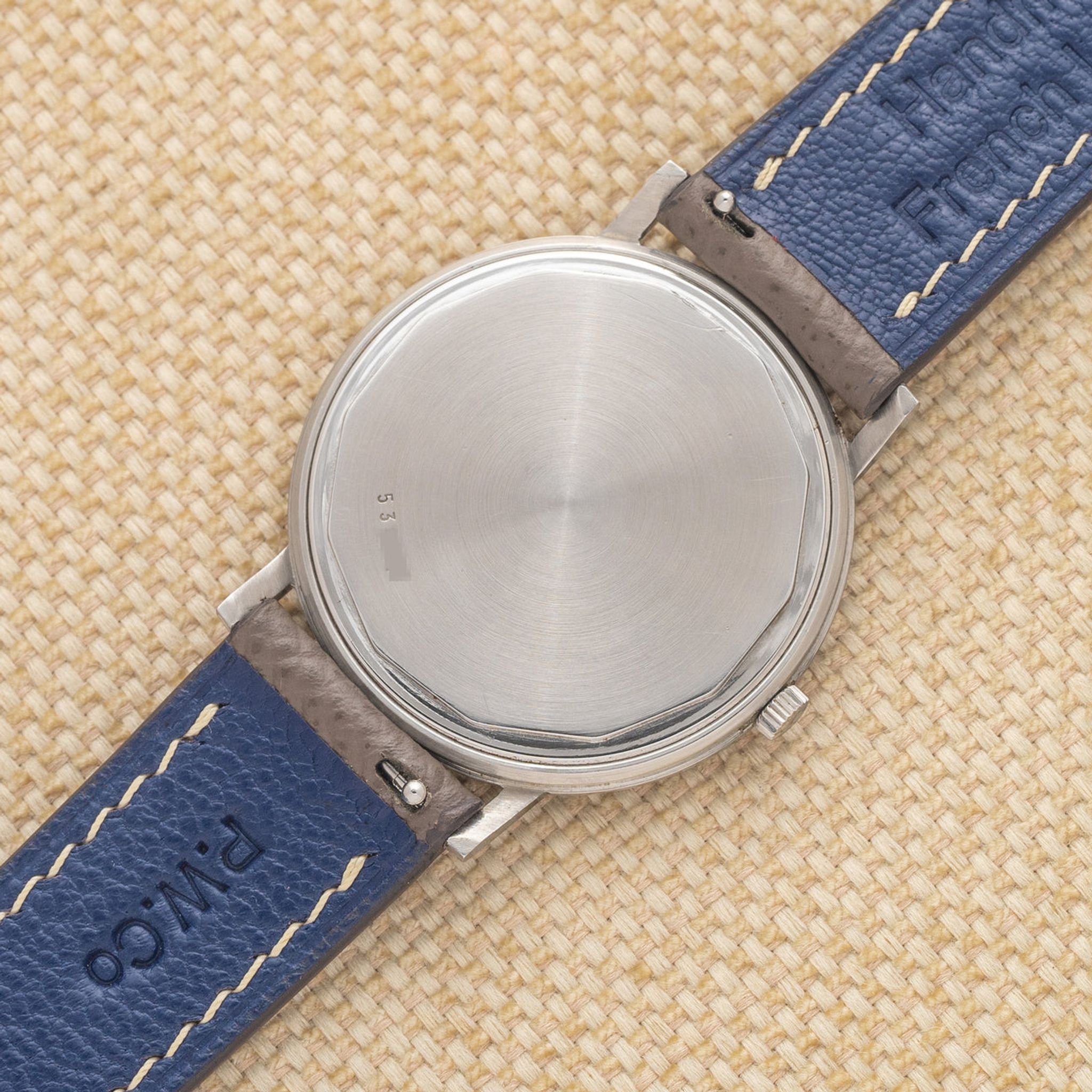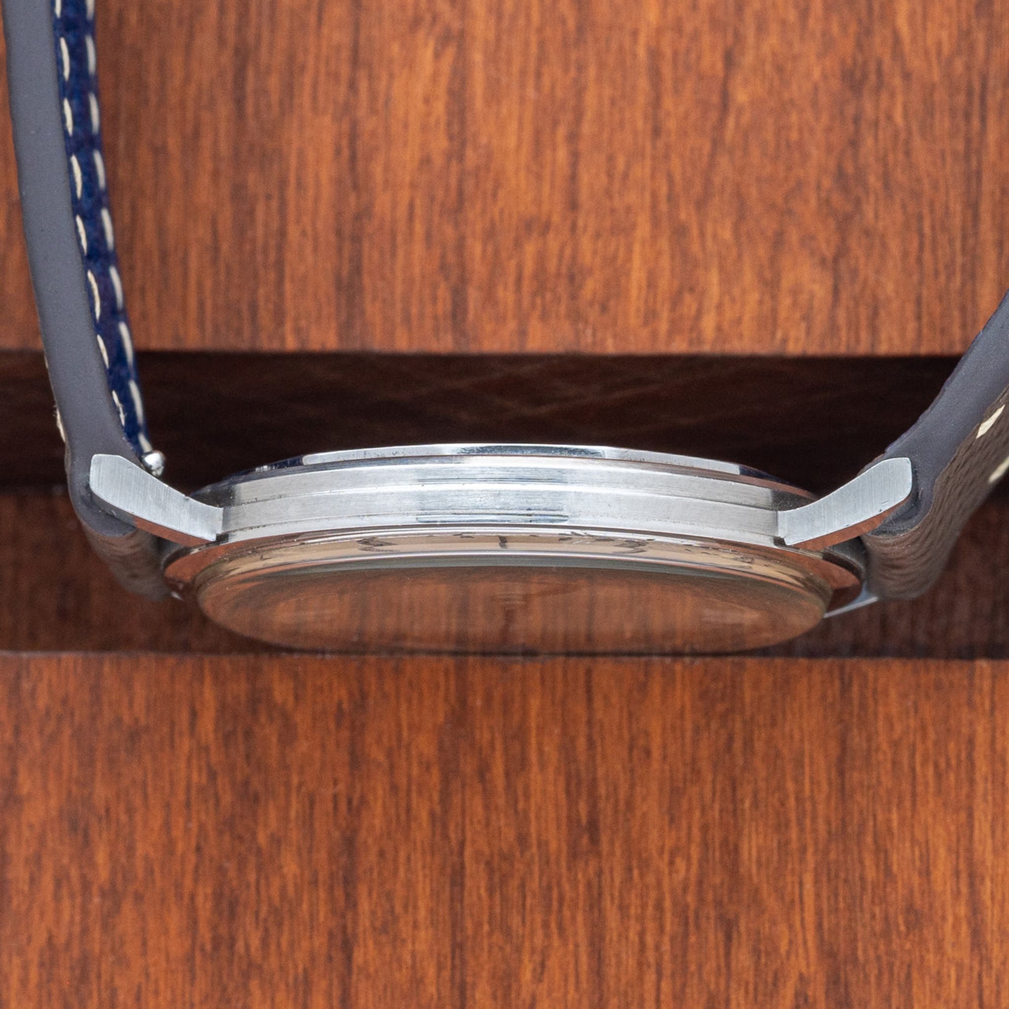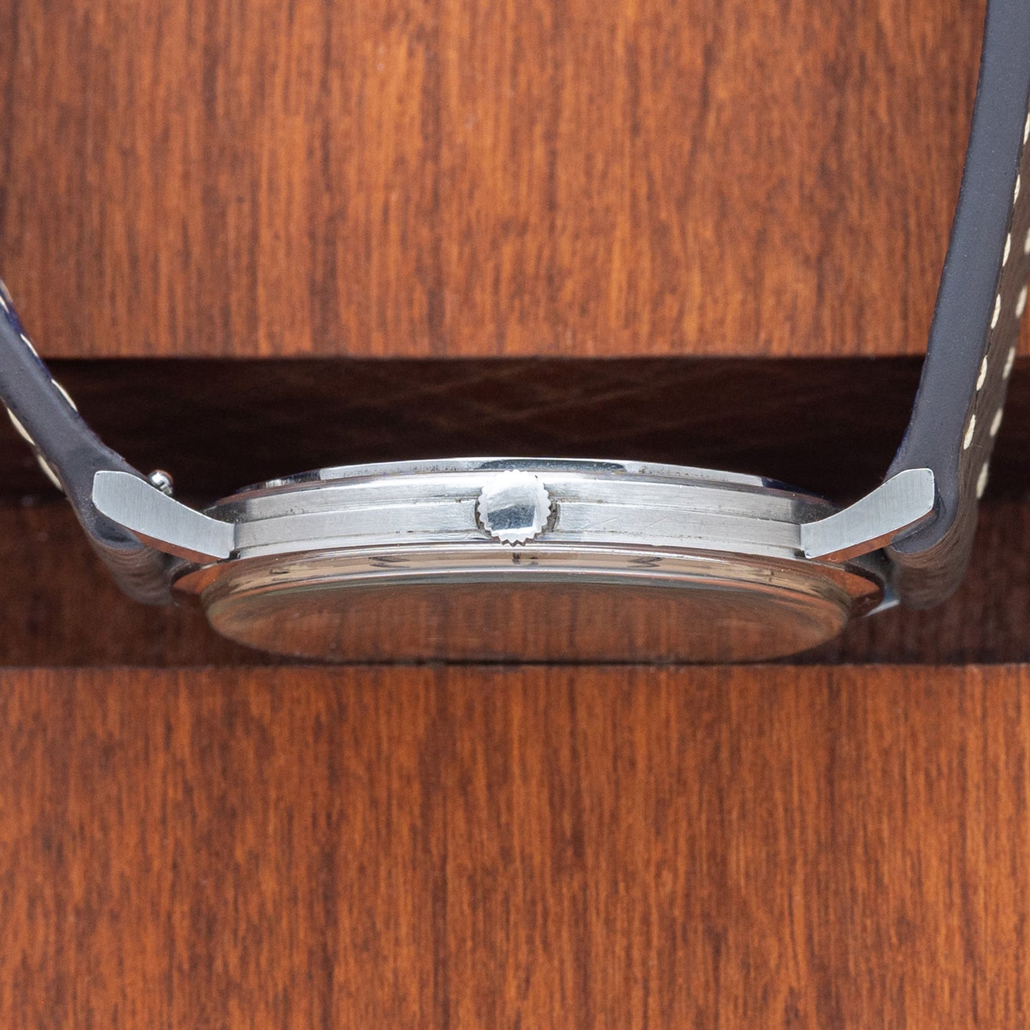 For those who appreciate the seldom seen finds, the 5273 offers a "less is more" and "no frills" design language and makes for a practical dress addition being self-winding and in stainless steel. We could not be more thrilled to offer this example which has remained in fantastic vintage condition with a clean dial and unpolished case!