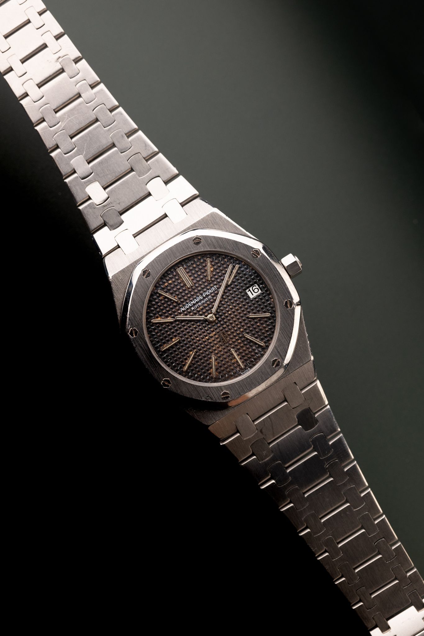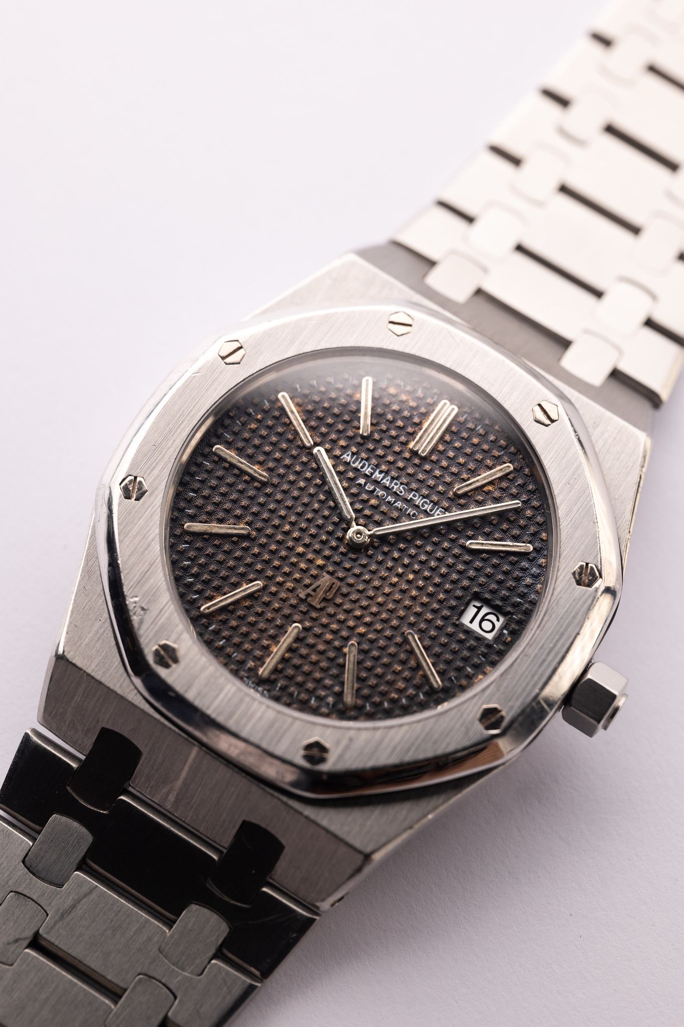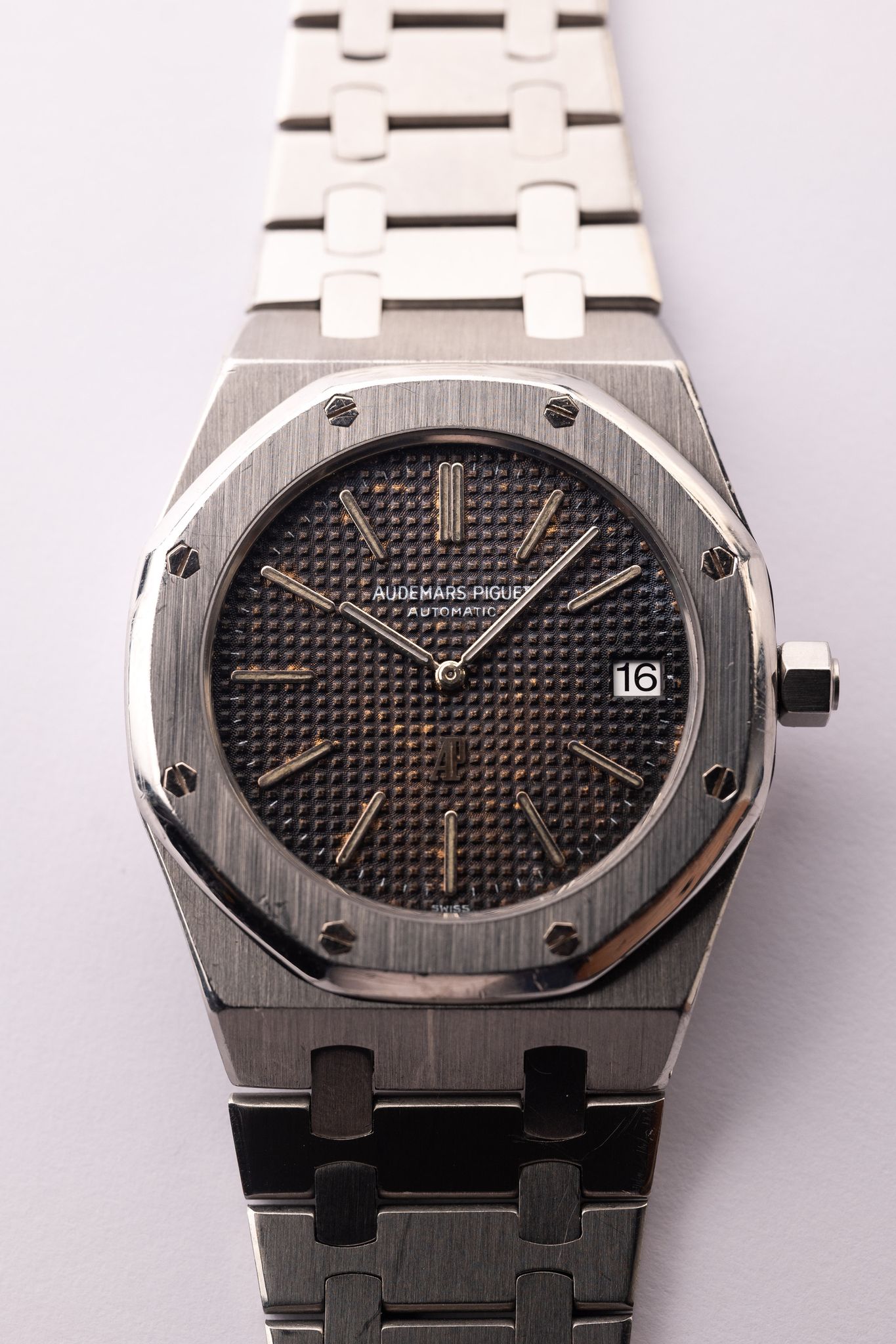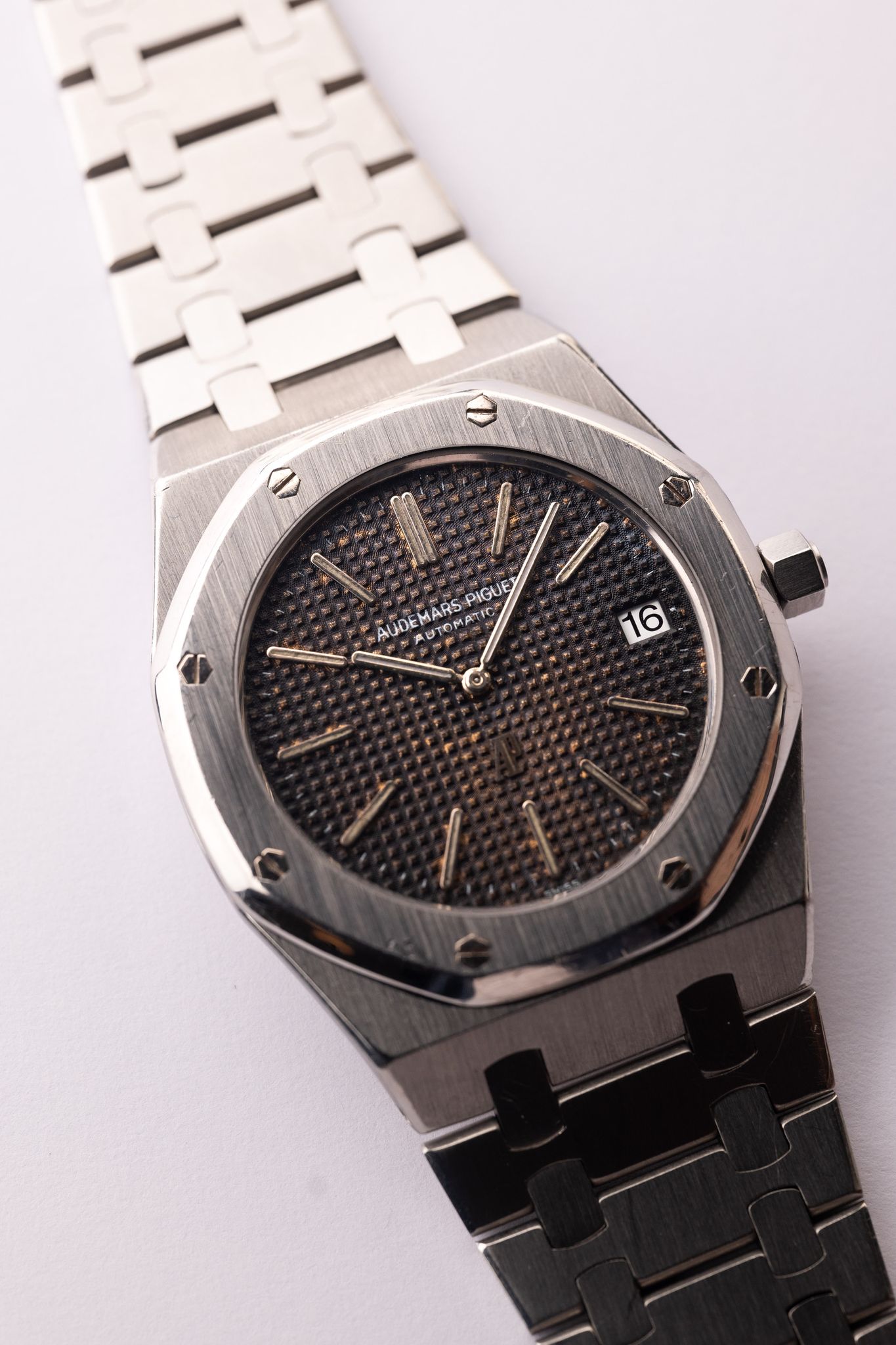 The original Royal Oak seldomly needs an introduction. The iconic 39mm case and design by Gerald Genta has found a cult following and largely defined AP’s success into modern times. This A series (first series batch) 5402 has a beautiful black dial that has turned tropical over the years. Case and bracelet have previously been lightly polished but remain thick throughout the case and bracelet.