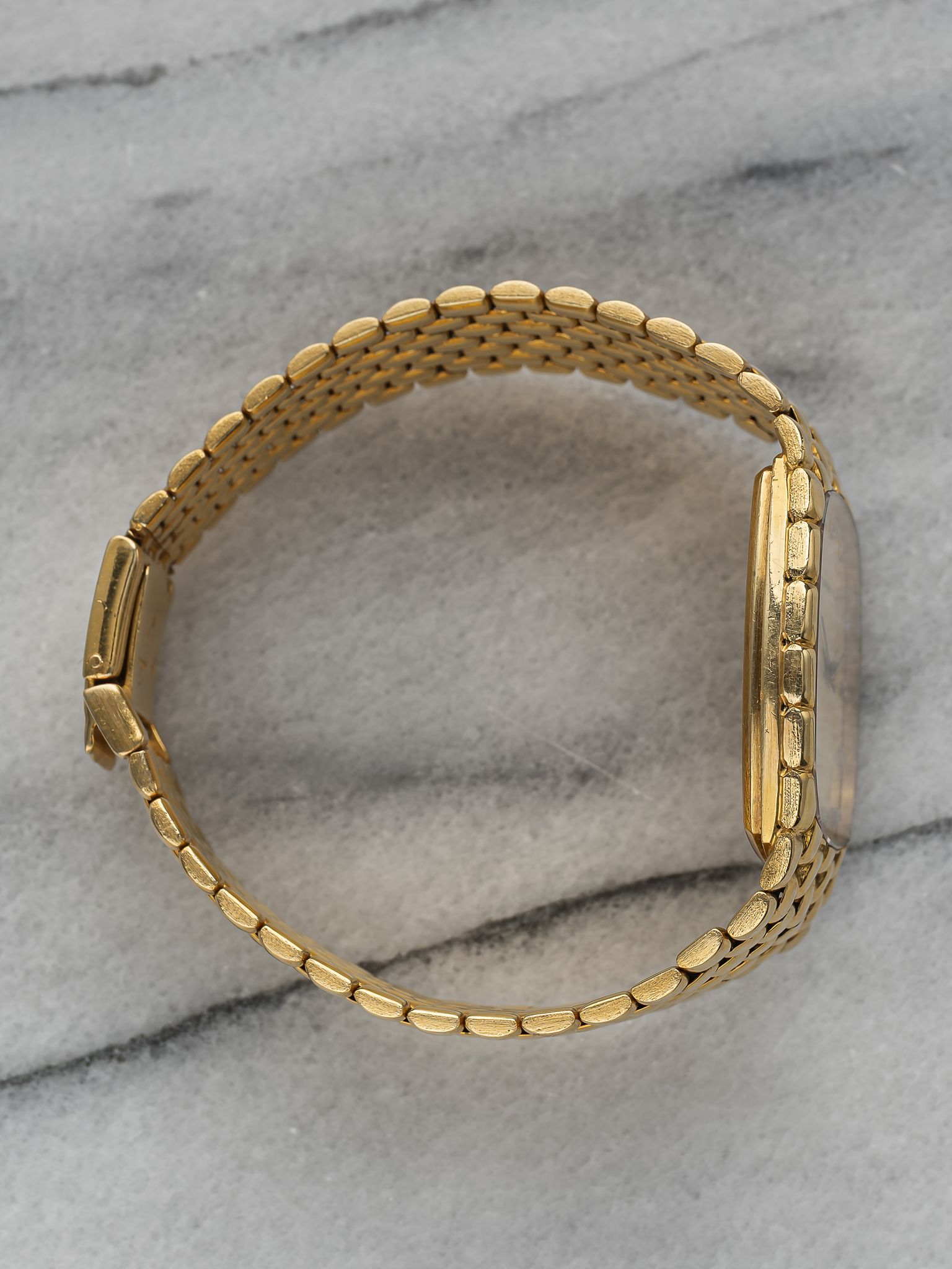 Here's a vintage Audemars Piguet Cobra manual wind in 18K yellow gold with a matte champagne diamond dial from the 1980s. Keeps great time and is fully functional. Measurements include a 28mm case and fits up to a 6.75 inch wrist. It's a different design from a brand that is a one trick pony with the royal oak. There is a knot/ rope braid finishing and texture on both the bezel and bracelet. Yellow gold case and bracelet. The piece is unisex, it can be worn by both men and women. The piece is great alternative and value from other pieces offered by AP. All parts are original including the dial, case, and movement. the dial and case are in great cosmetic, untouched condition.
