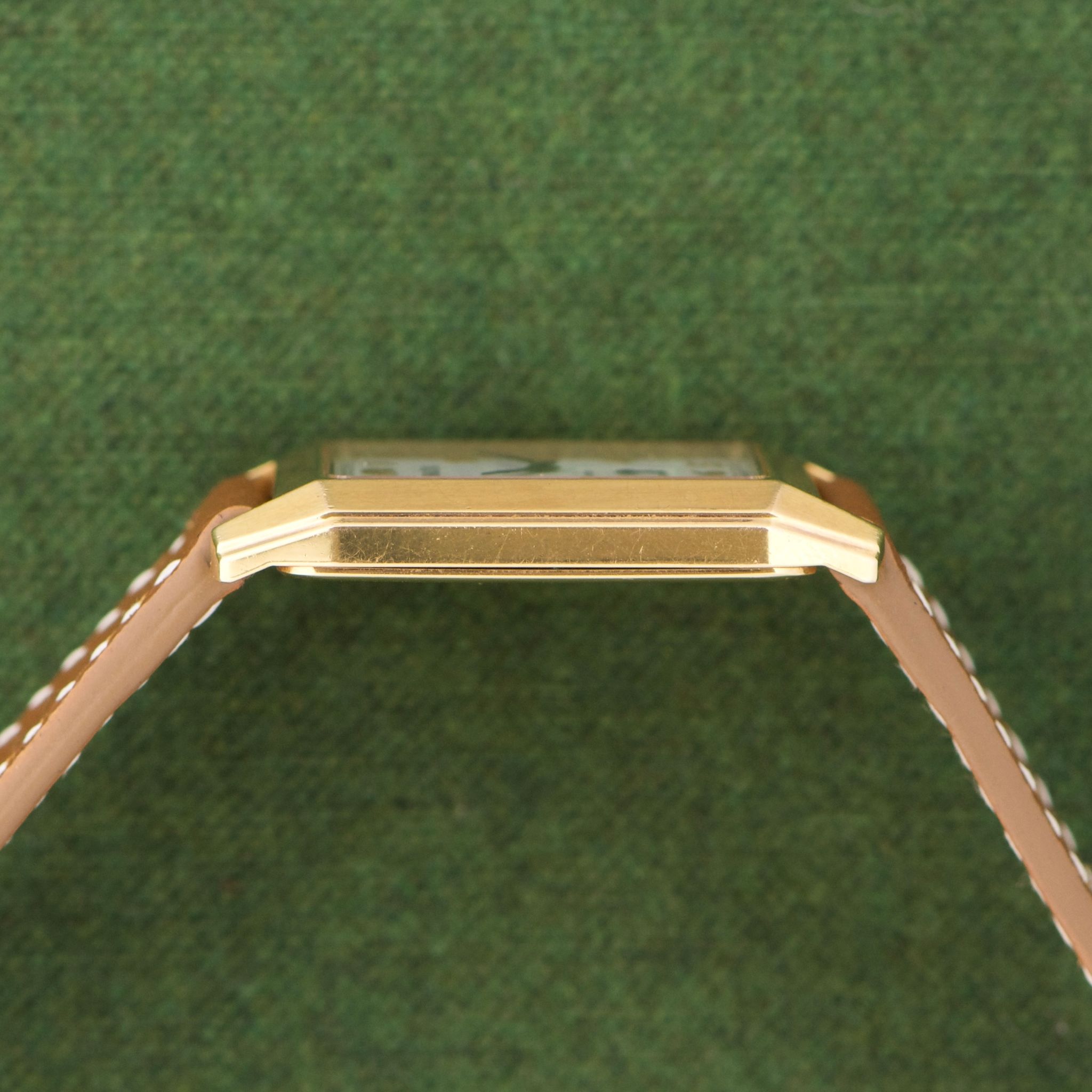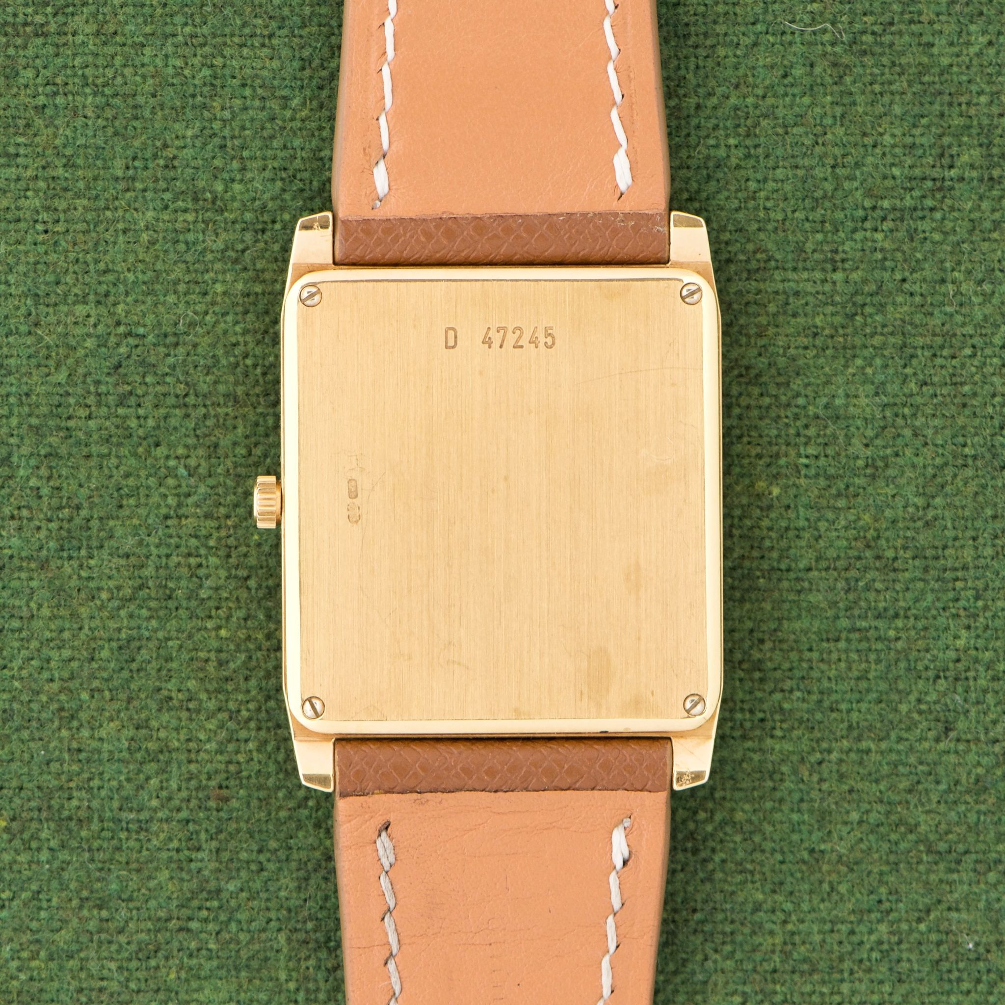 Case: The case has beautiful patina and looks unpolished. There is normal wear with some small marks but nothing major. Made of 18k rose gold, the case is 29 by 38mm.