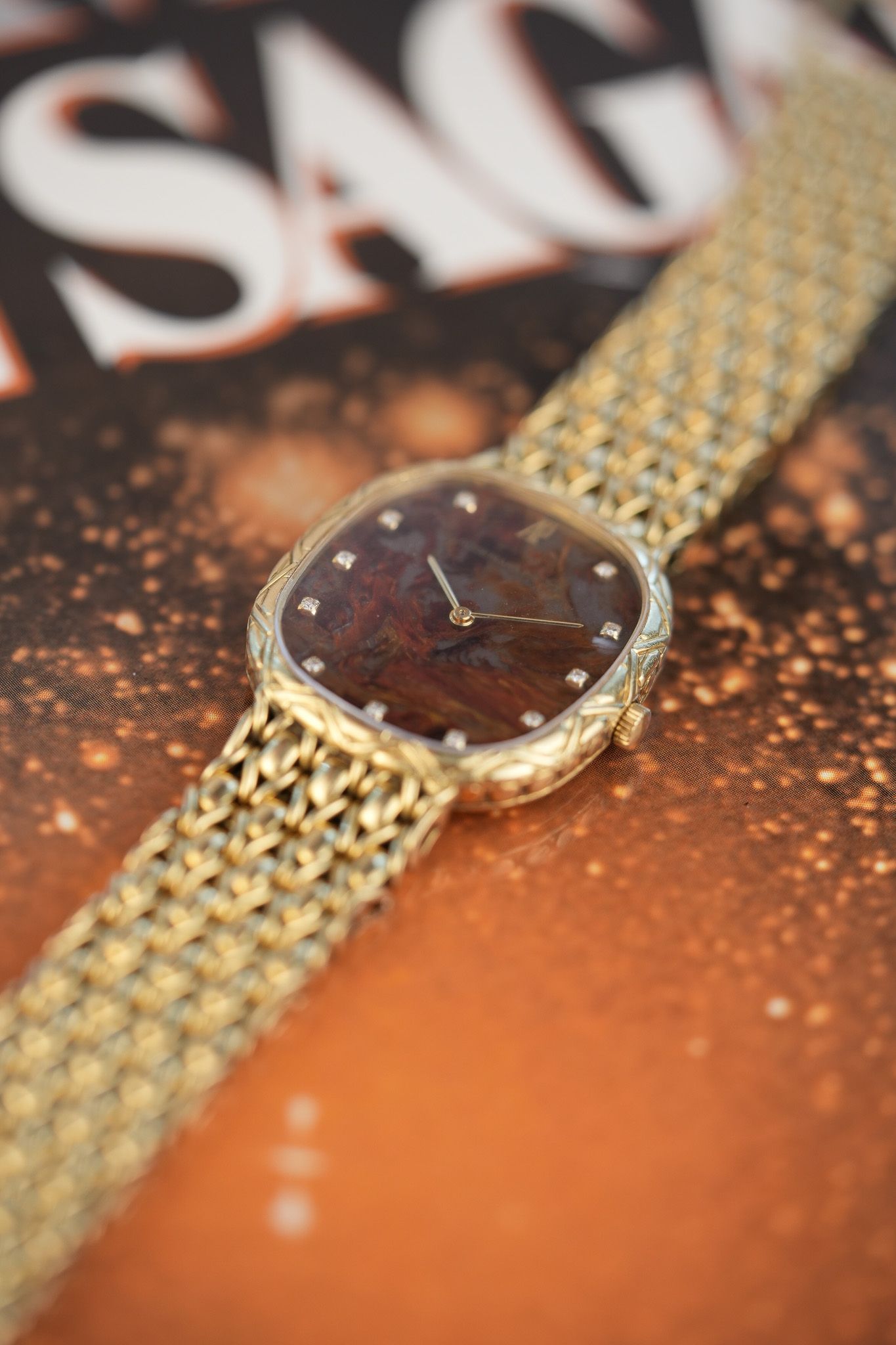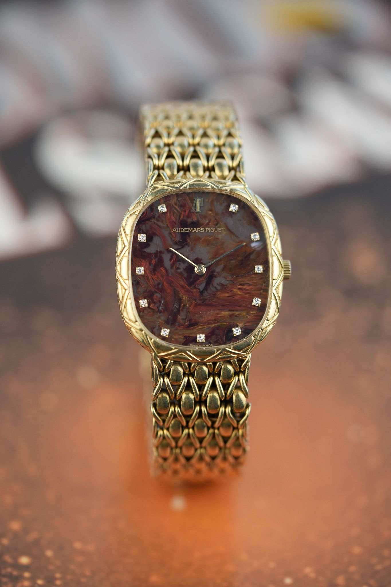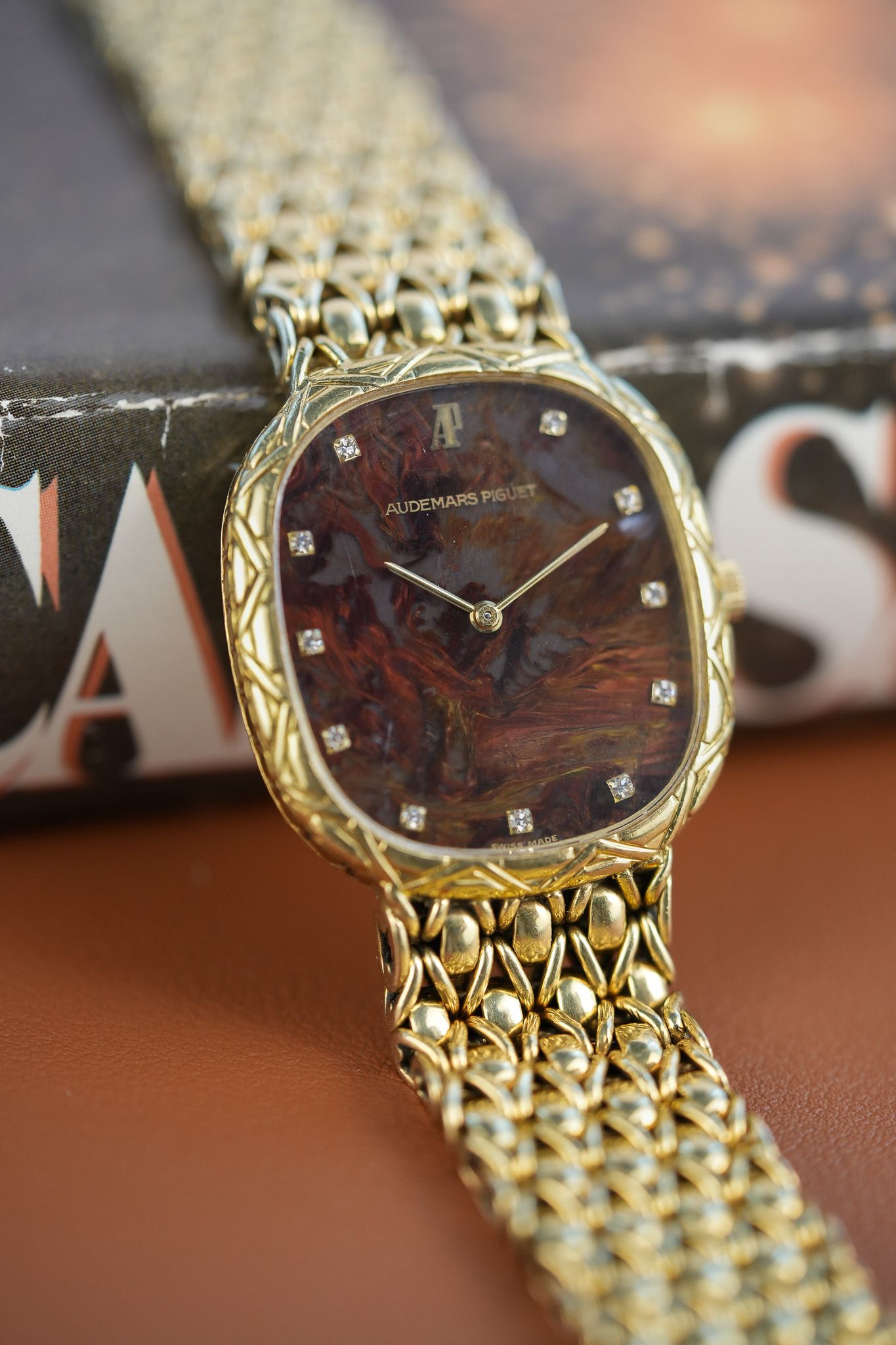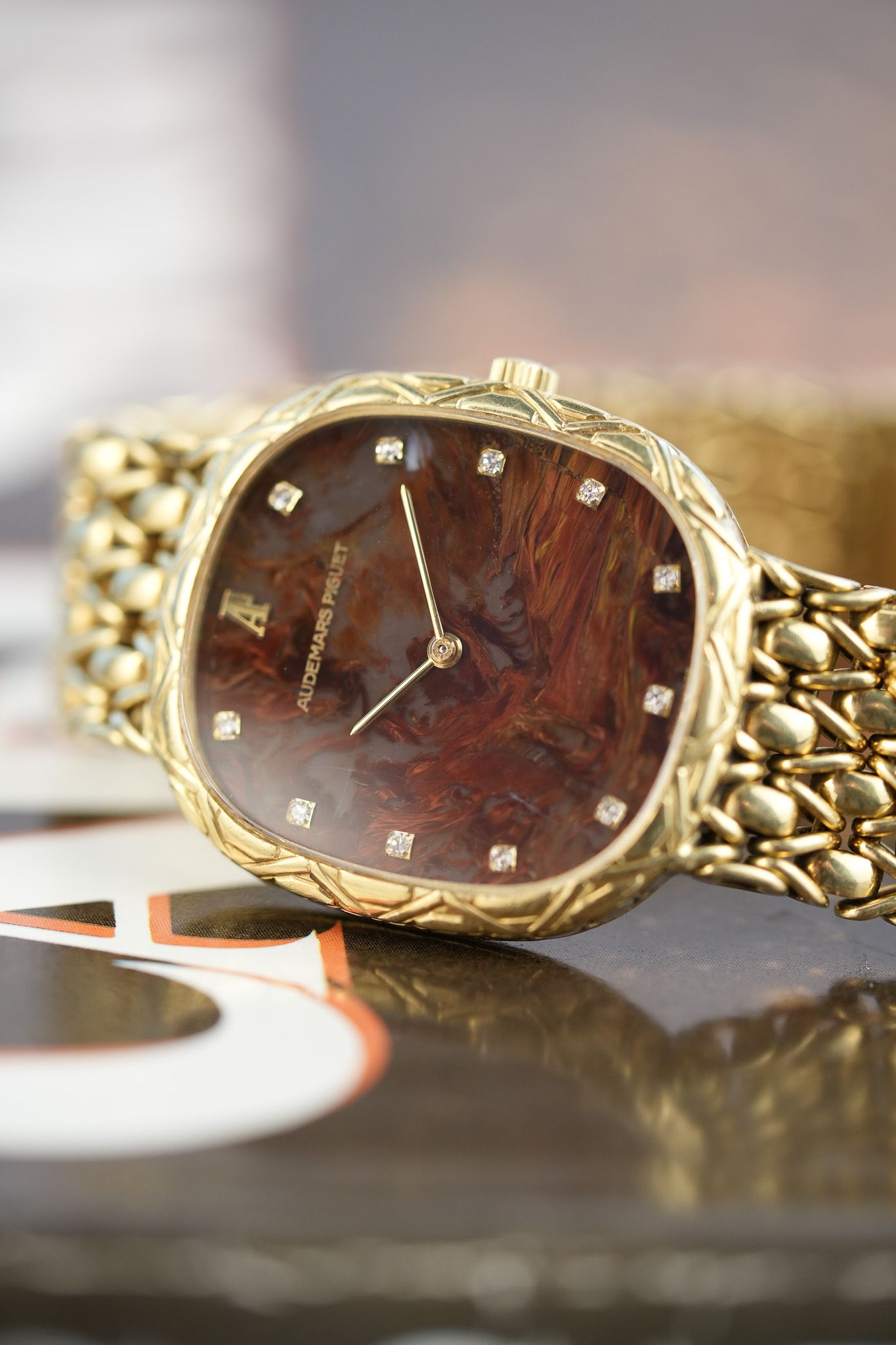 If you’re the kind of person who walks past a gallery and stops at the painting that looks like a portal to another dimension—or at least to a very dramatic Roman cathedral—you’ll want to take a closer look. This isn’t just another vintage Audemars Piguet in gold. This is AP’s Ellipse with a Pietersite dial. And unless you’re regularly lurking in the inventories of obscure collectors or spelunking through auction archives, chances are you’ve never seen one.