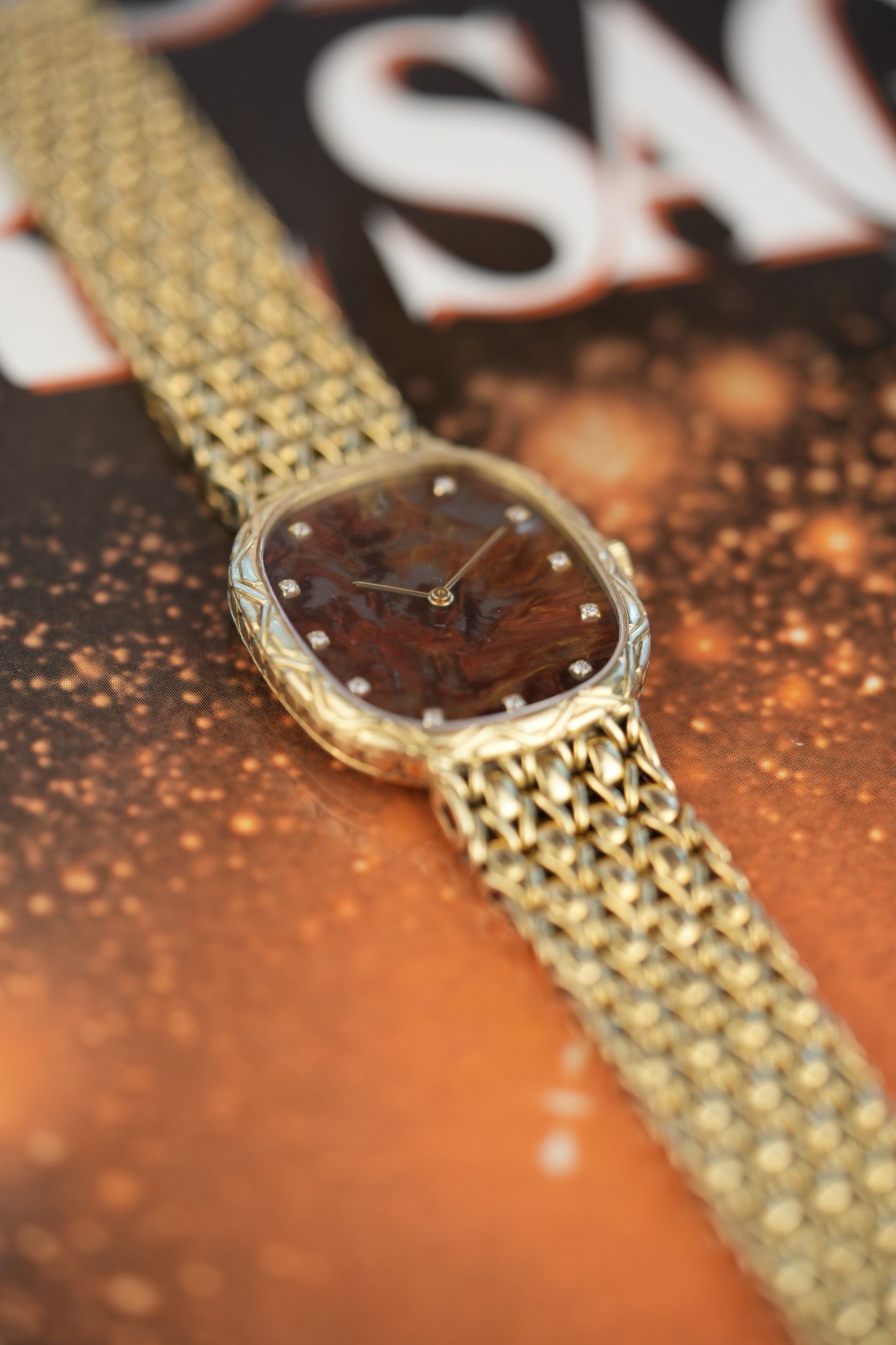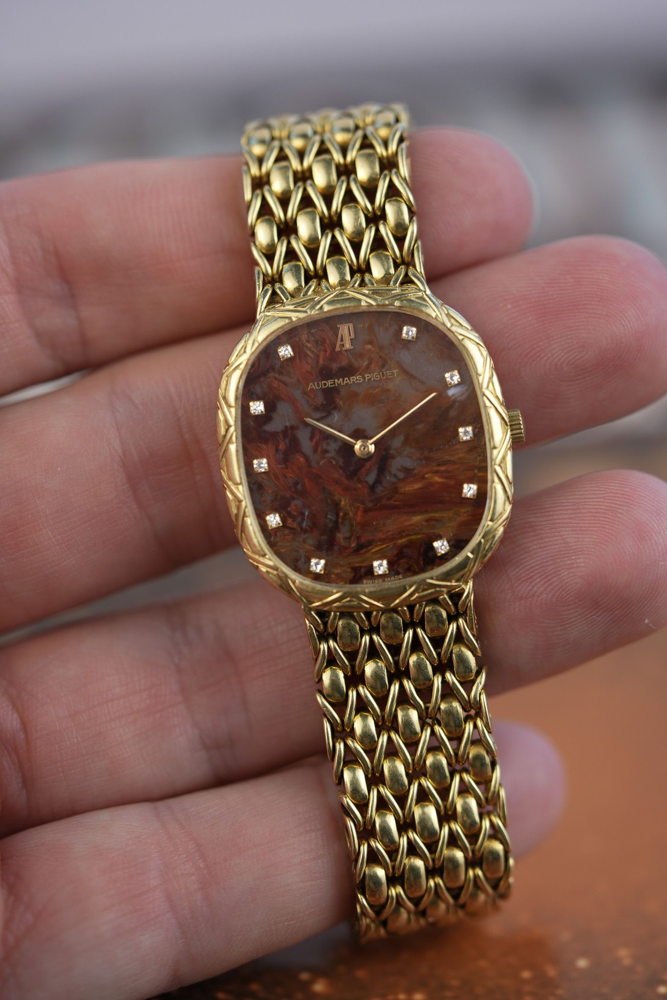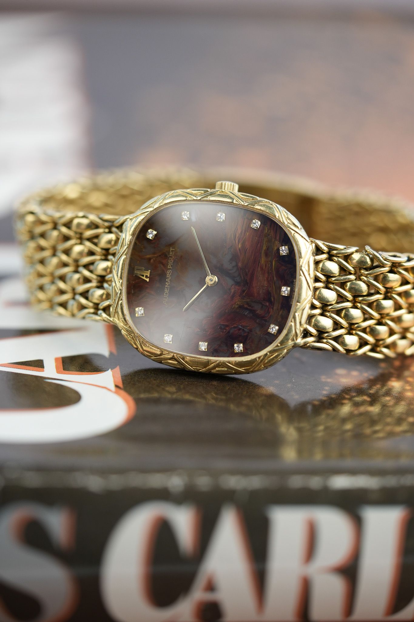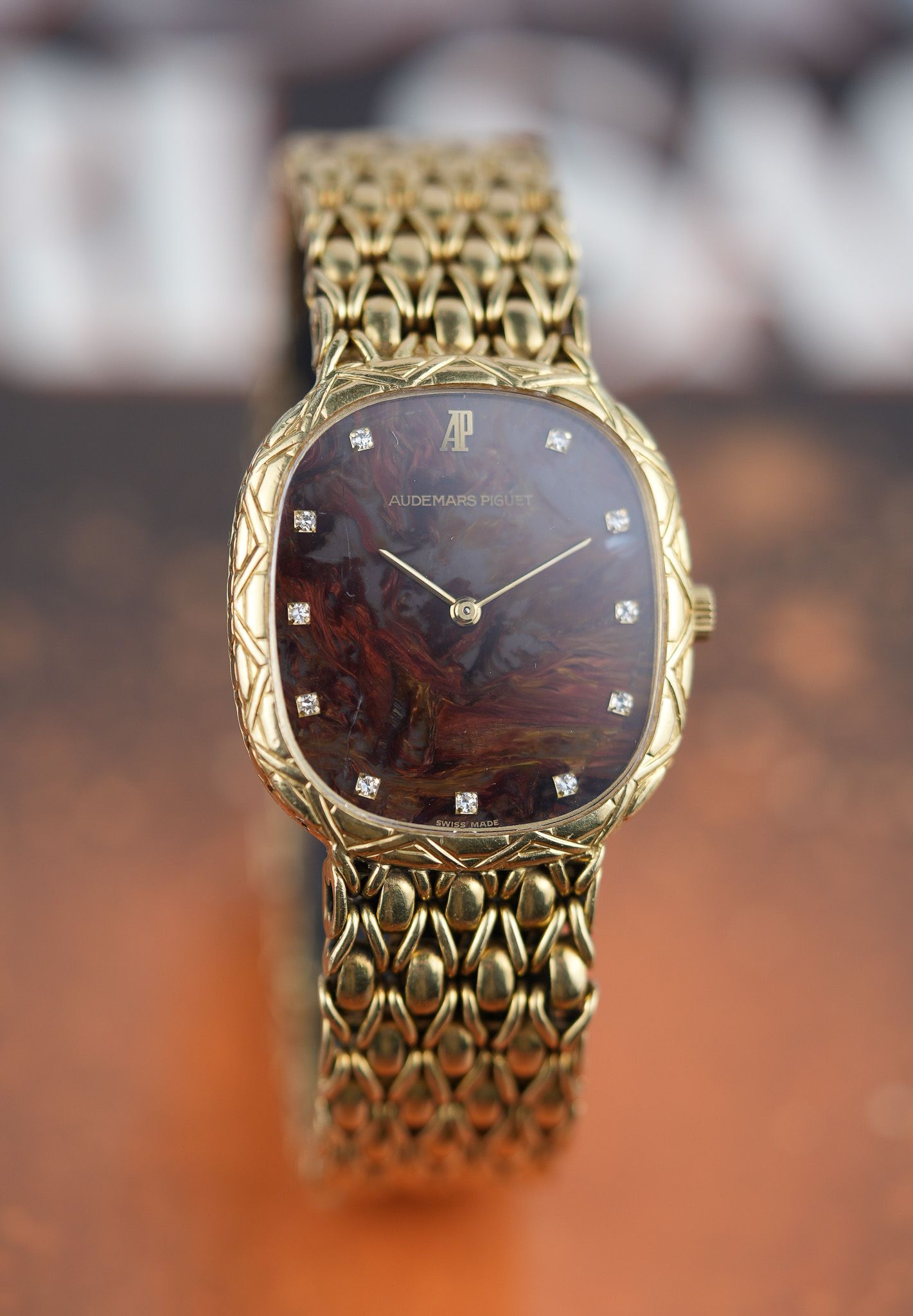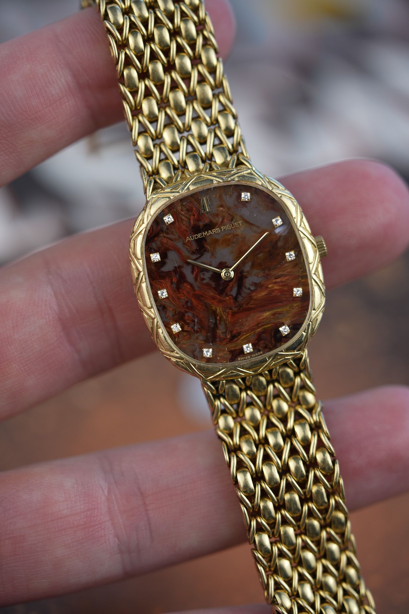 If you’re the kind of person who walks past a gallery and stops at the painting that looks like a portal to another dimension—or at least to a very dramatic Roman cathedral—you’ll want to take a closer look. This isn’t just another vintage Audemars Piguet in gold. This is AP’s Ellipse with a Pietersite dial. And unless you’re regularly lurking in the inventories of obscure collectors or spelunking through auction archives, chances are you’ve never seen one.