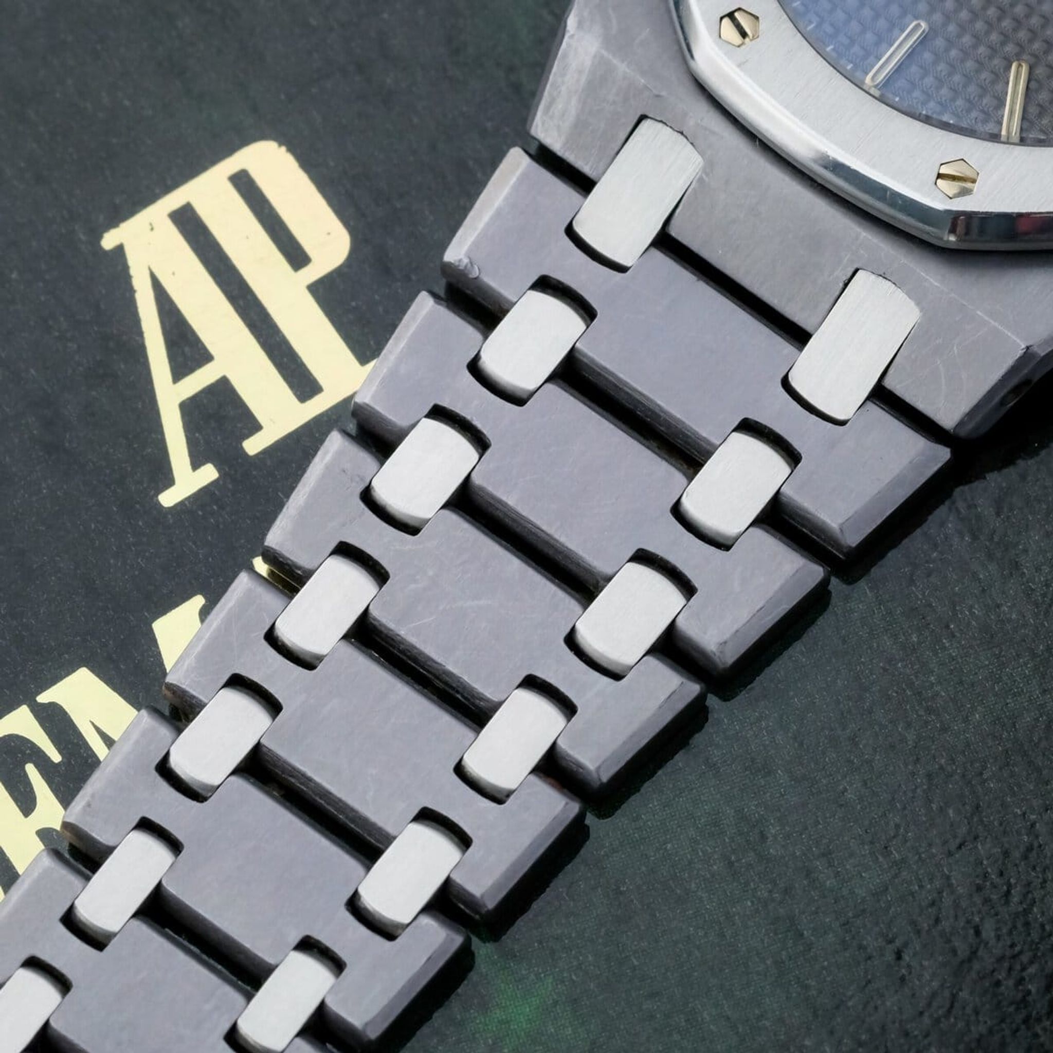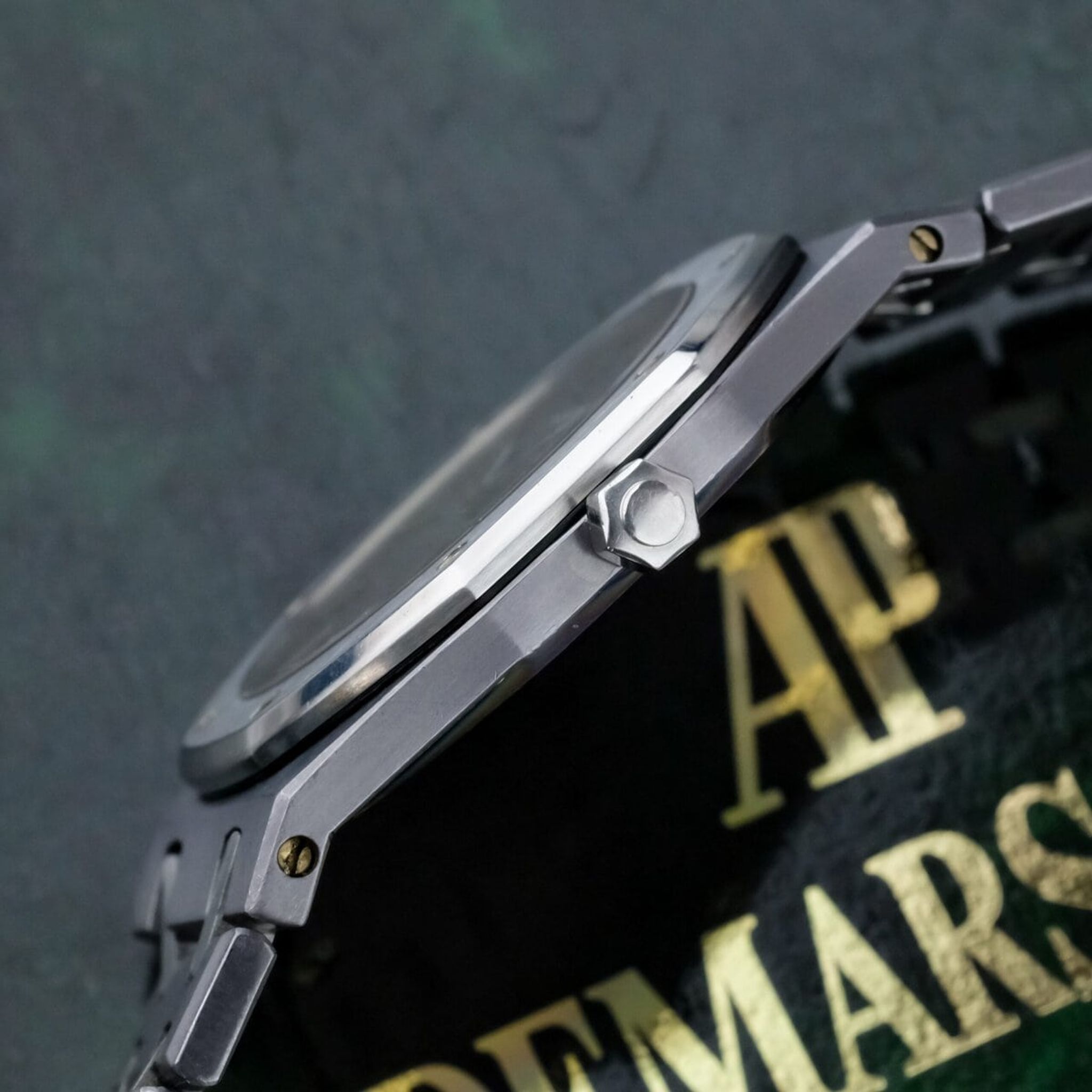 This Audemars Piguet Royal Oak reference 56175TT is a rare and distinctive version of the iconic Royal Oak, crafted in an uncommon combination of tantalum and stainless steel. Measuring 33 millimeters, the case retains the sharp geometry and refined finishing that define Gérald Genta’s legendary design, while offering a balanced and elegant wrist presence.