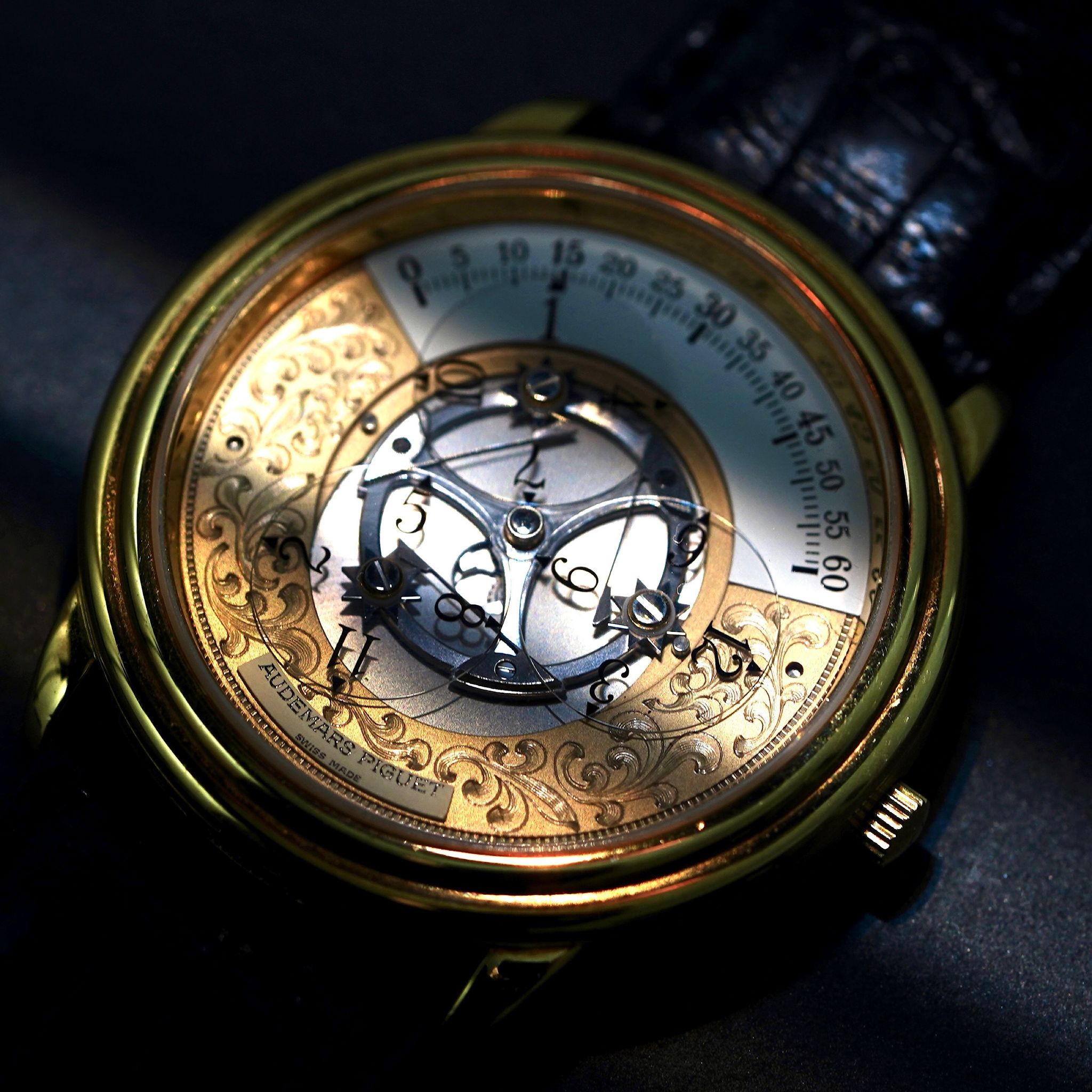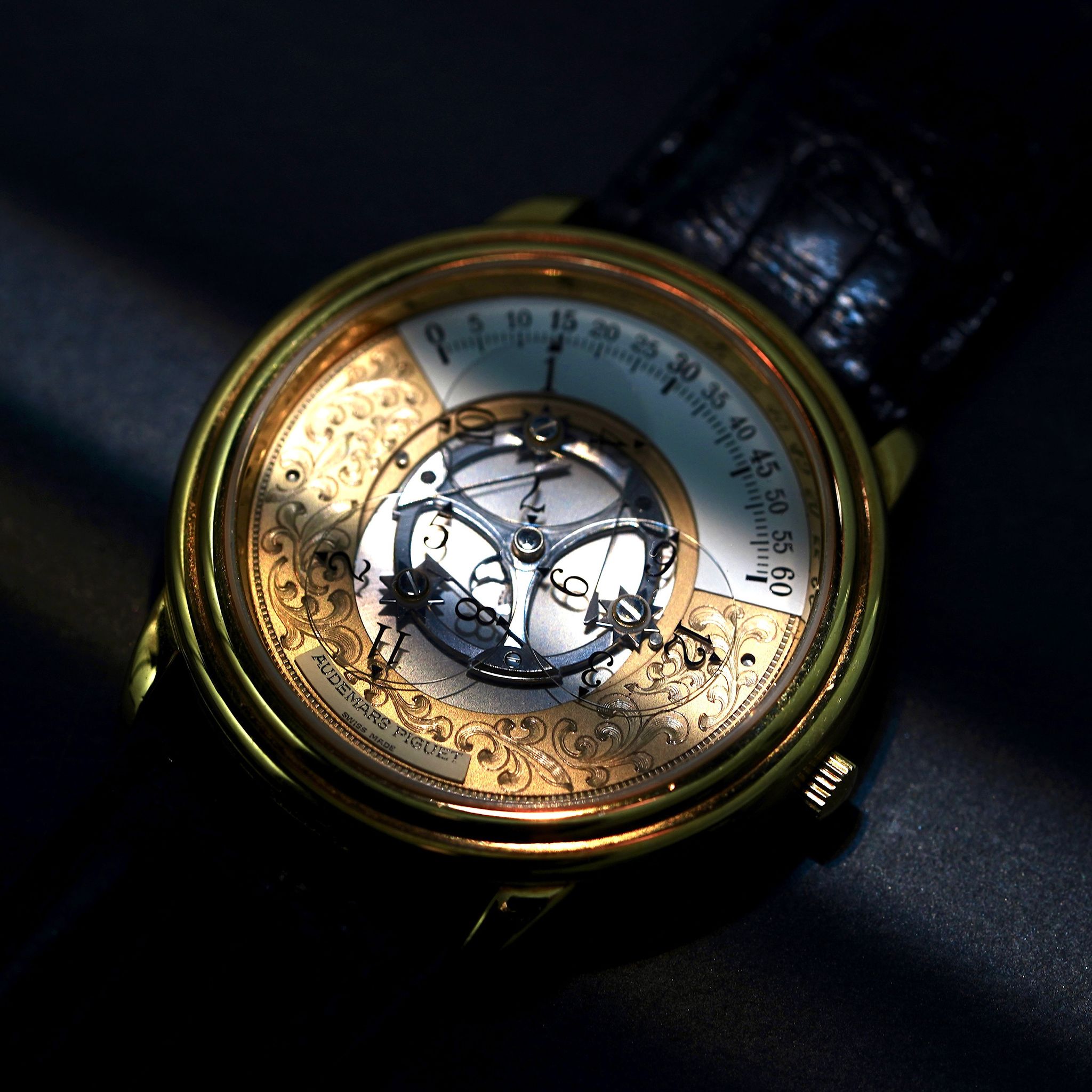 FEATURES: 18k Gold, Original AP leather strap, Original AP buckle, 36mm stepped case