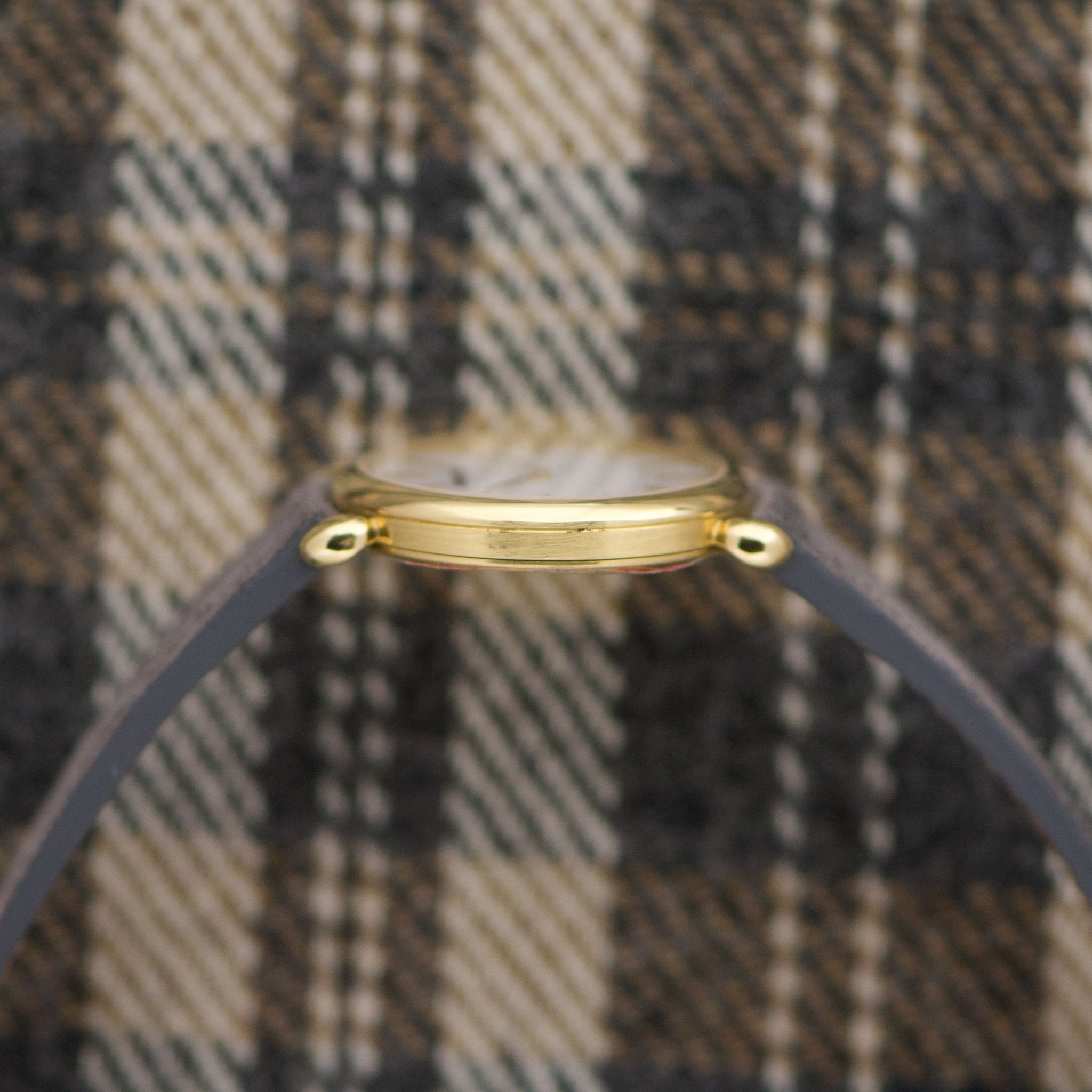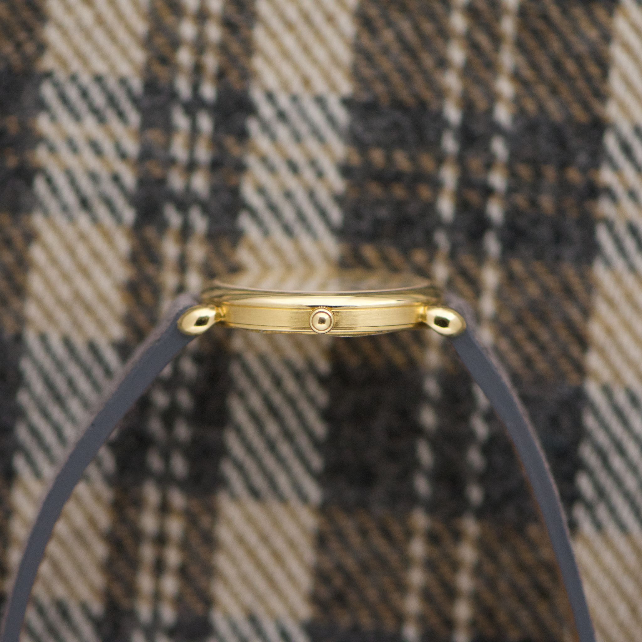 Strap & Buckle: The watch is paired with our own Italian Suede strap and gold tone buckle.