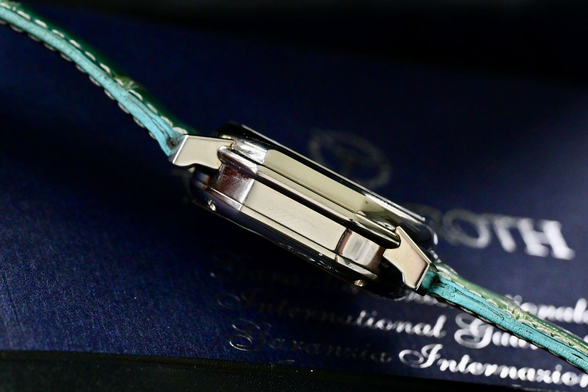A stunning Daniel Roth Automatic Chronograph with rare mother of pearl dial, complete with box and papers! This watch is in excellent all original condition and features a midsize stainless steal case measuring 32x37mm. The dial is incredible with applied Breguet numerals and Mother of Pearl. The movement is a DR101 automatic chronograph which is nicely finished and can be viewed through its sapphire crystal display back. The watch is accompanied by a Daniel Roth strap, original buckle, boxes and booklets.