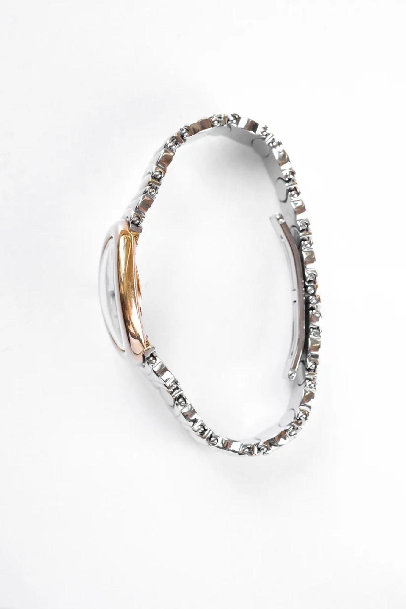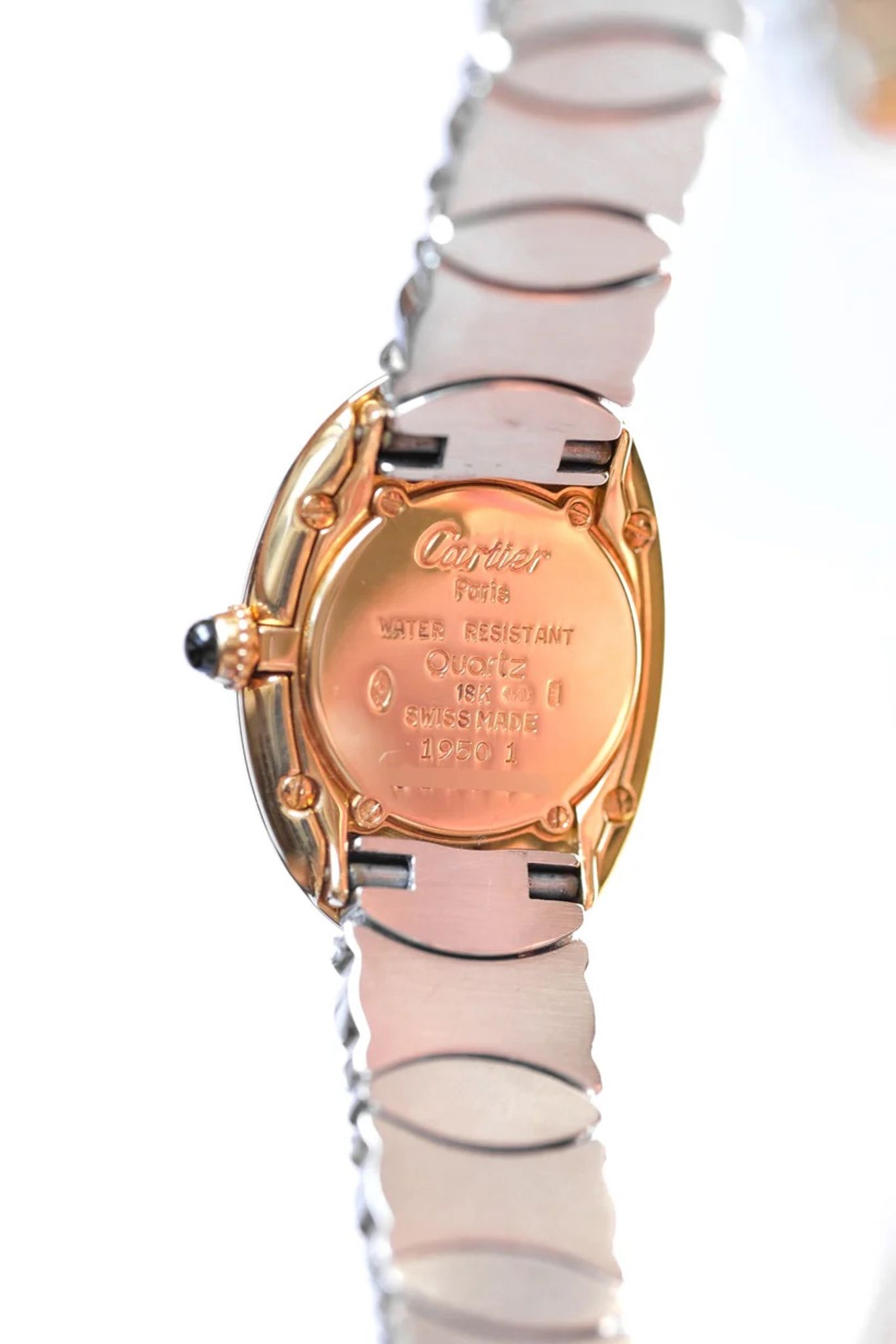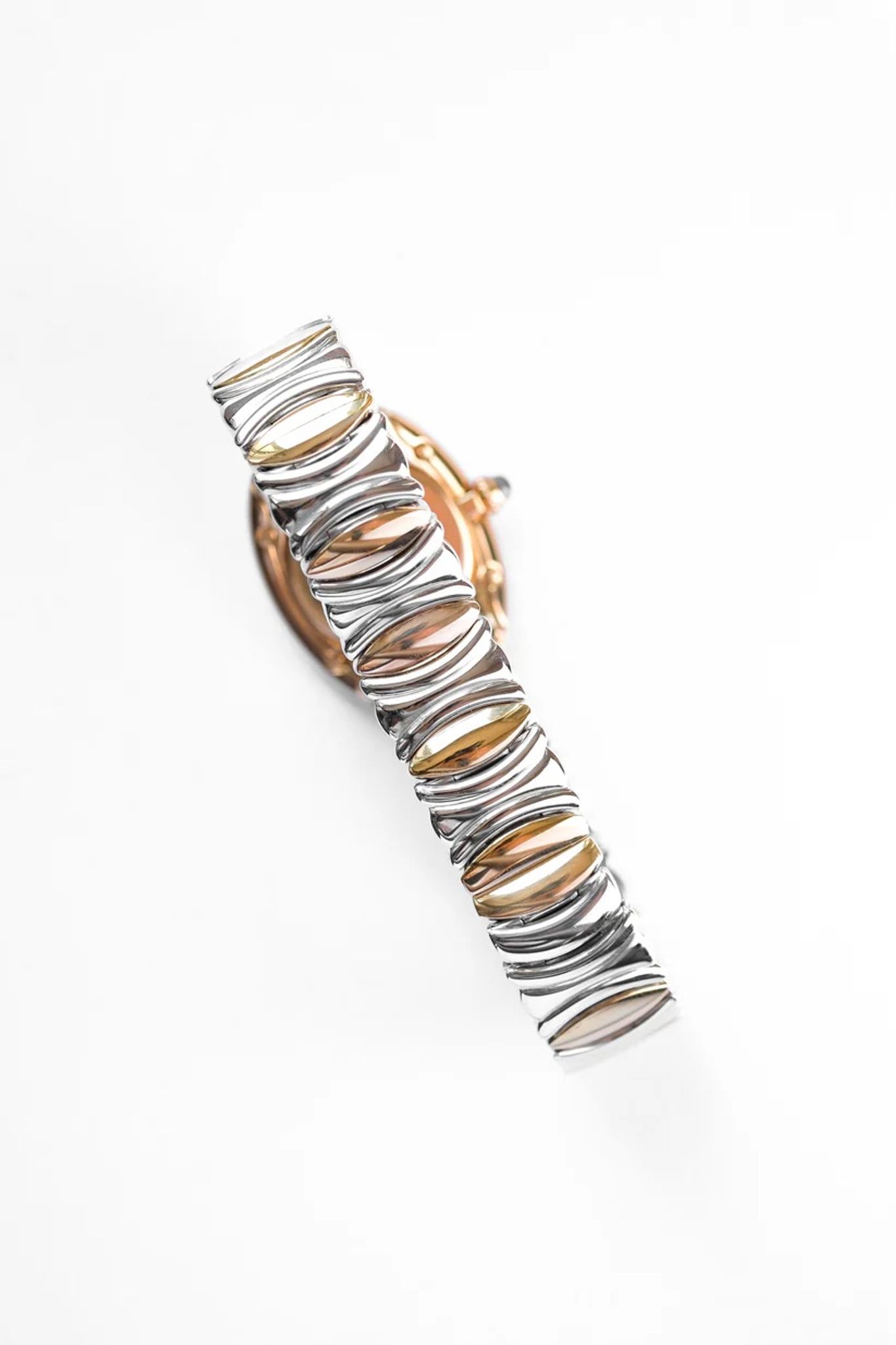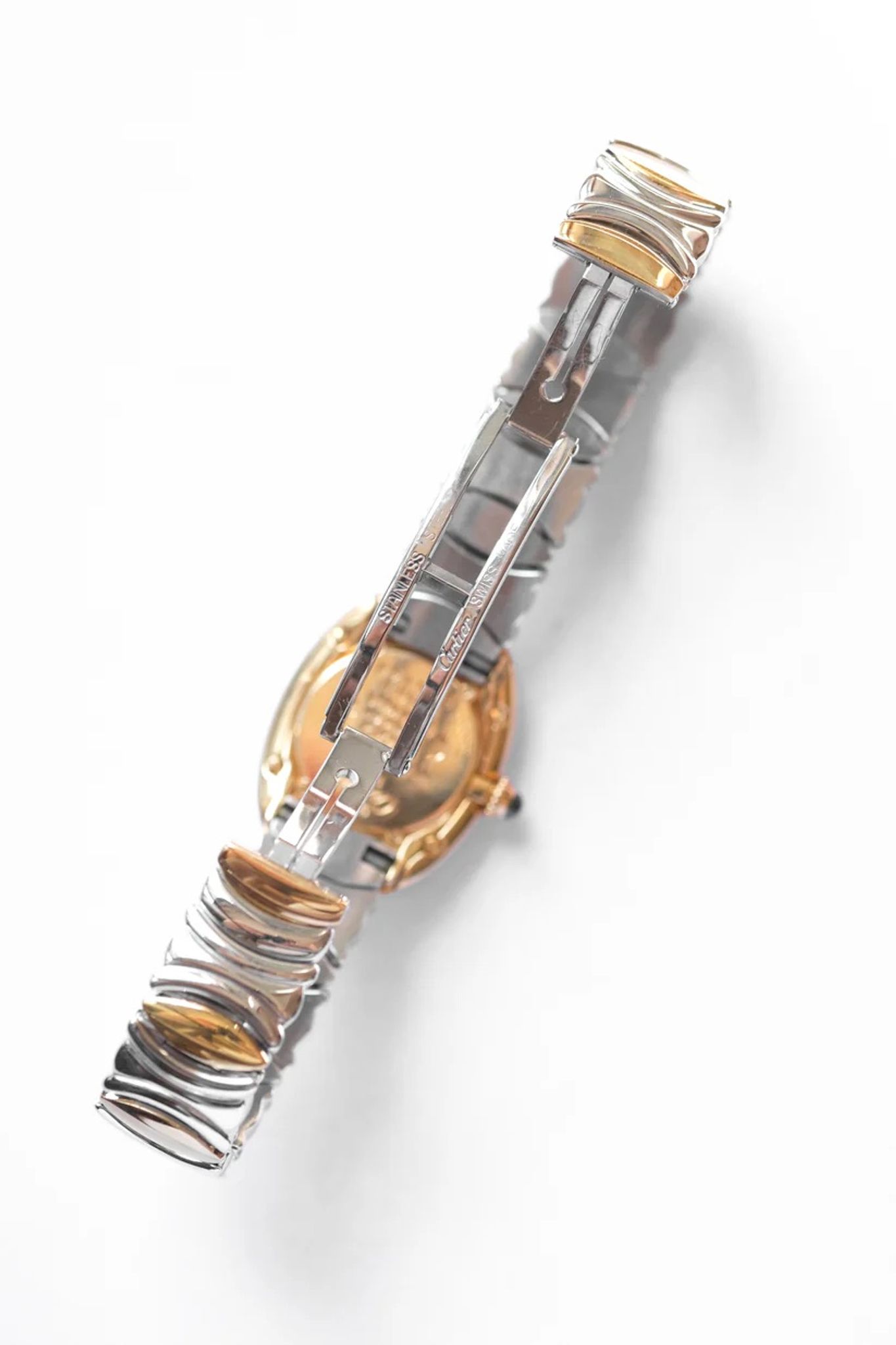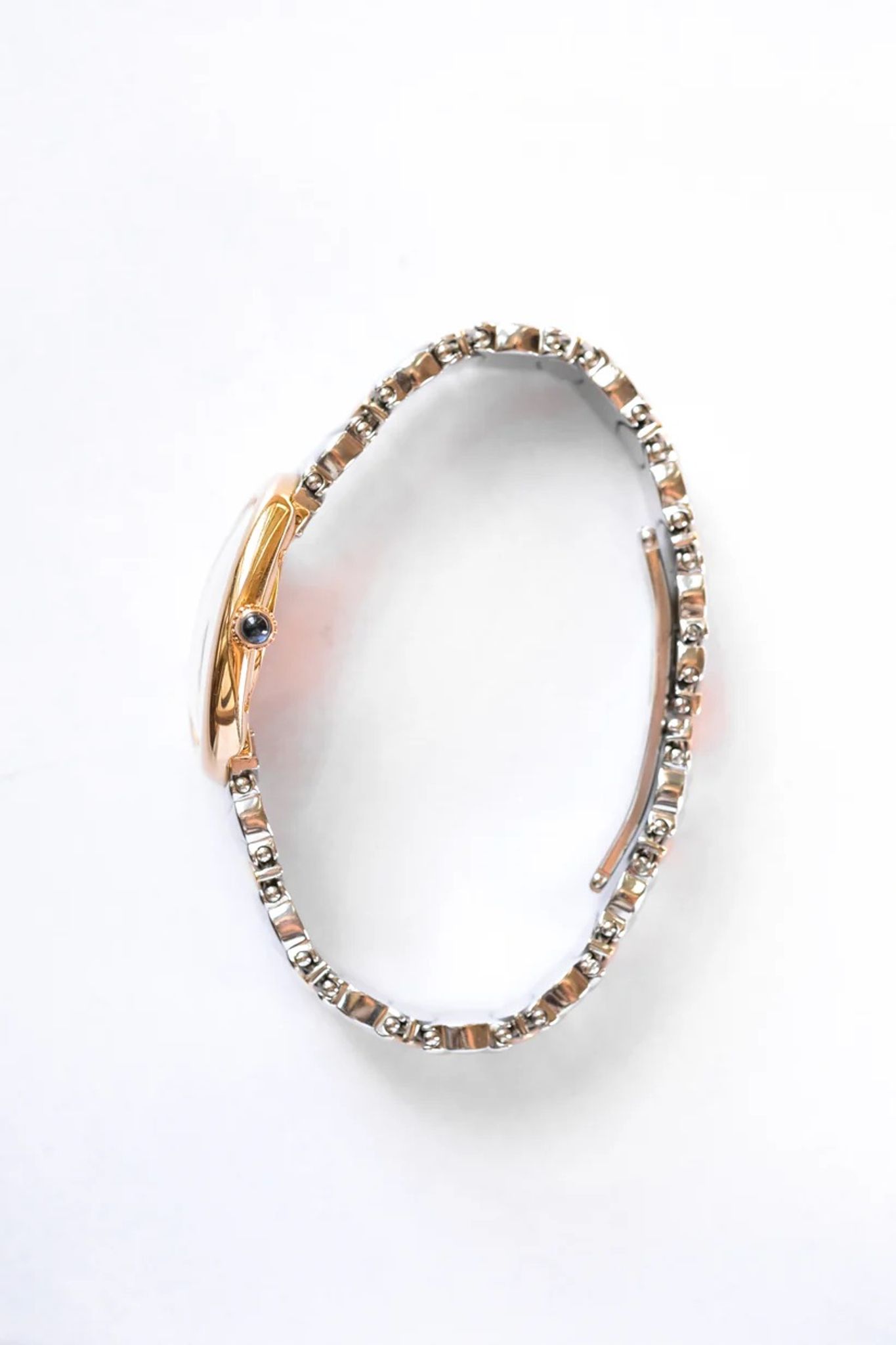 What makes this model so rare is its integrated “Casque d'or” bracelet. Its curves are reminiscent of those of the case and give movement to the watch. Even more: a bracelet not all gold but in yellow gold and steel. A bold contrast but a winning bet. The Cartier Baignoire thus takes on a more sporty appearance compared to the all-gold version or the leather strap version. Another design as original as it is beautiful from Cartier! The alternation of slightly different links demonstrates high quality drawing and goldsmith work!