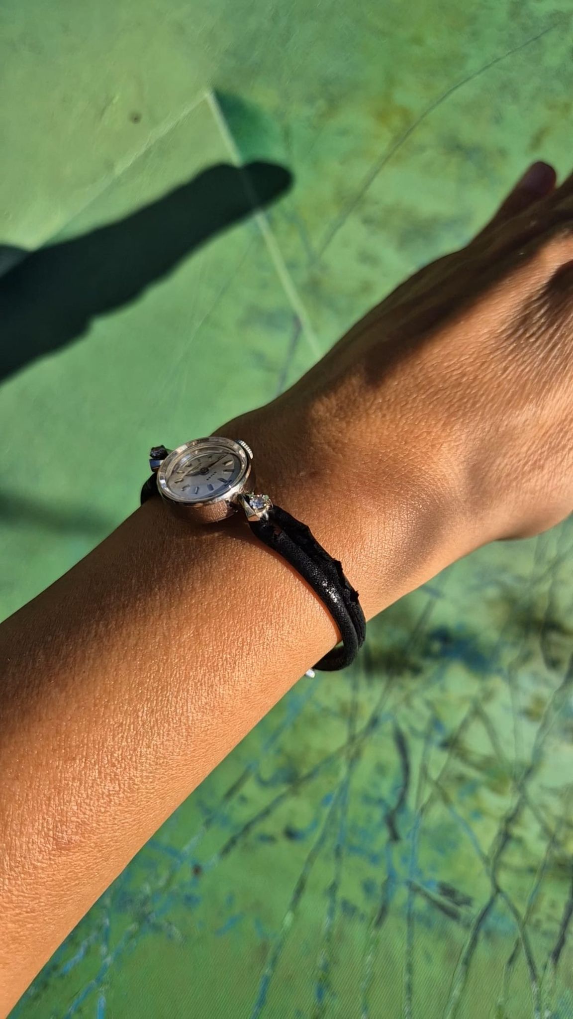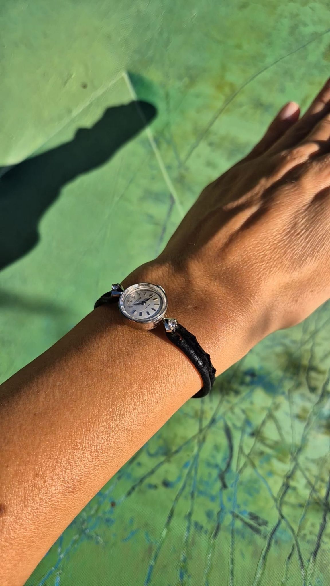 WHY WE LOVE IT? It was produced 1957 (approx) in Schaffhausen, Switzerland and sold in Zurich, Bahnhofstrasse by Beyer. It is clear and feminine with some sparkling accents: diamonds & crystal-facets.