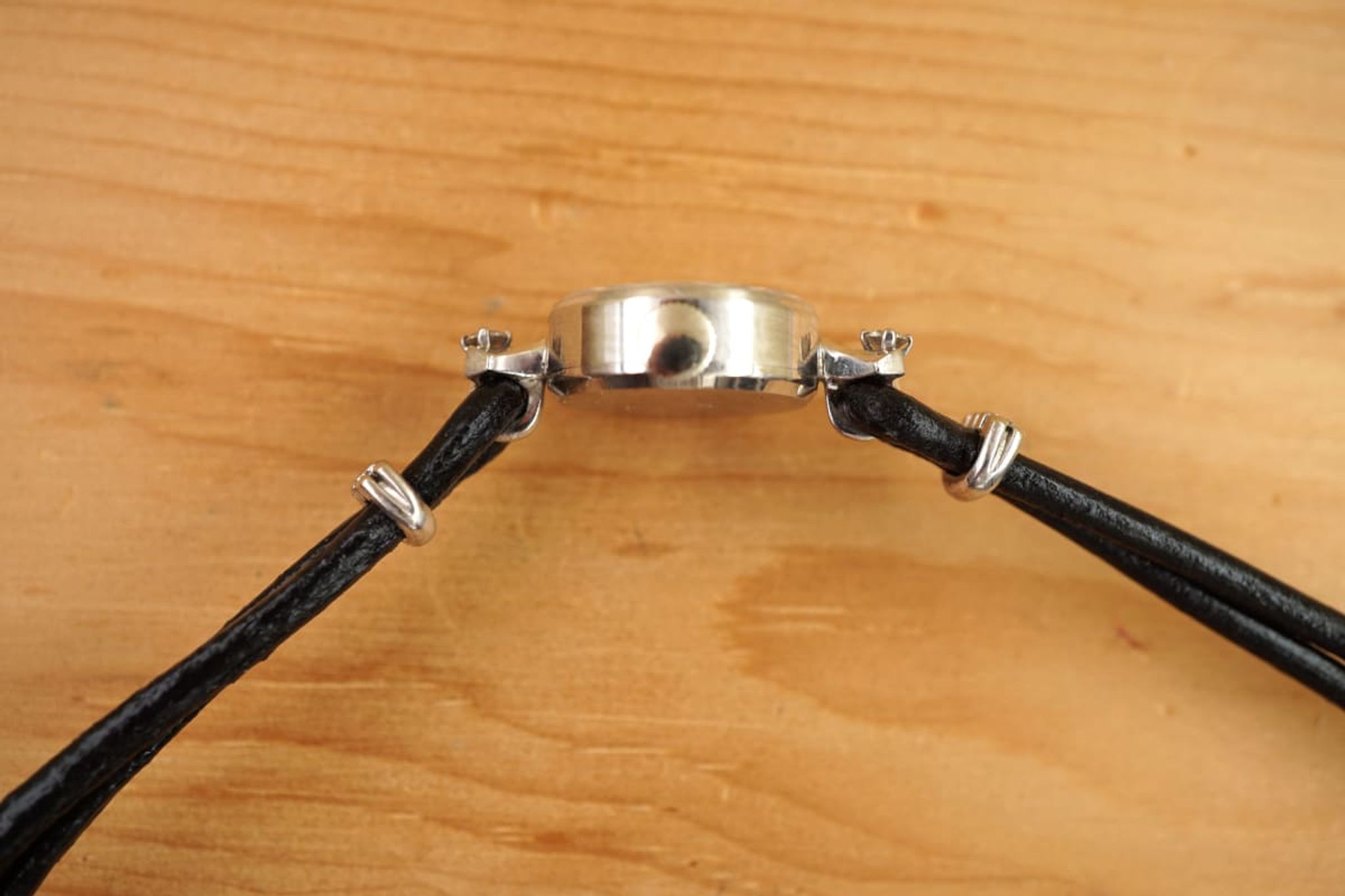 The probably new leather strap currently fits a 195mm and could be fitted to the new owner easily.