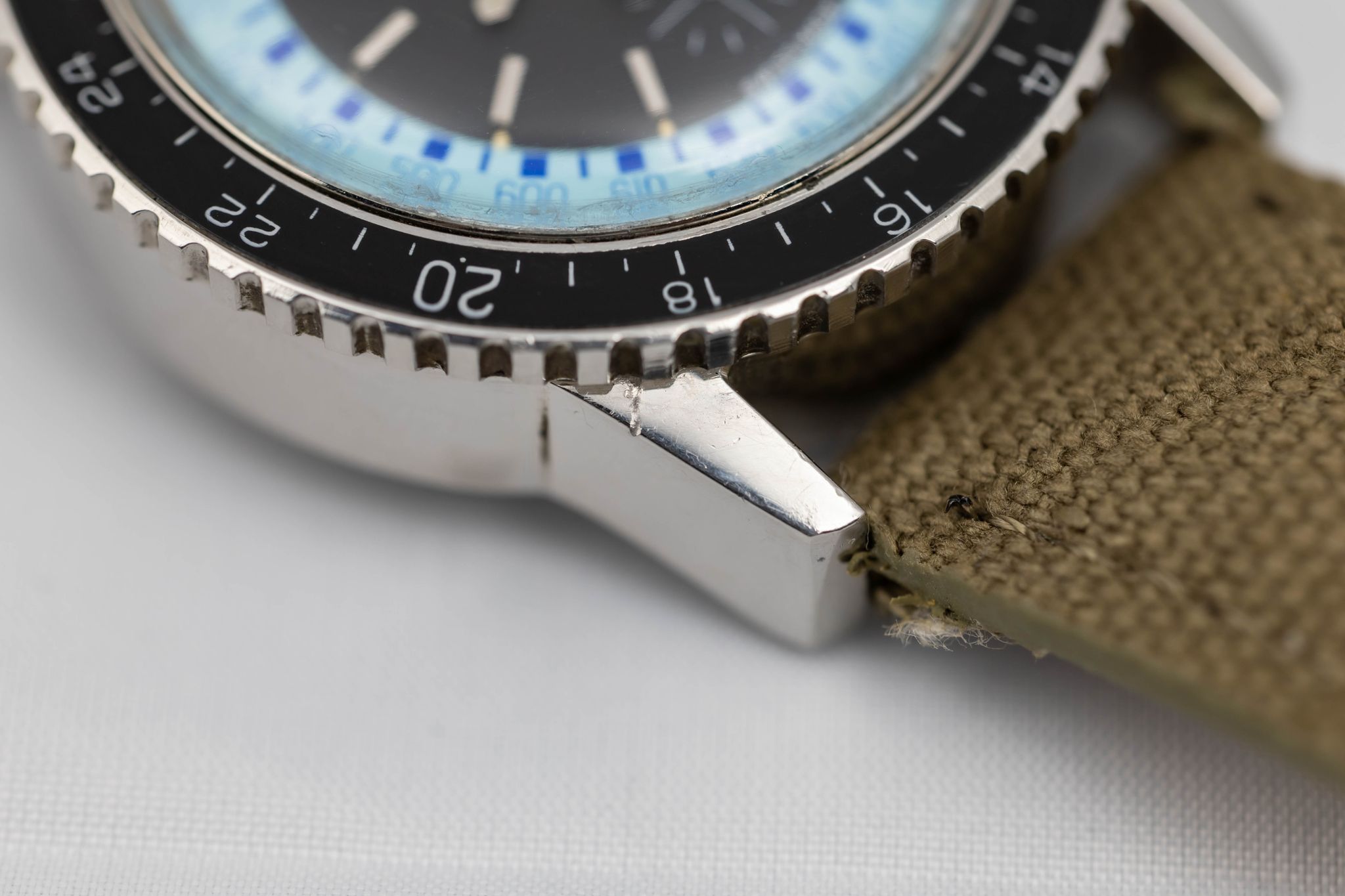 Beyond its technical prowess, this Favre Leuba Bivouac stands out for its impeccable condition, a testament to its careful preservation over the years. The dial remains pristine, retaining its original integrity, indicative of minimal usage. The unpolished case, characterized by sharp lines and edges, bears clear engraving detailing its purpose as an altimeter and barometer, alongside the reference number 53223. With its captivating black-and-blue dial and functional complications, this last iteration of the first series Favre Leuba Bivouac exudes a timeless charm that transcends generations.