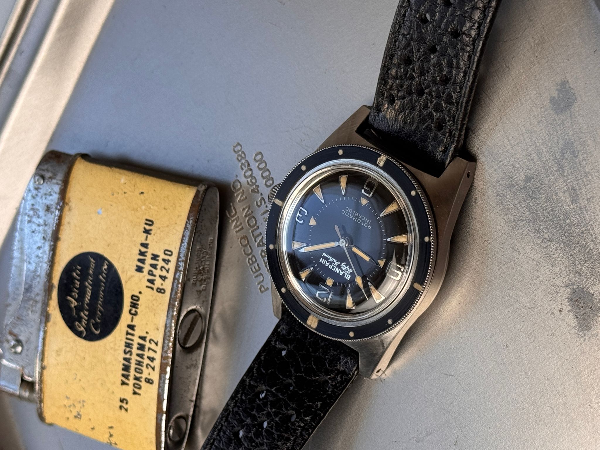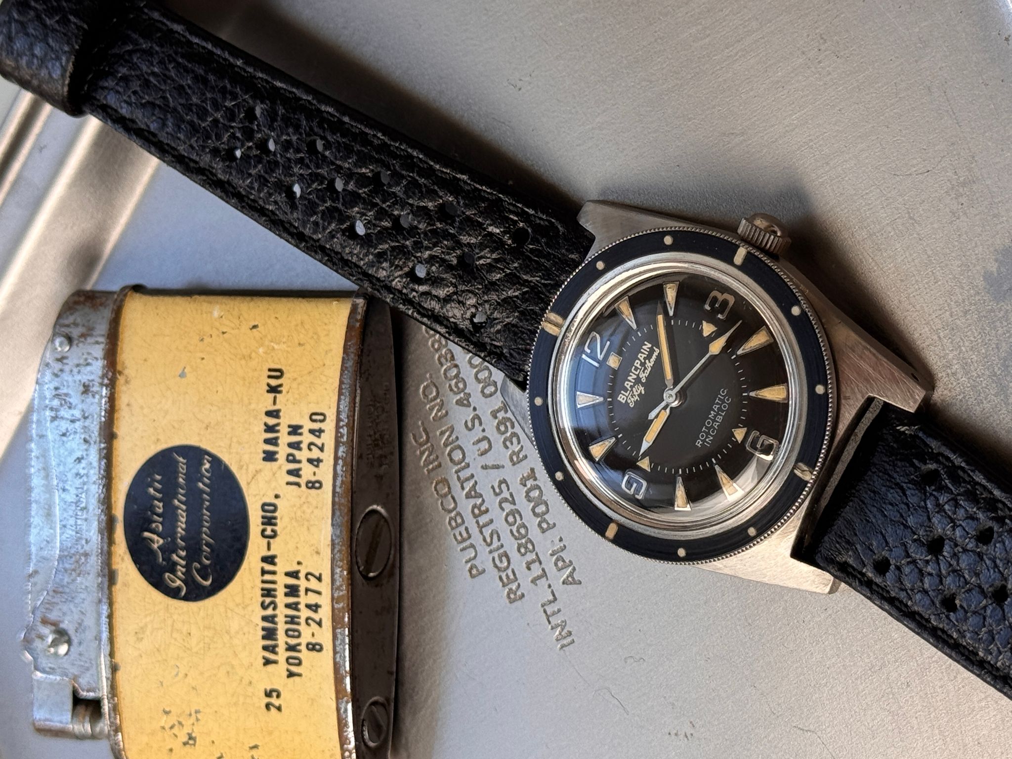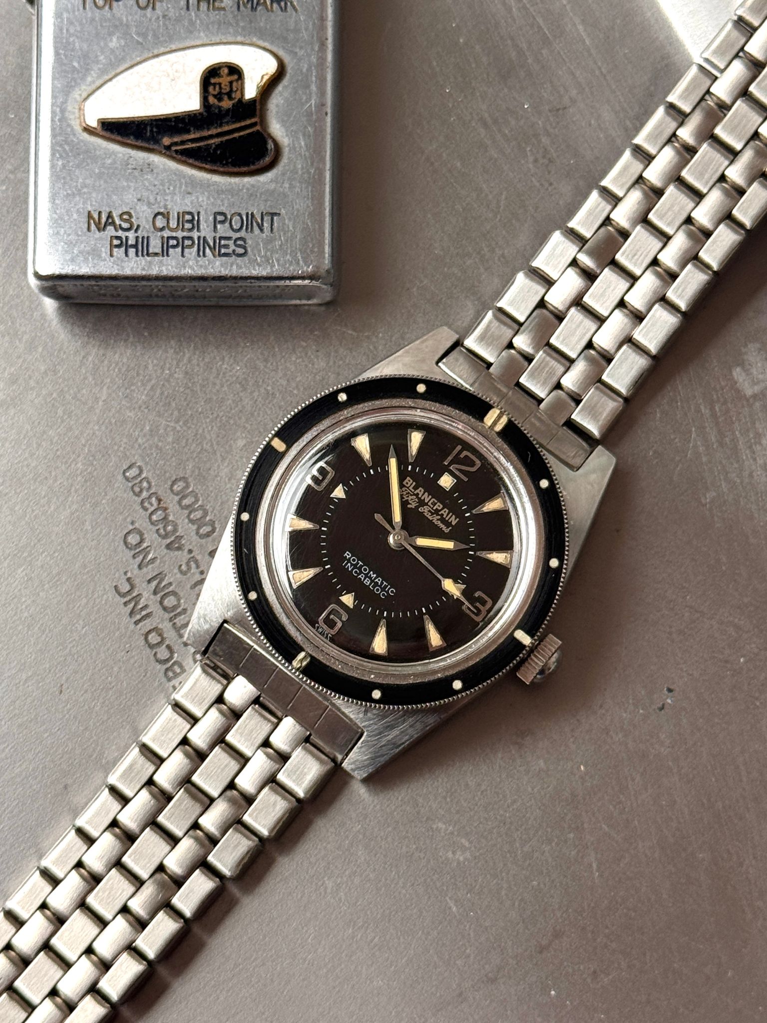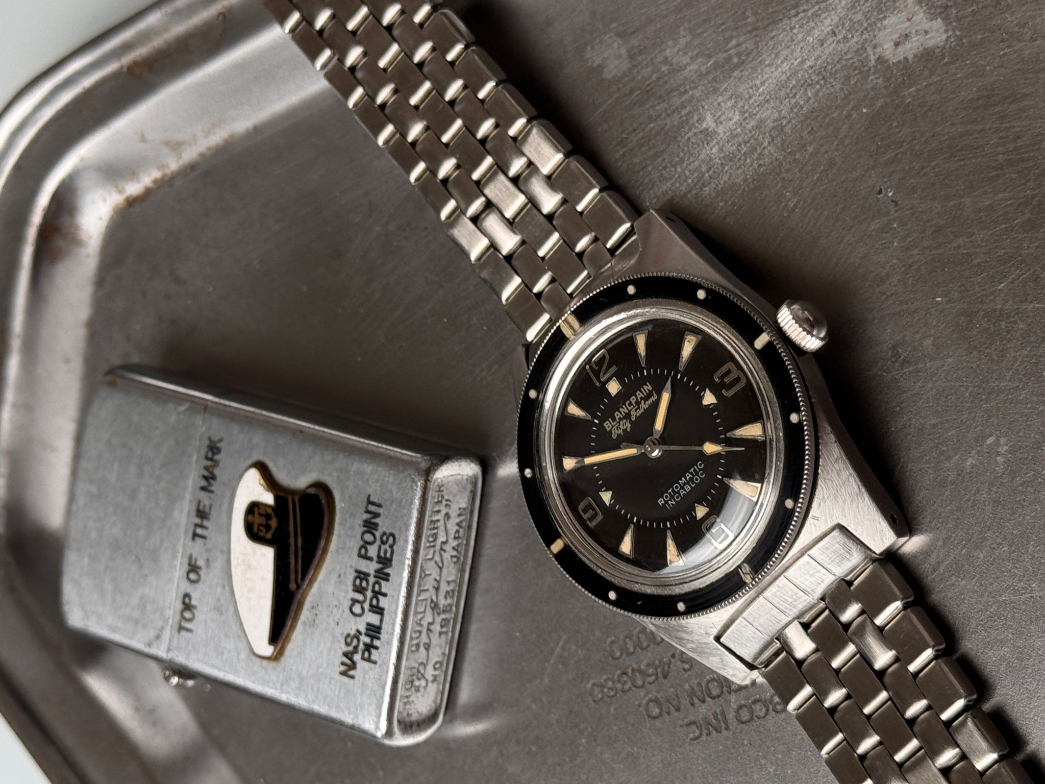 The Fifty Fathoms is a legend. And this one is an affordable grail. The condition is second to none. A dressy museum grade Blancpain Fifty Fathoms. Sharp and unmolested like the very first days.