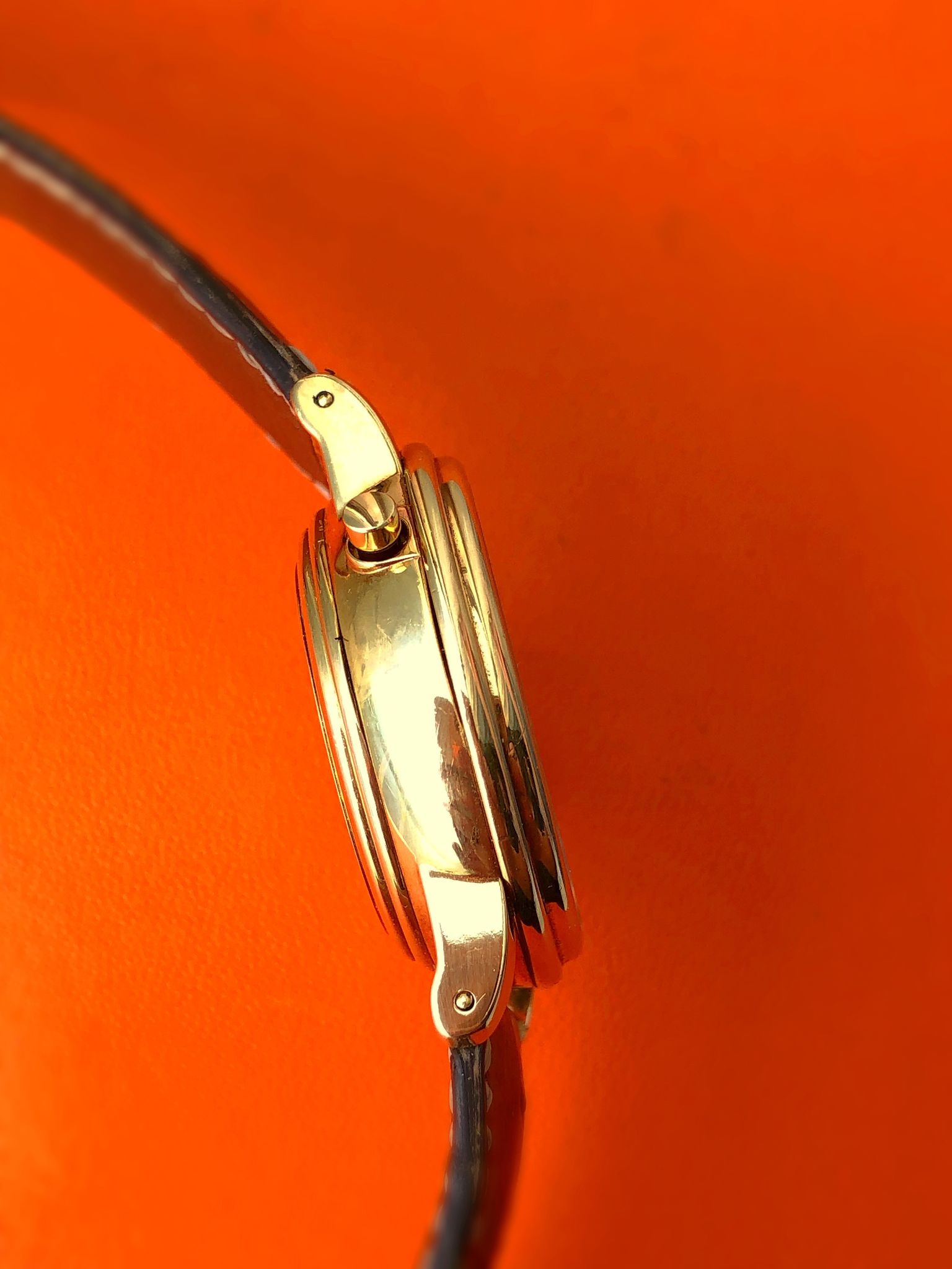 The Ref.1186 Rattrapante offered here is encased in classical 34mm yellow-gold, but wears a bit larger than it states thanks to the lug design and case design.