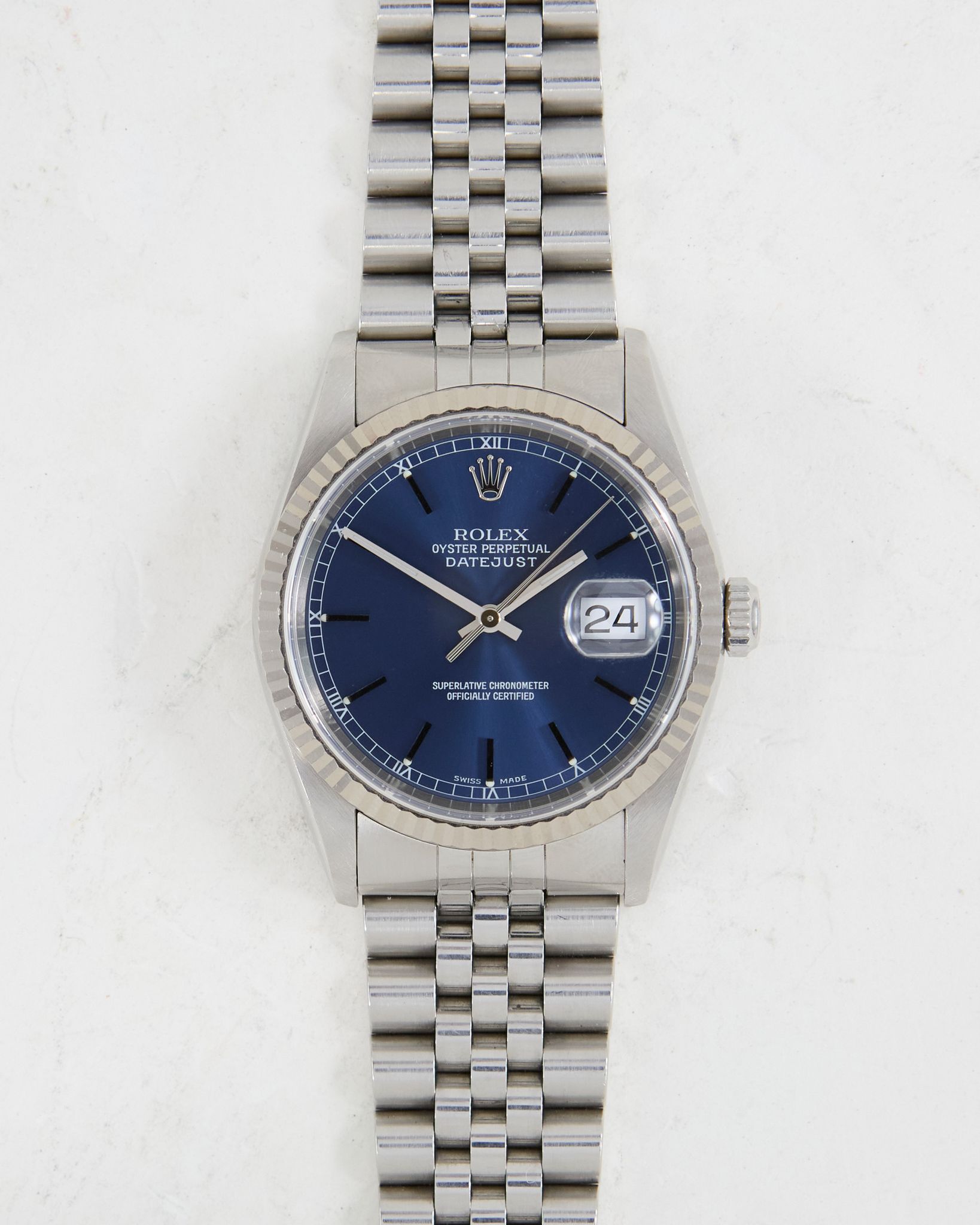 Rolex - Blue Dial No Holes Rolex Datejust 16234 in Steel on Jubilee Bracelet
