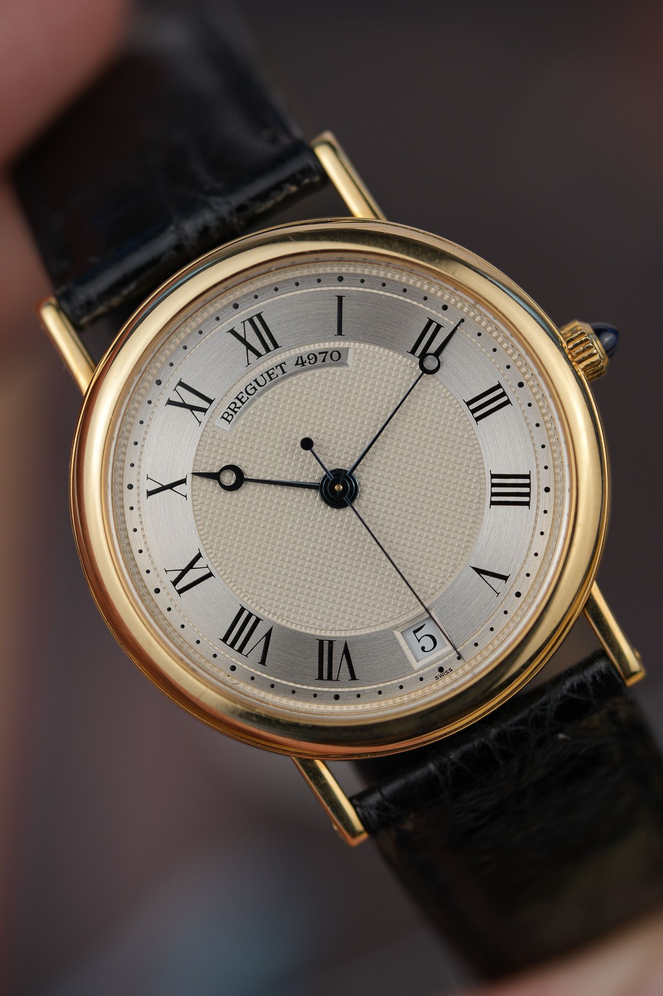 The movement underneath is the automatic Caliber 889/1, a refined workhorse with slim dimensions and thoughtful finishing, much in line with the rest of Breguet’s discreet engineering at the time.