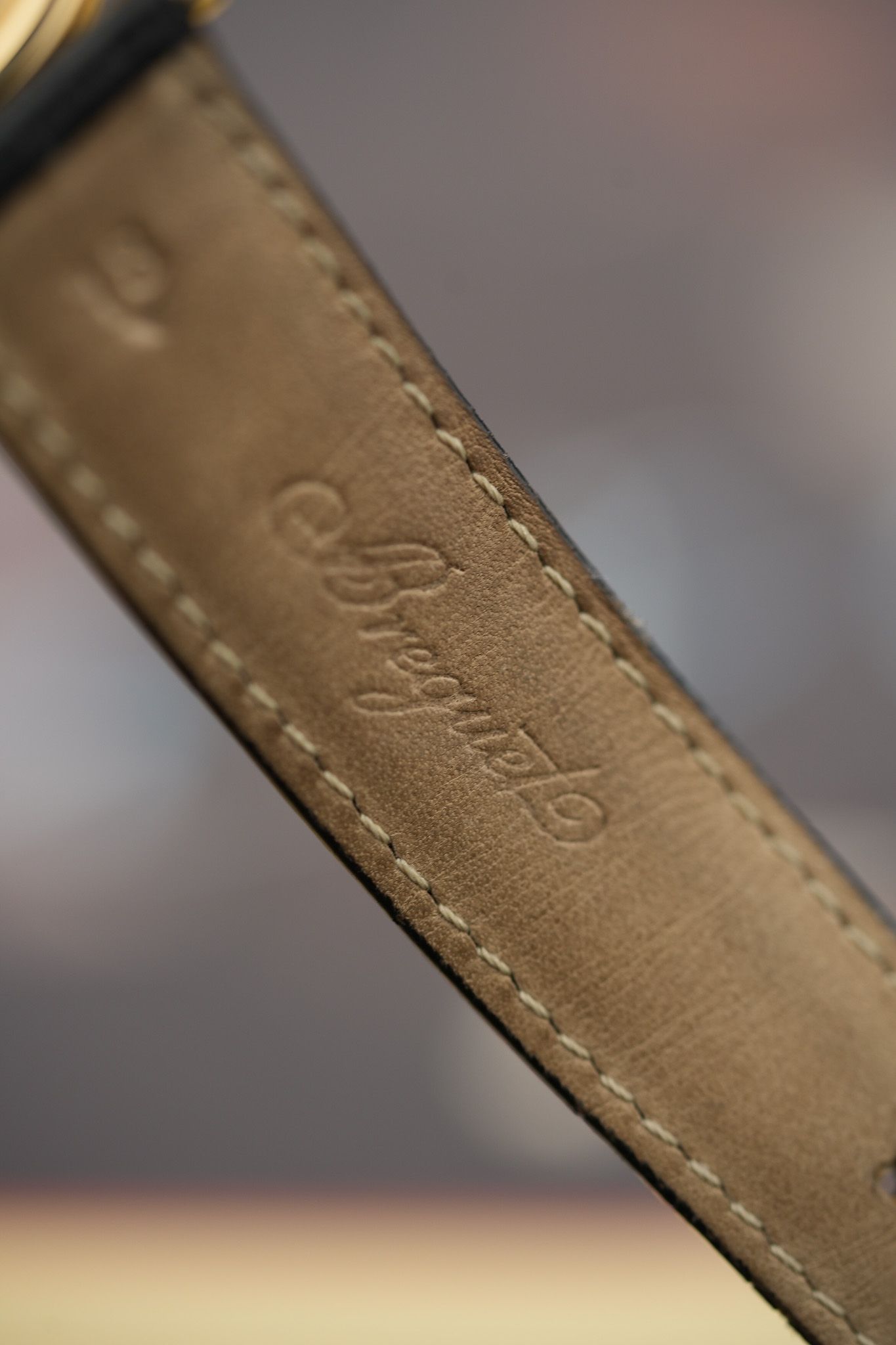 Attached to the case is the original Breguet leather strap, secured by proper screws instead of spring bars, and finished with an 18k yellow gold Breguet-signed buckle. No shortcuts here either.