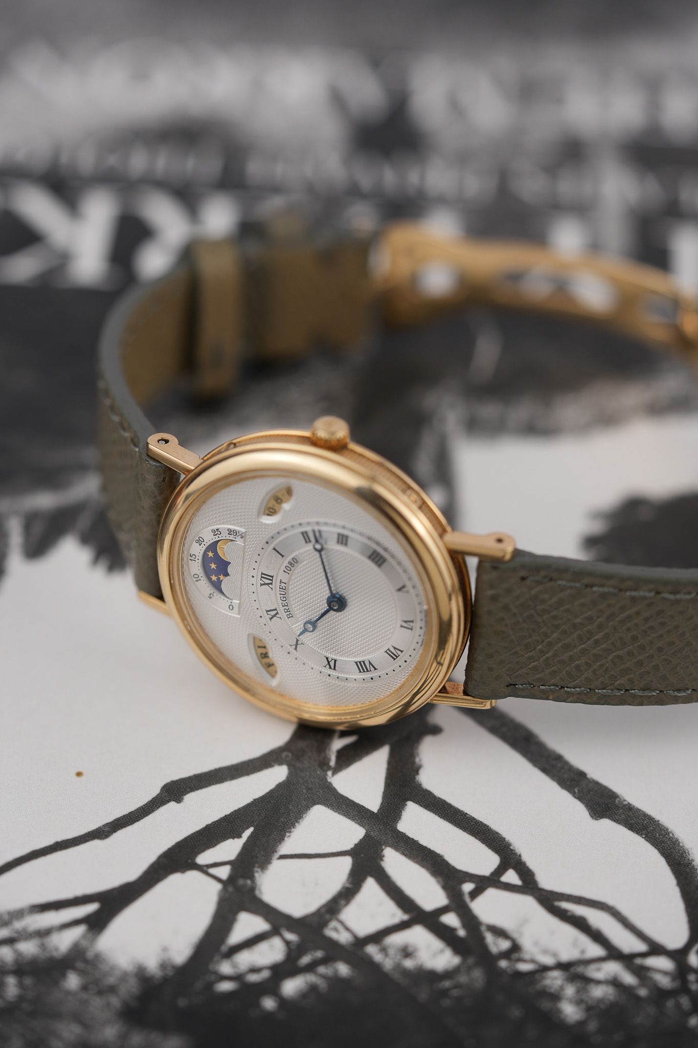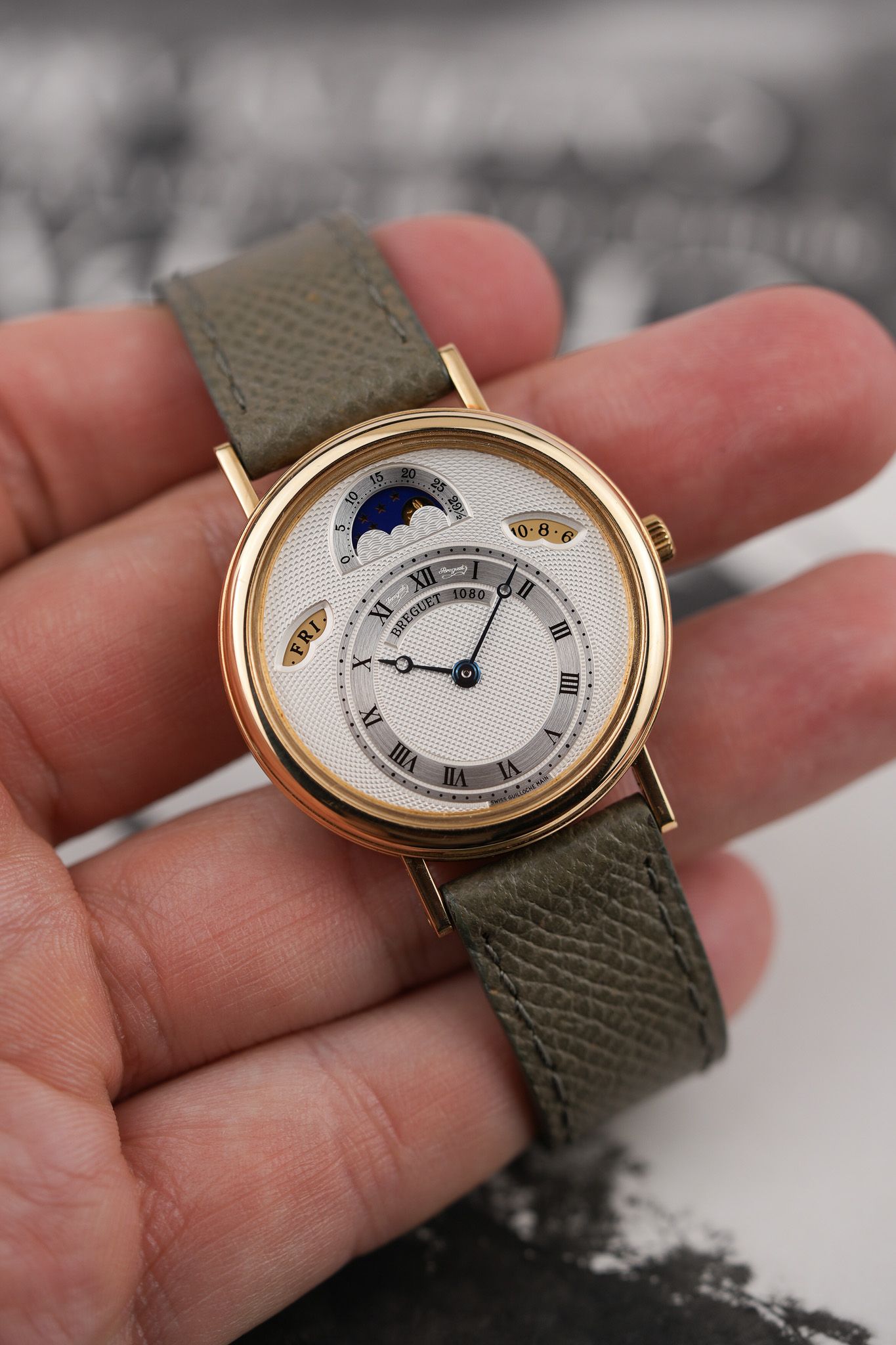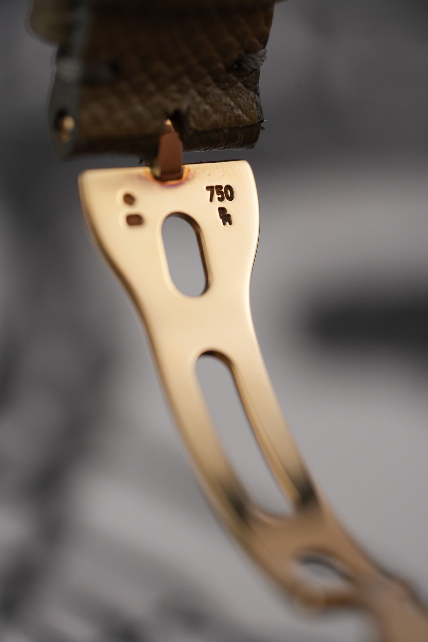 We’ve paired it with a textured grey leather strap to give it a modern edge without robbing it of its formal dignity. If you're more of a purist, the original black Breguet alligator strap comes with it. Your call—either way, the original solid gold deployant buckle with its discreet ‘B’ insignia tags along for the ride. Hidden when closed, adjustable, elegant. Just like the rest of the watch.