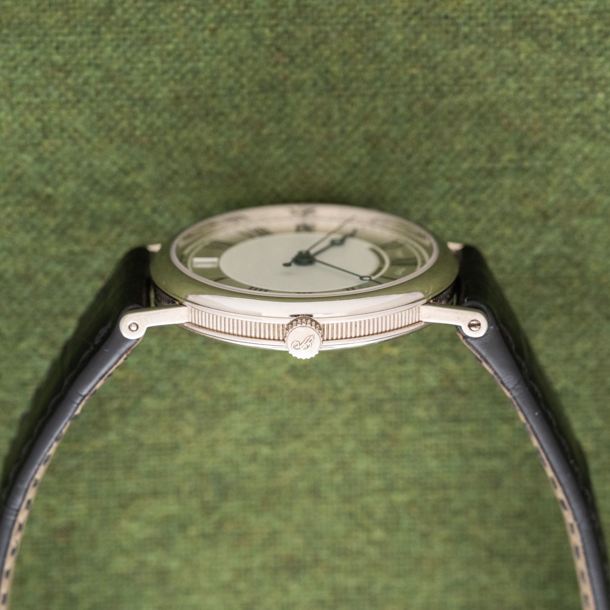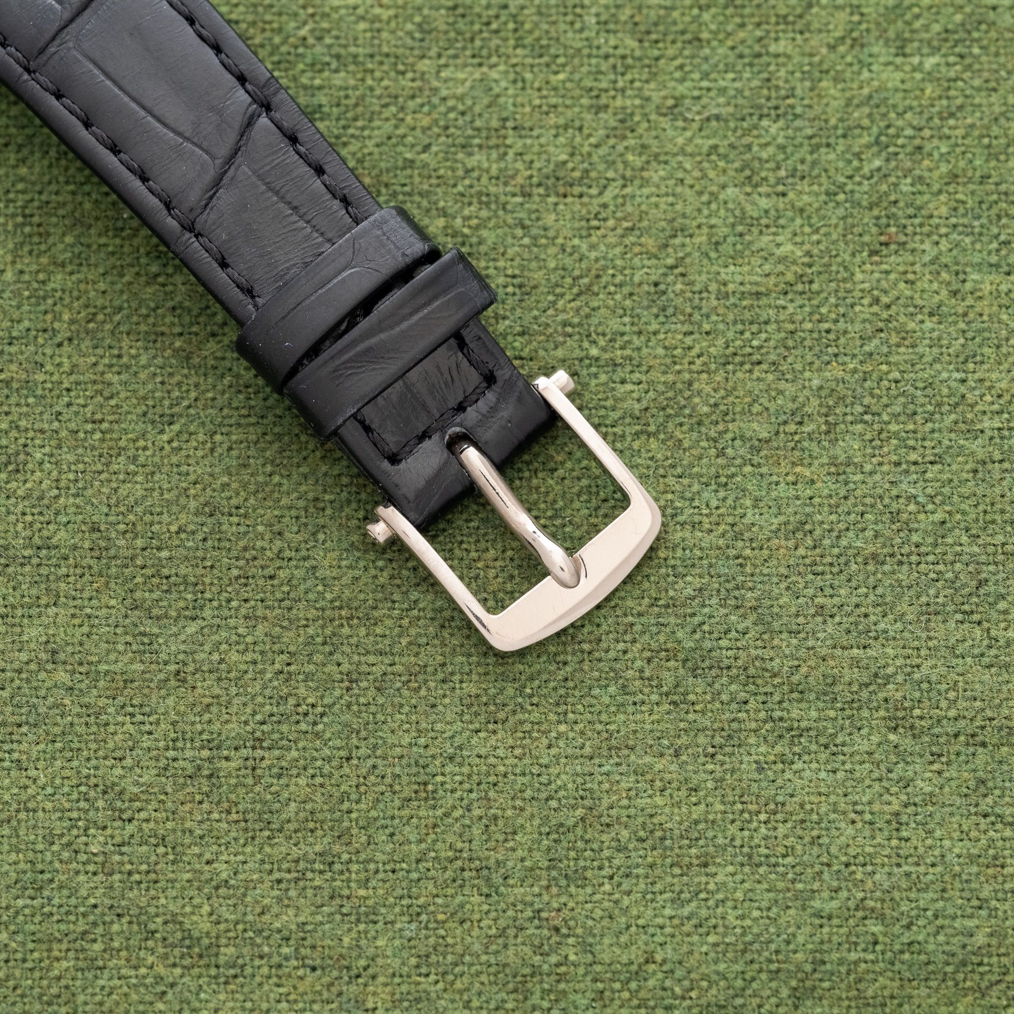 Strap & Buckle: The watch is on a new alligator strap from our handmade collection, and it comes with the original strap and white gold buckle.