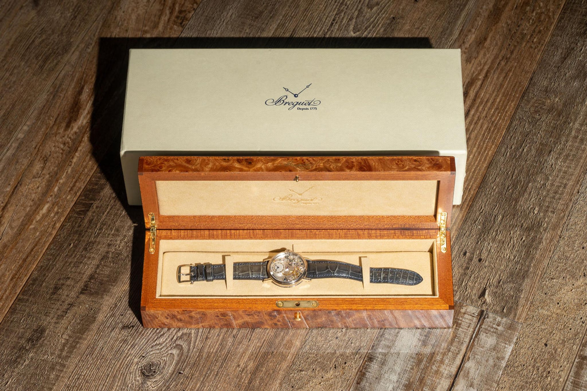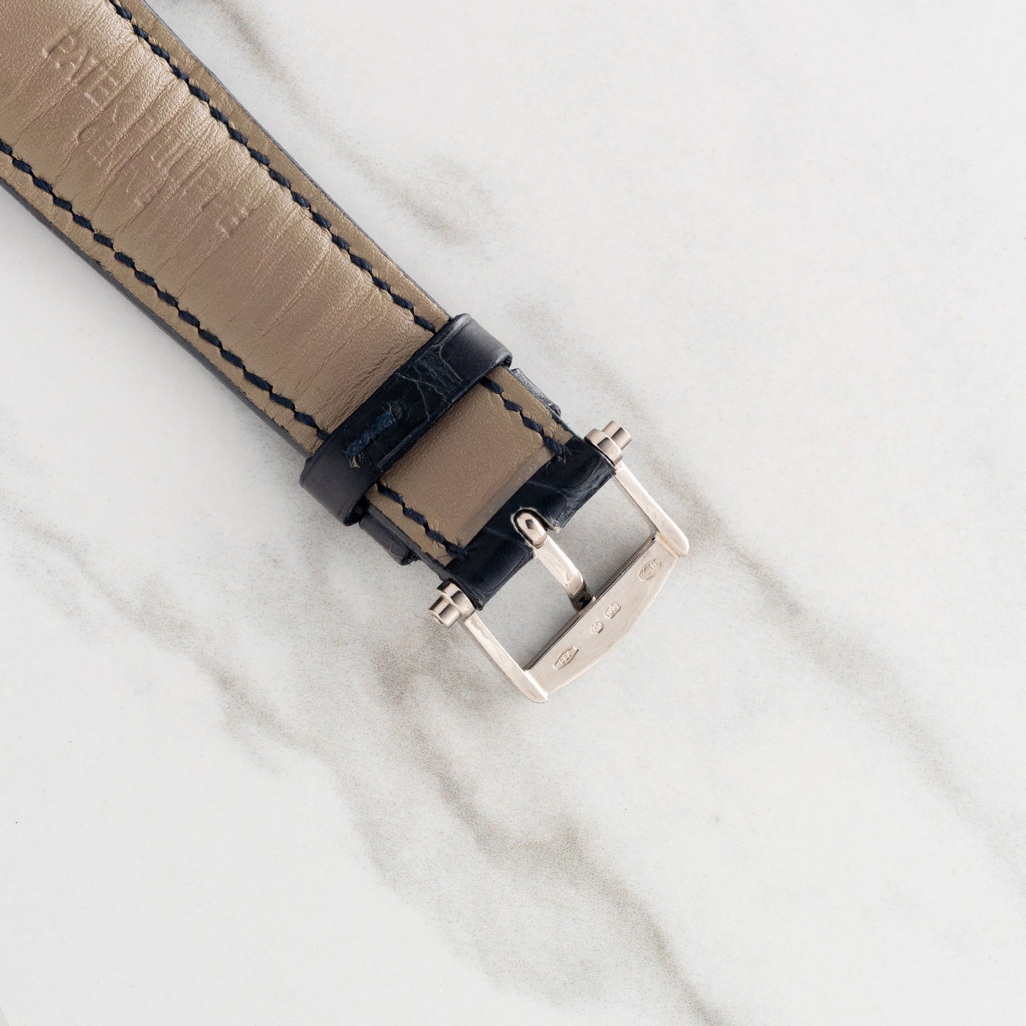 Bracelet: 18k signed Breguet buckle and two piece gator strap from Patek Philippe.