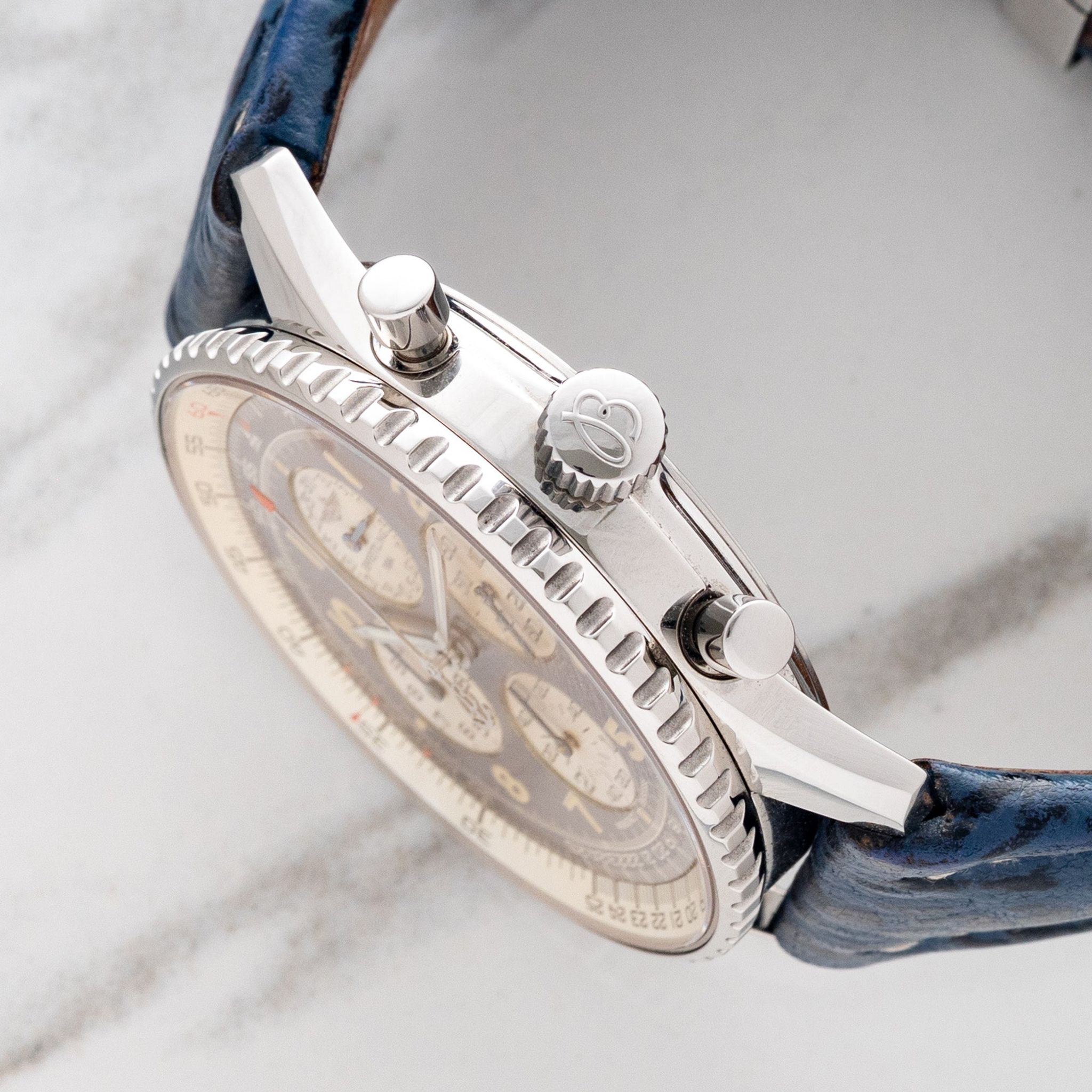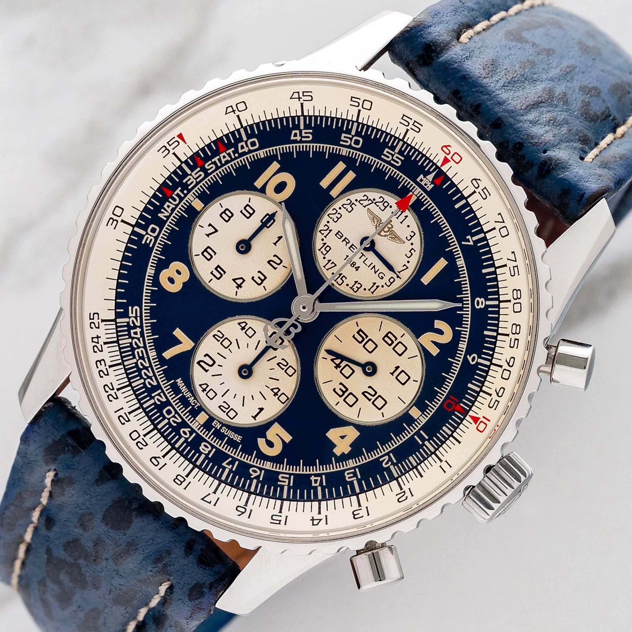The Navitimer was first brought to market in '52 as a pilot's watch and featured a distinctive slide rule bezel to perform critical flight calculations. Fuel consumption, airspeed and distance could all be monitored with this tool watch which remains a flagship model for Breitling today. In modern times, the Navitimer has become synonymous with aviation, adventure and is a favorite among enthusiasts.