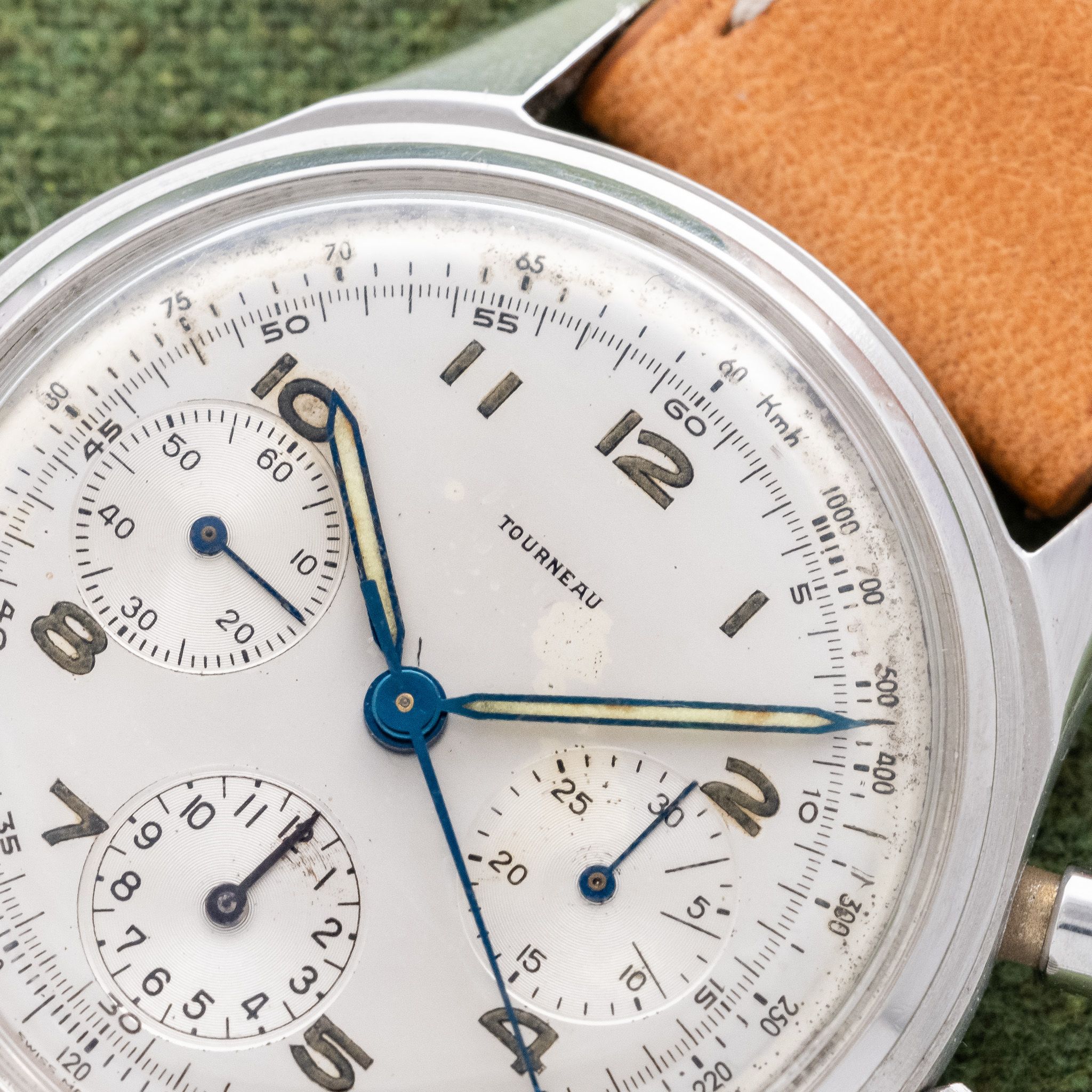 Dial: A warm silver dial with the Tourneau branding. The dial has some signs of wear, but it fits the character of a vintage tool watch. The dial is also paired with beautiful blued hands.