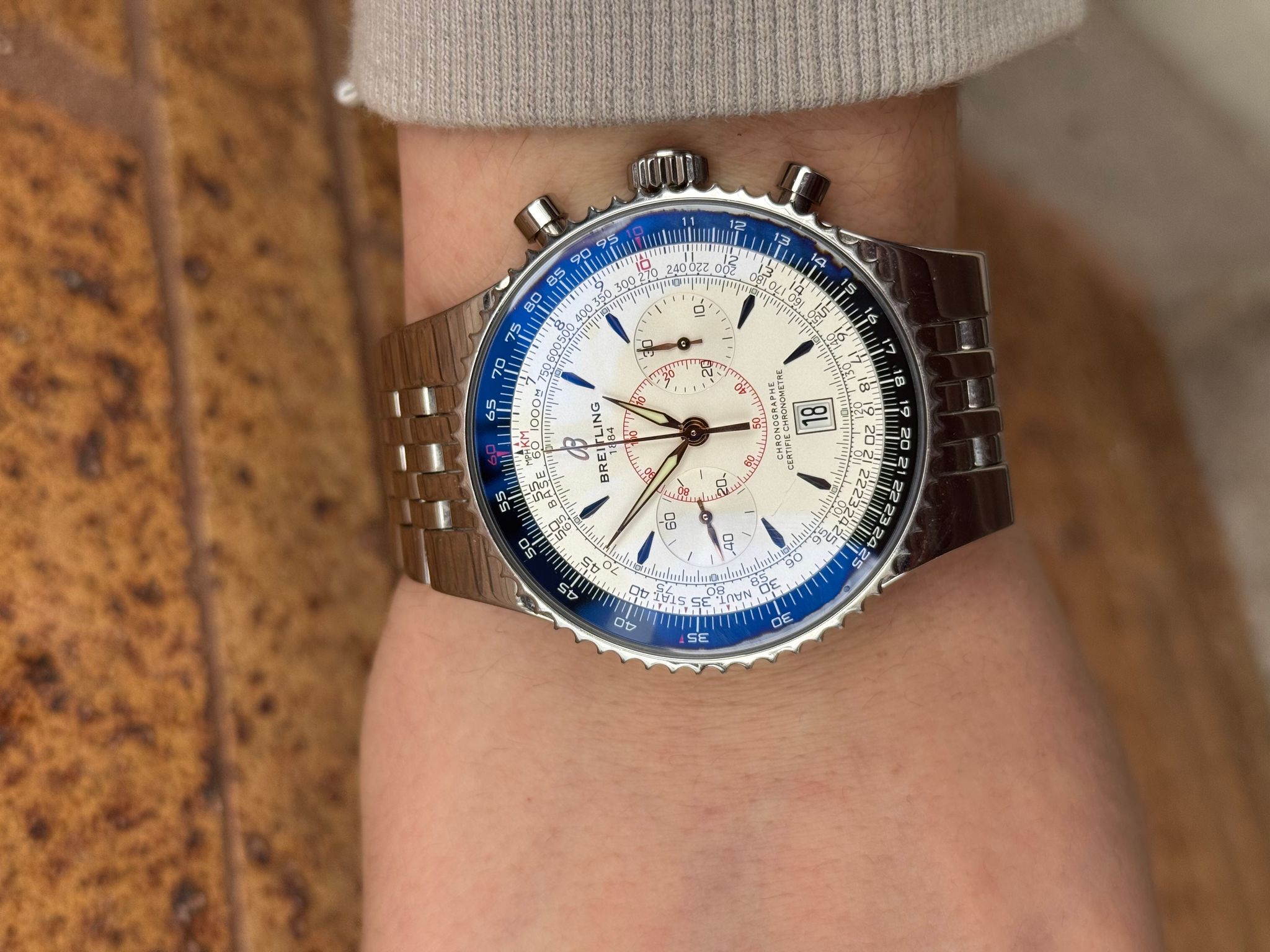 Breitling Montbrilliant Legende Chronograph Stainless Steel Automatic Watch. Watch is in excellent pre owned condition.