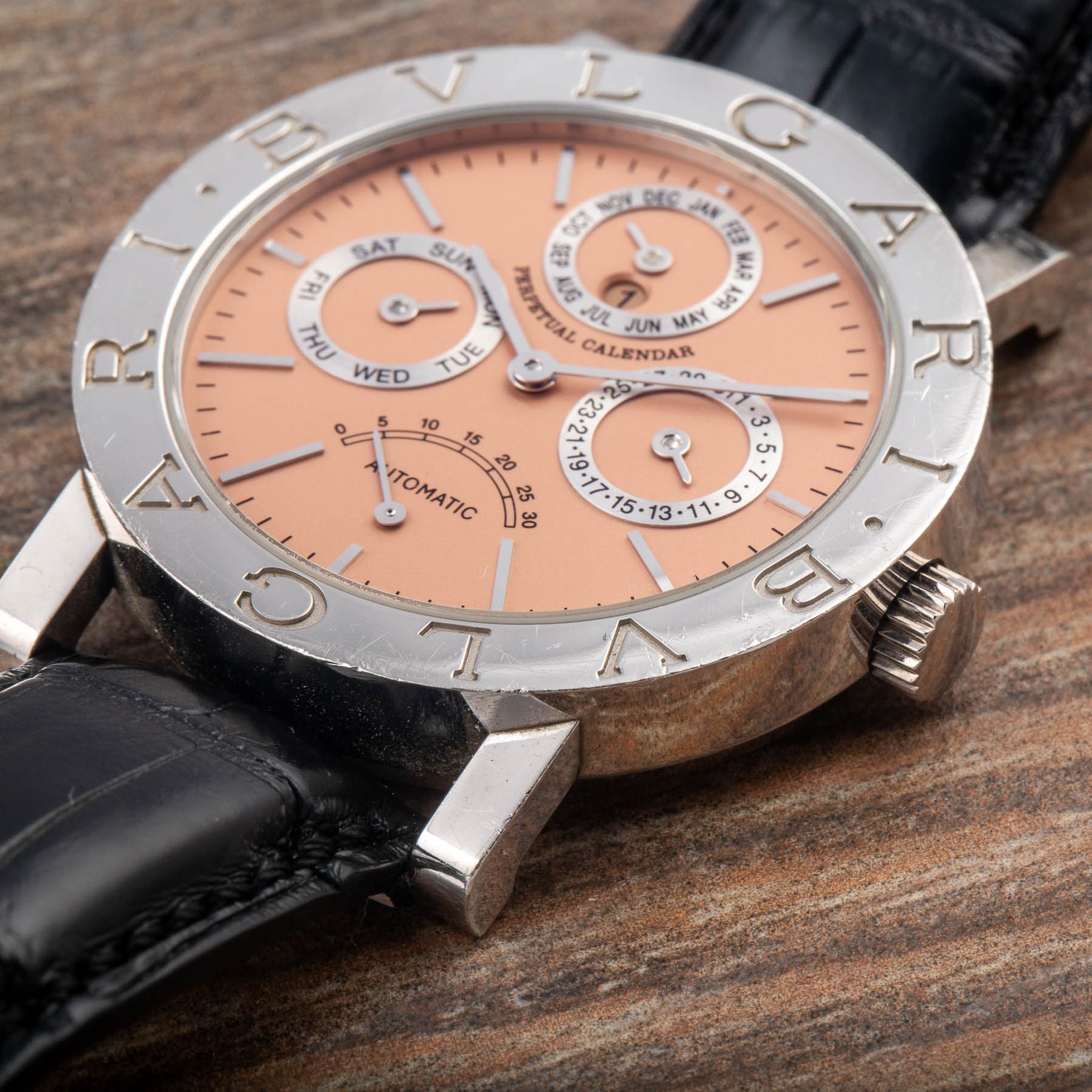 Bvlgari - BULGARI BULGARI PERPETUAL CALENDAR RETROGRADE SECONDS PLATINUM SALMON