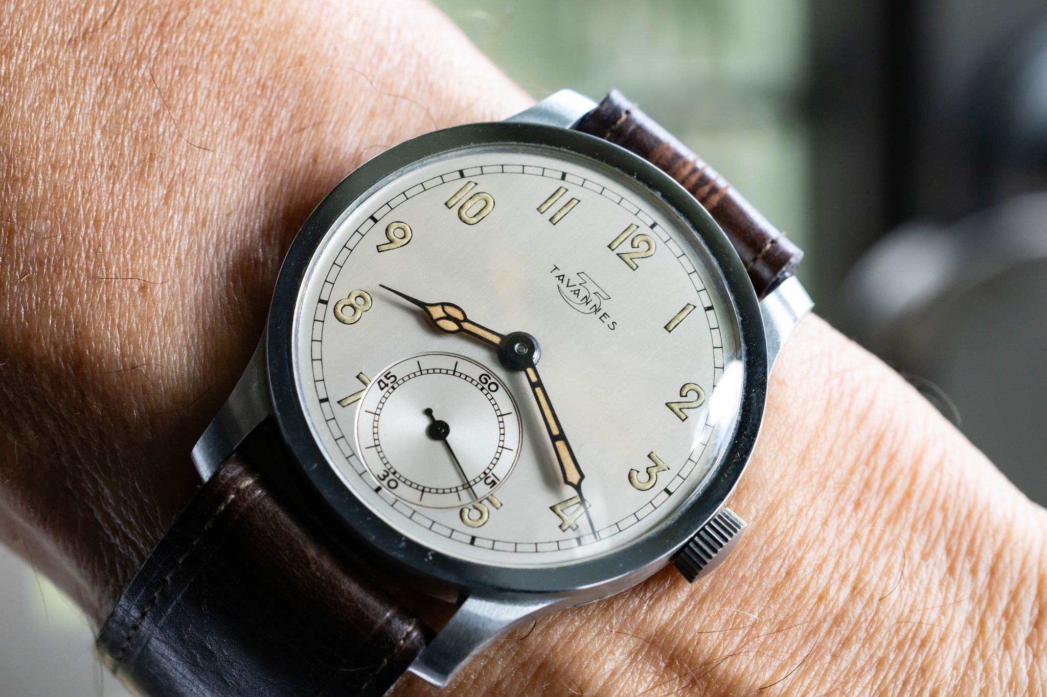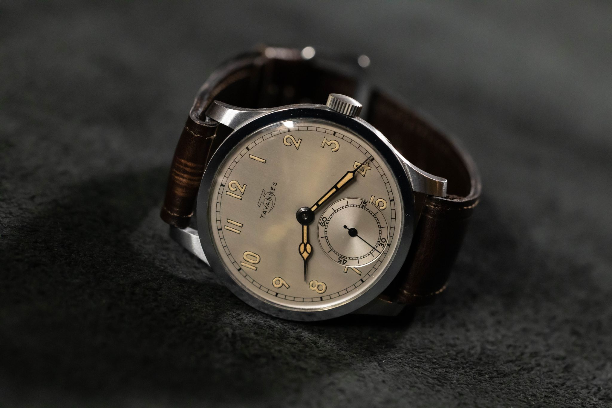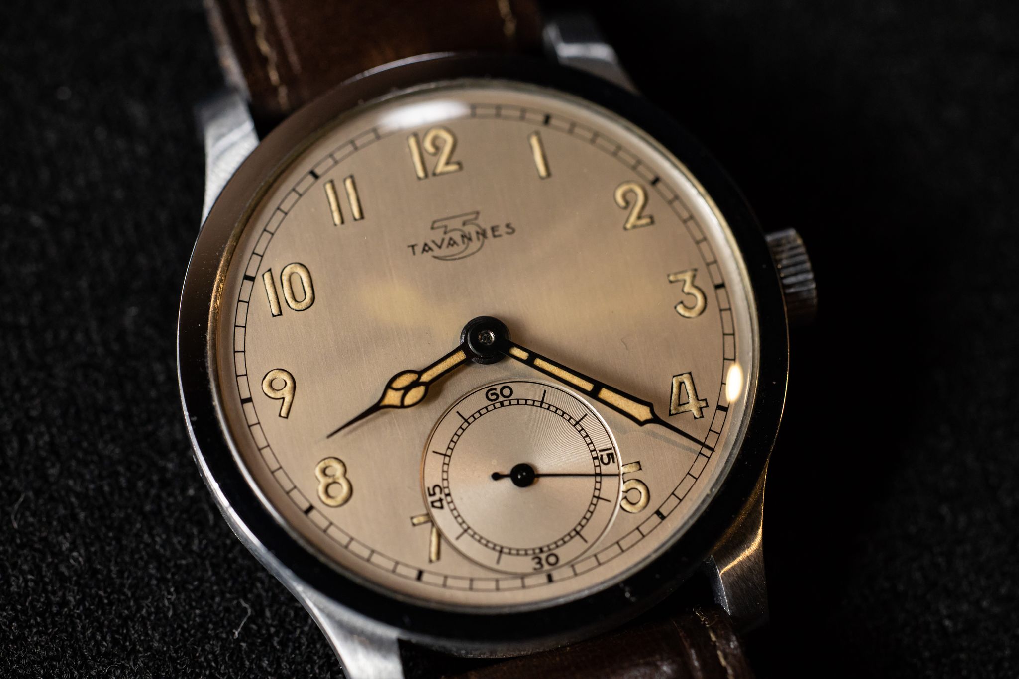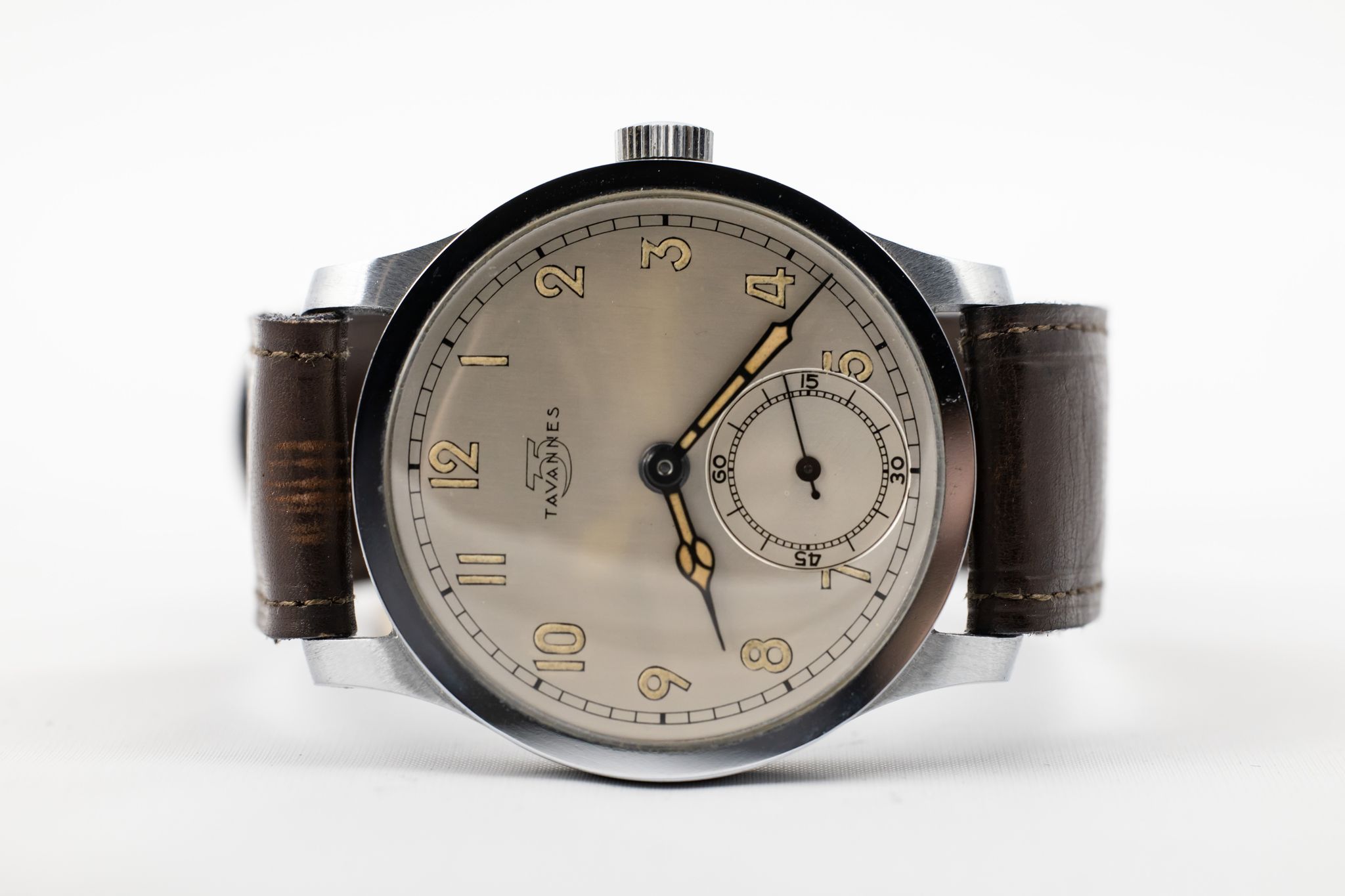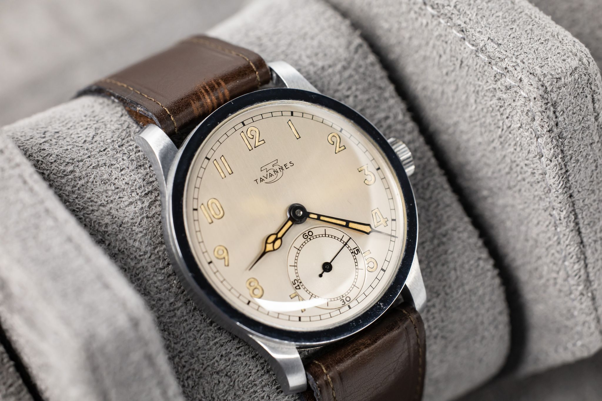 Available is a pristine, New Old Stock Tavannes Calatrava from the 1930-40s and featuring a distinctive second sub-dial at 6 o'clock.