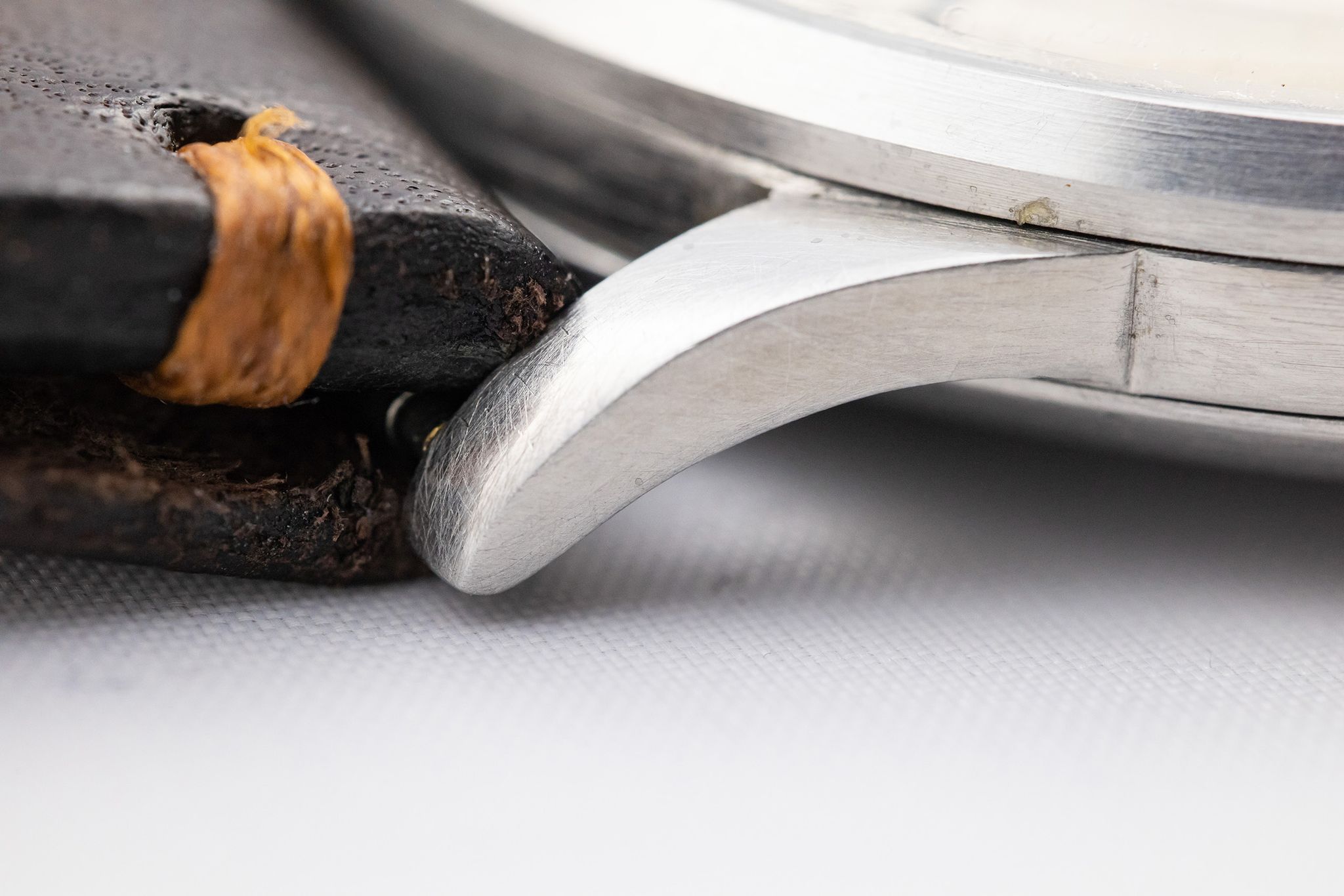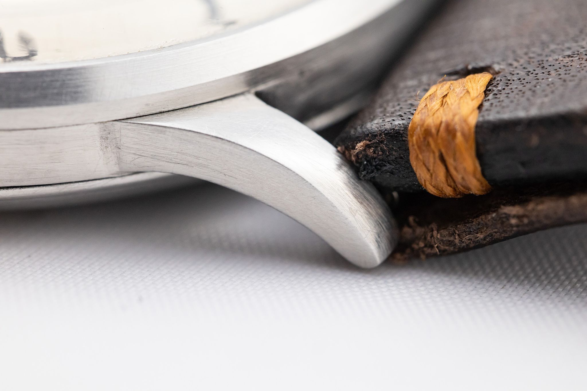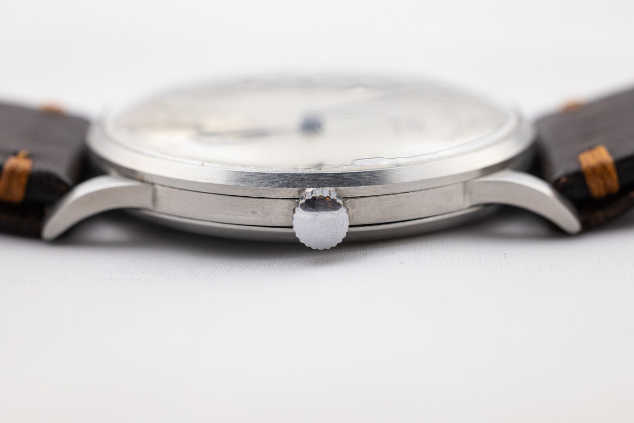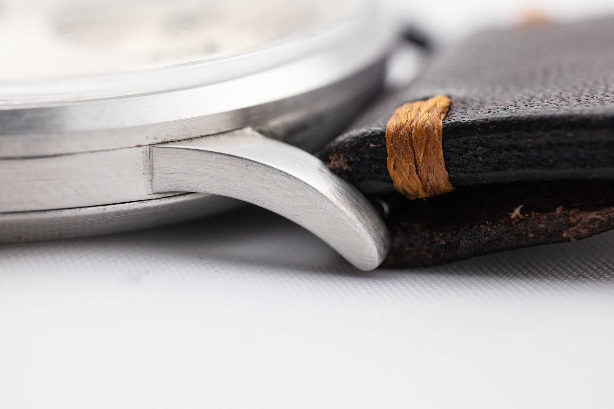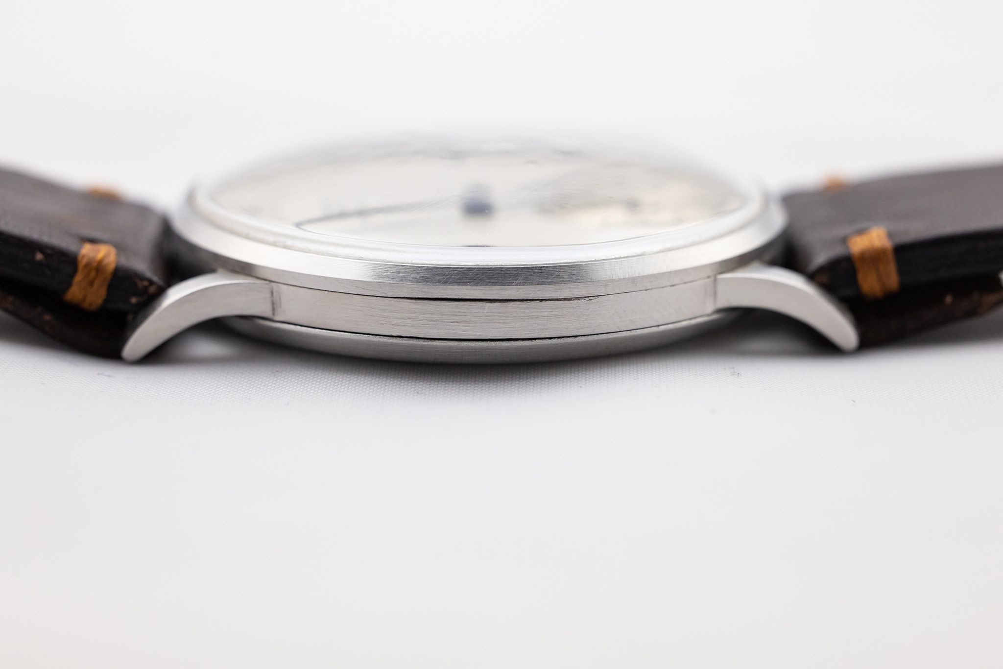 Unpolished and unrestored and extremely well preserved, still looking looking as new. Bi-tone sector dial is in amazing shape with very little degradation. Note, most of these watches were produced with chrome case, this is an extremely rare stainless steel case.