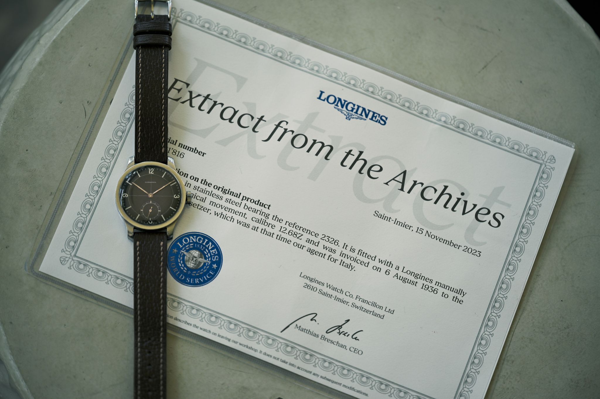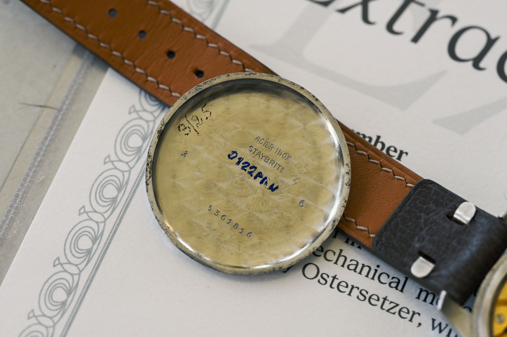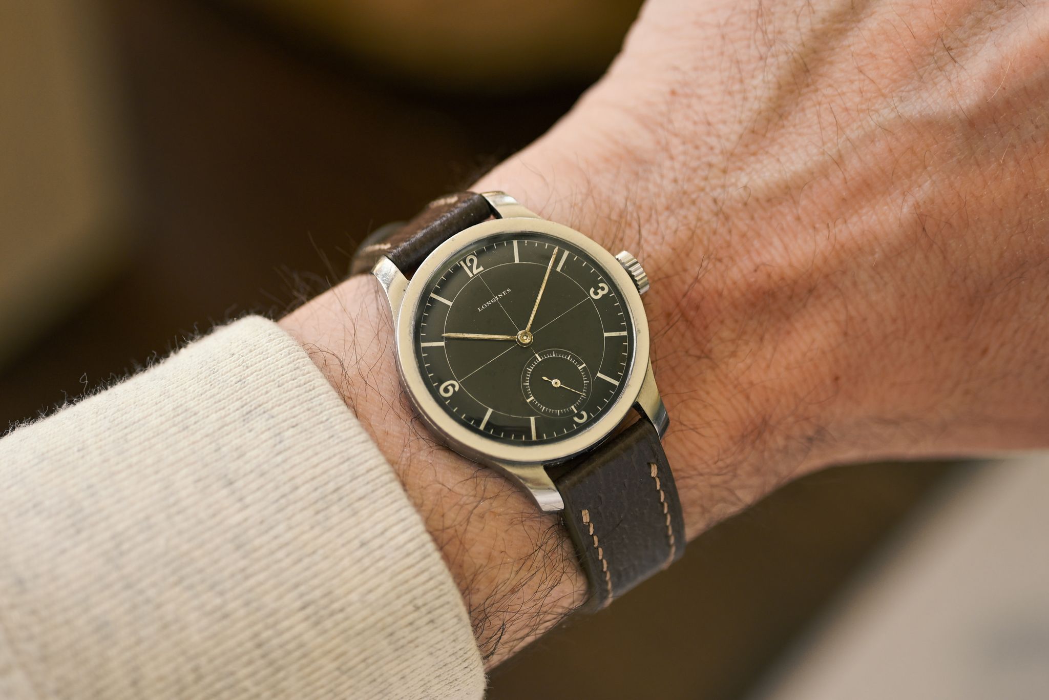 An early Longines ‘Calatrava’ ref. 2326 with rare black sector dial dating to 1936. This watch is all original and features a 33mm stainless steel case and manually wound Longines caliber 12.68z. This watch has just undergone a full service by my master watchmaker and is accompanied by its Extract from Archives.