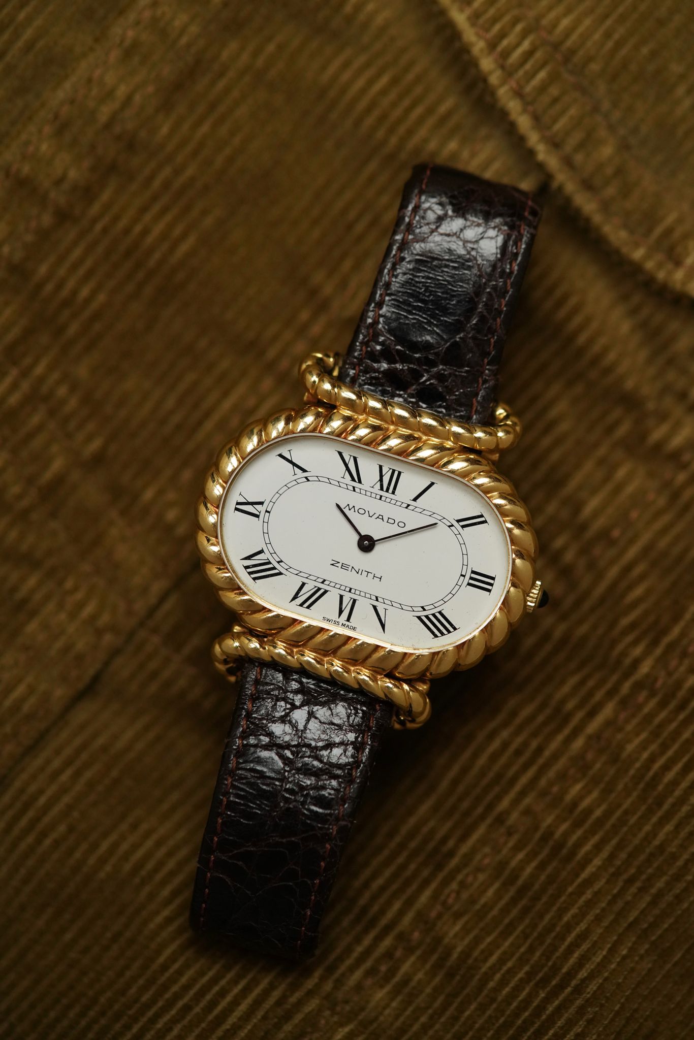 An absolute behemoth of a watch: a huge (40 by 33mm) candy themed case watch from the 1970’s to mark the merger between Zenith and Movado - two very different brands that united forces during the quartz crisis.