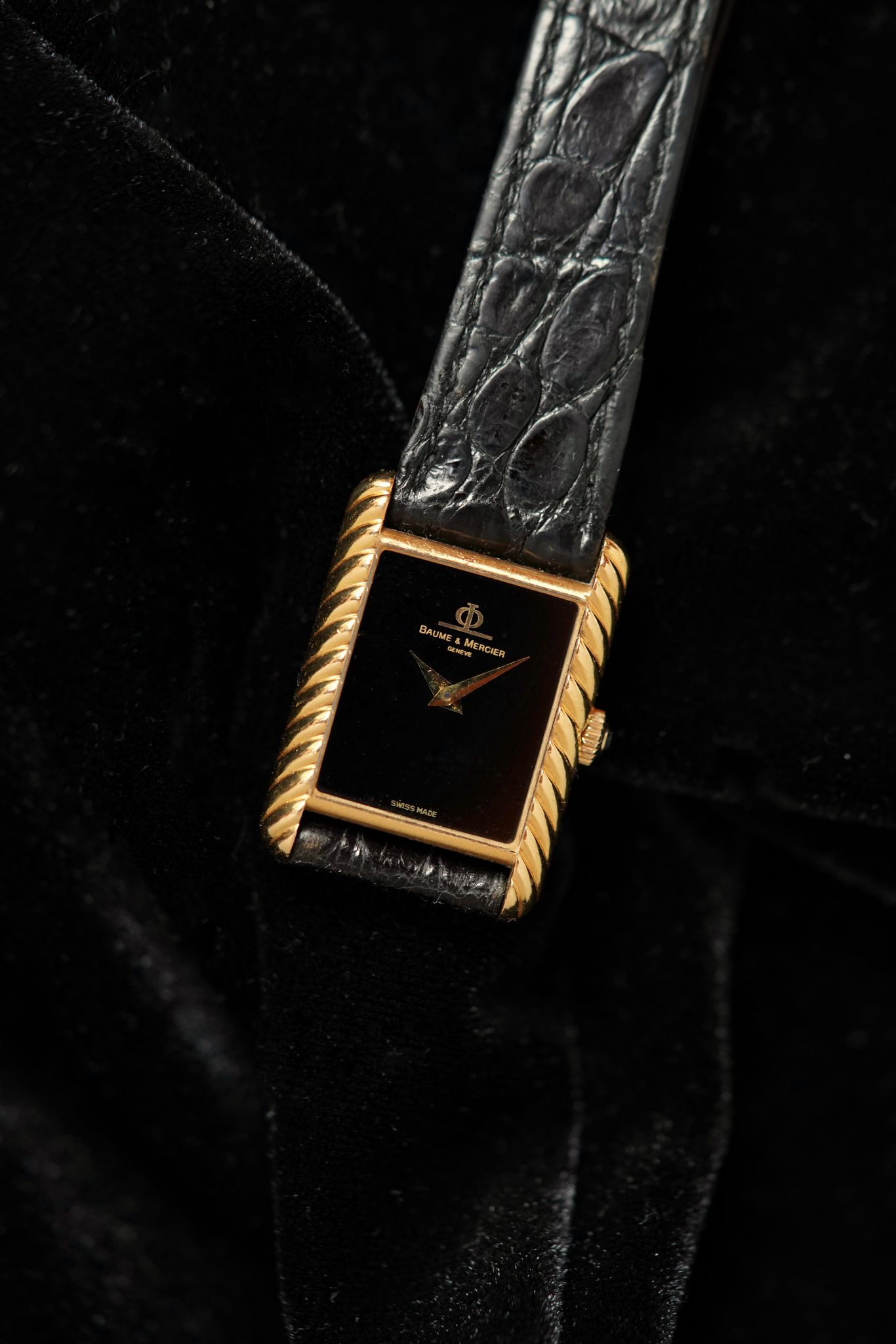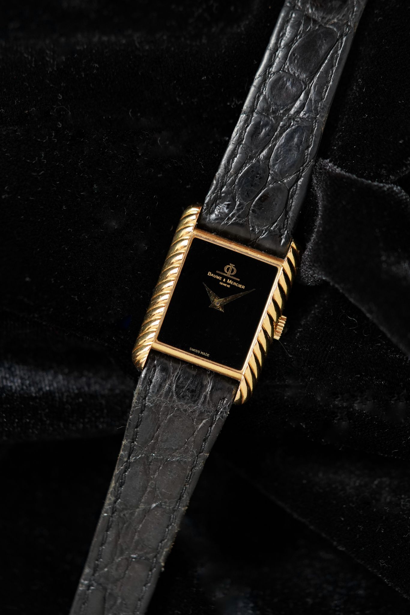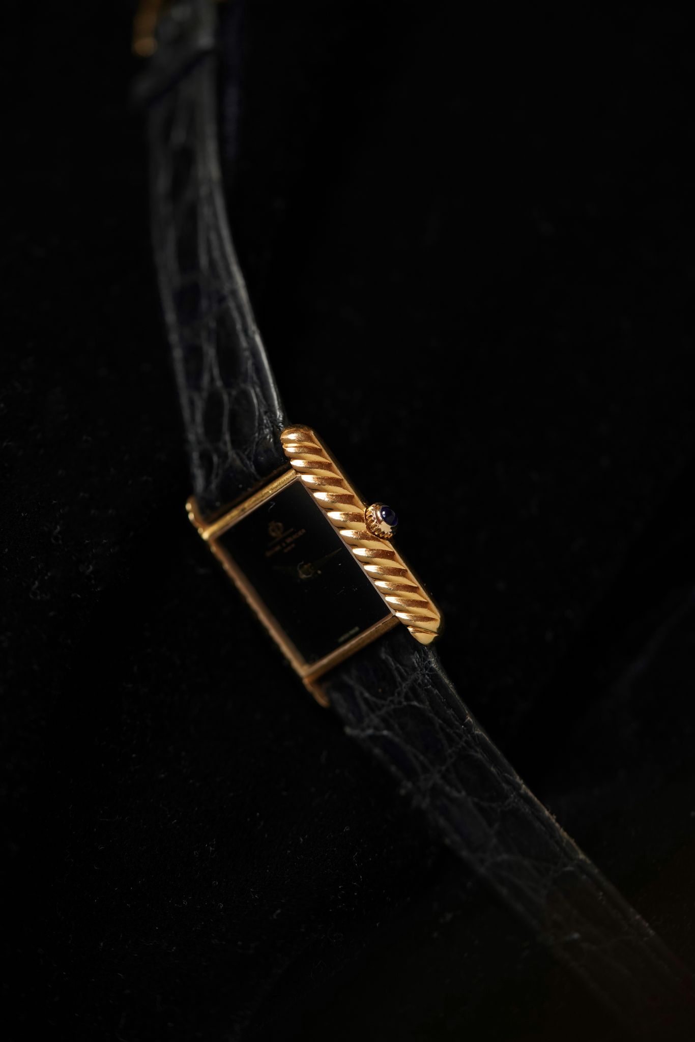 A special Baume et Mercier from the 1970s in an 18k candy-style yellow gold mid-size case (21x28mm) with the most perfect onyx stone dial.