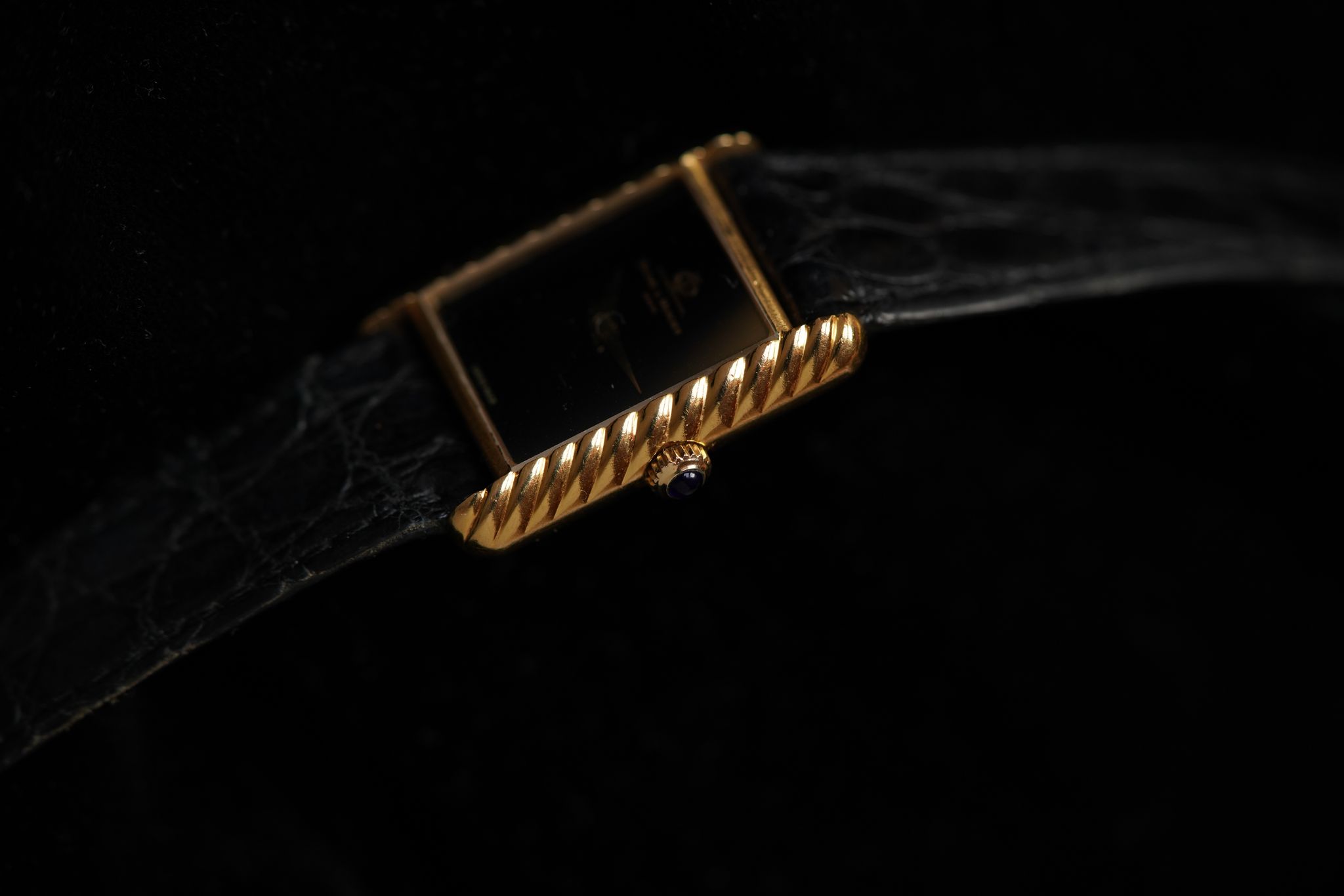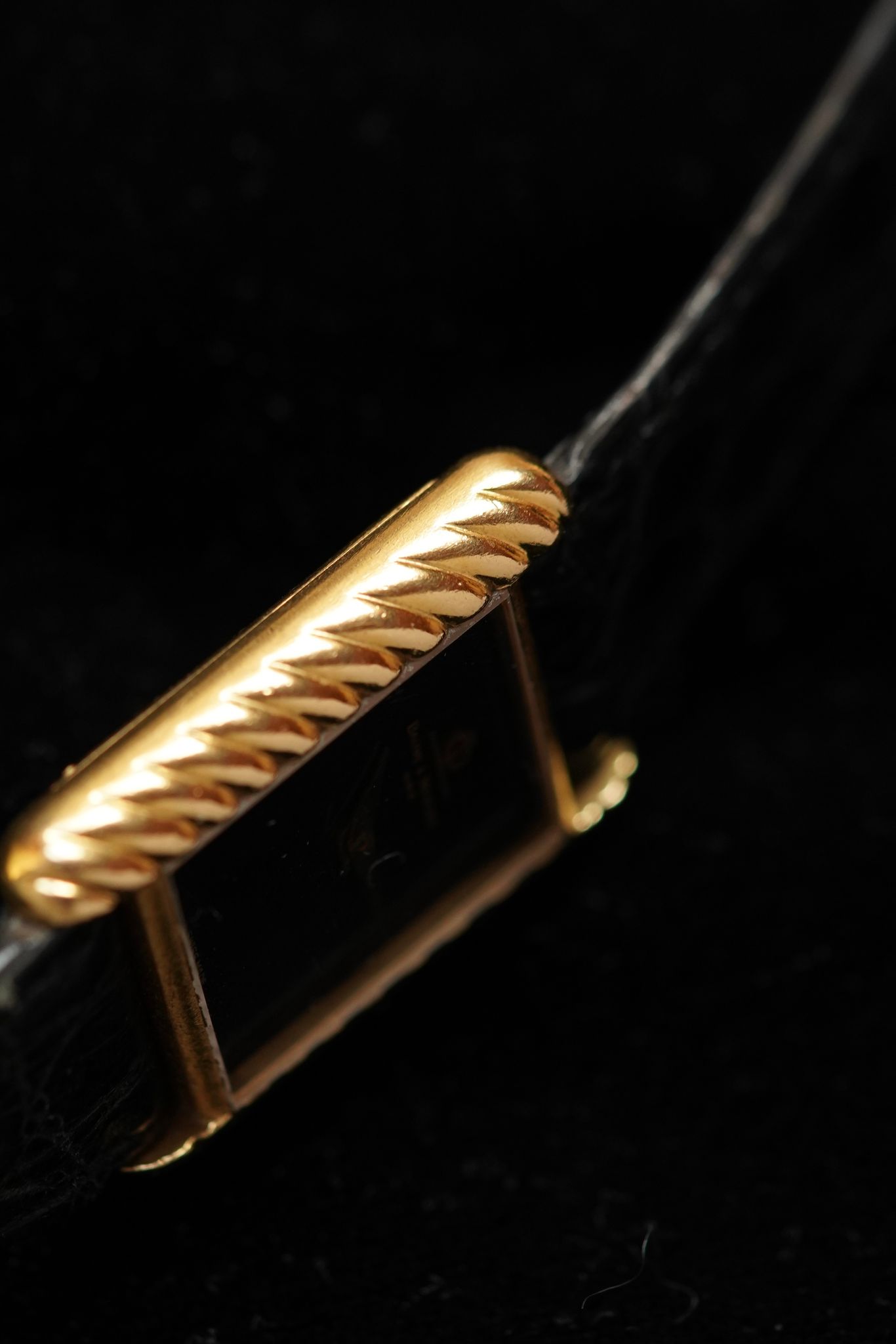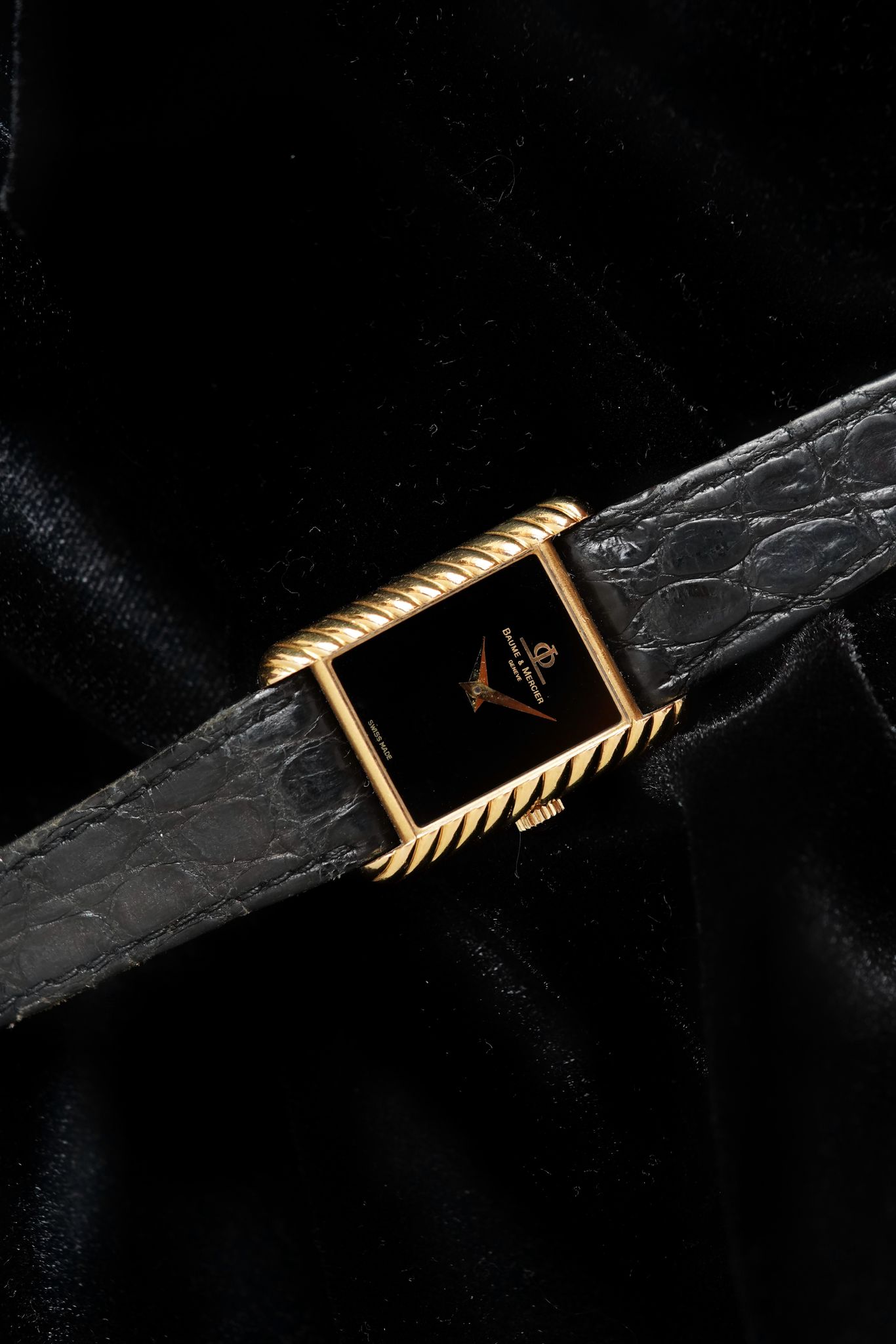 A special Baume et Mercier from the 1970s in an 18k candy-style yellow gold mid-size case (21x28mm) with the most perfect onyx stone dial.