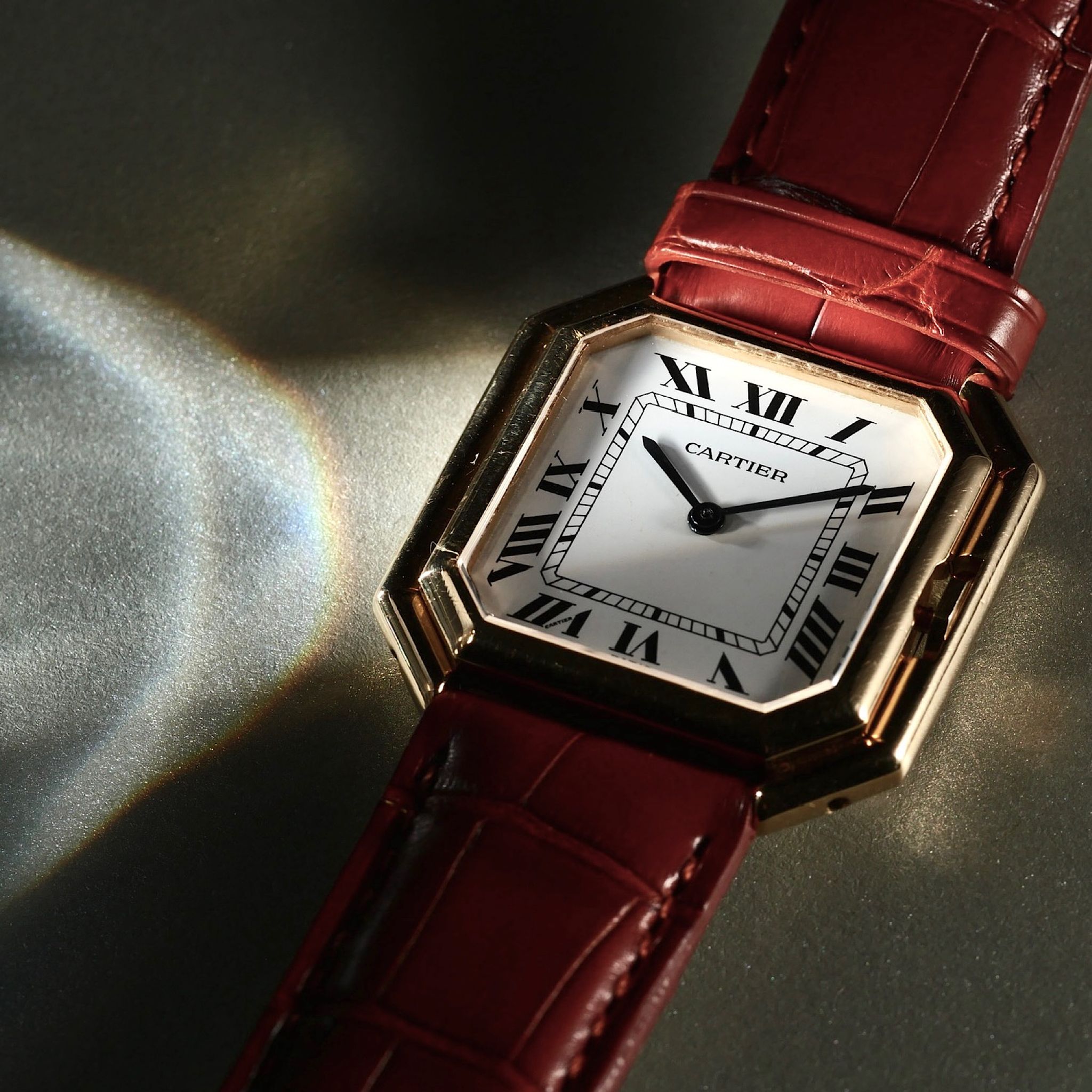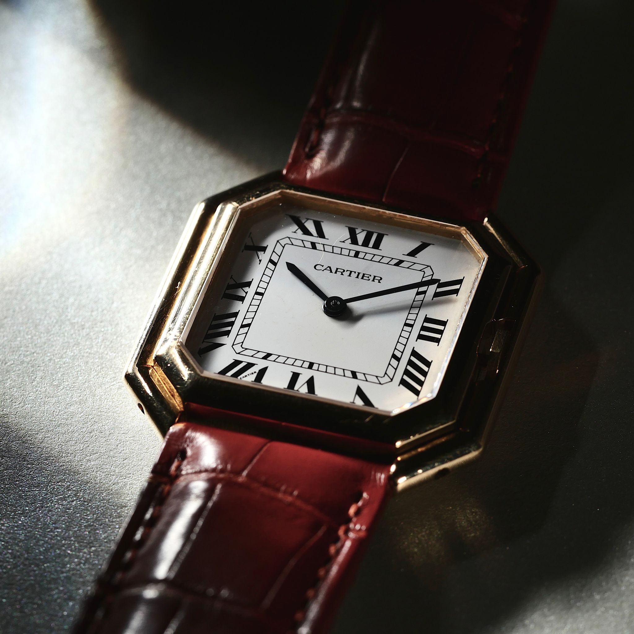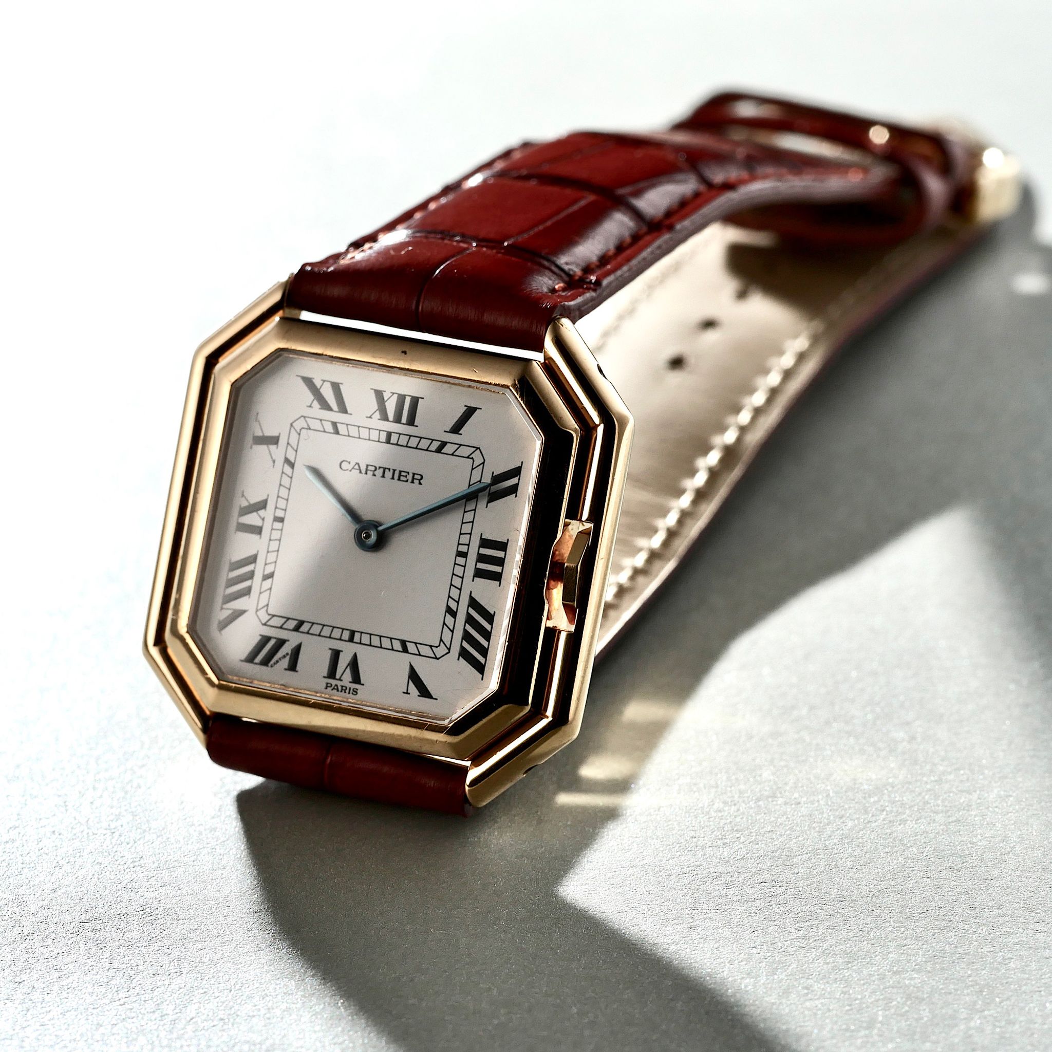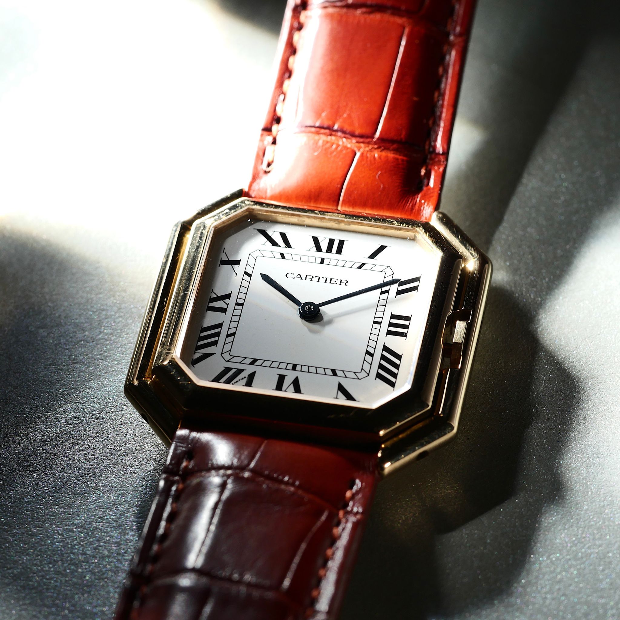 Launched in 1927 and re-released in 1970, this is the rarest iteration, the ever-elusive and difficult to find 31mm Cartier Ceinture XL Jumbo powered by an automatic movement nestled within its bubble back case and with a perfect Paris dial.